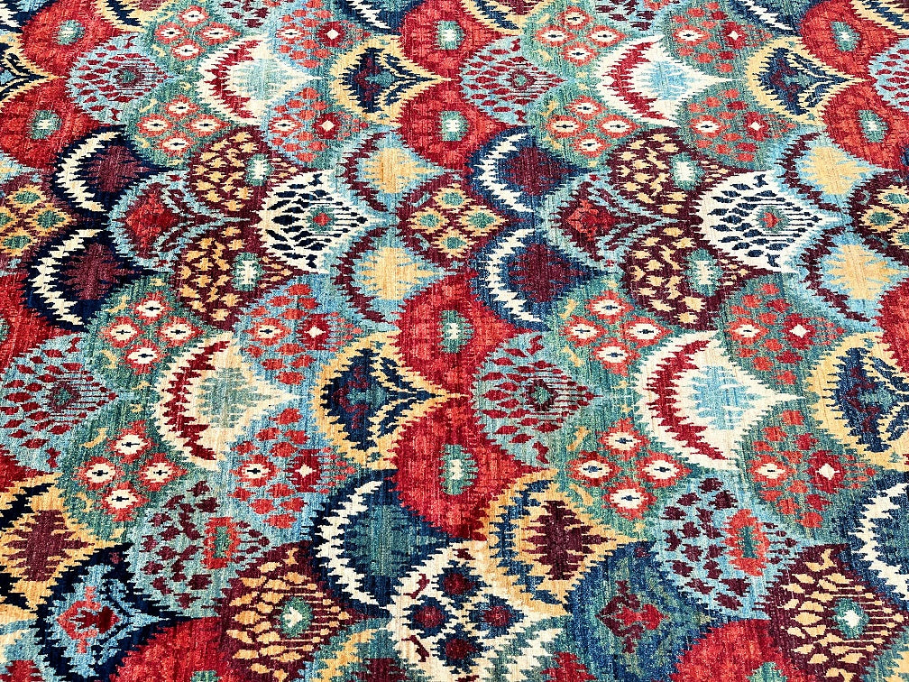 Superb Full Room Size Hand Crafted Afghan Royal Kazak Rug. Above All It Is Pure Hand Spun Ghazni Wool Pile On Cotton Base. Multi-Color Tones Dyed Using Traditional Methods (Vegetable Dyes). Last of True Woven Nomadic Art.