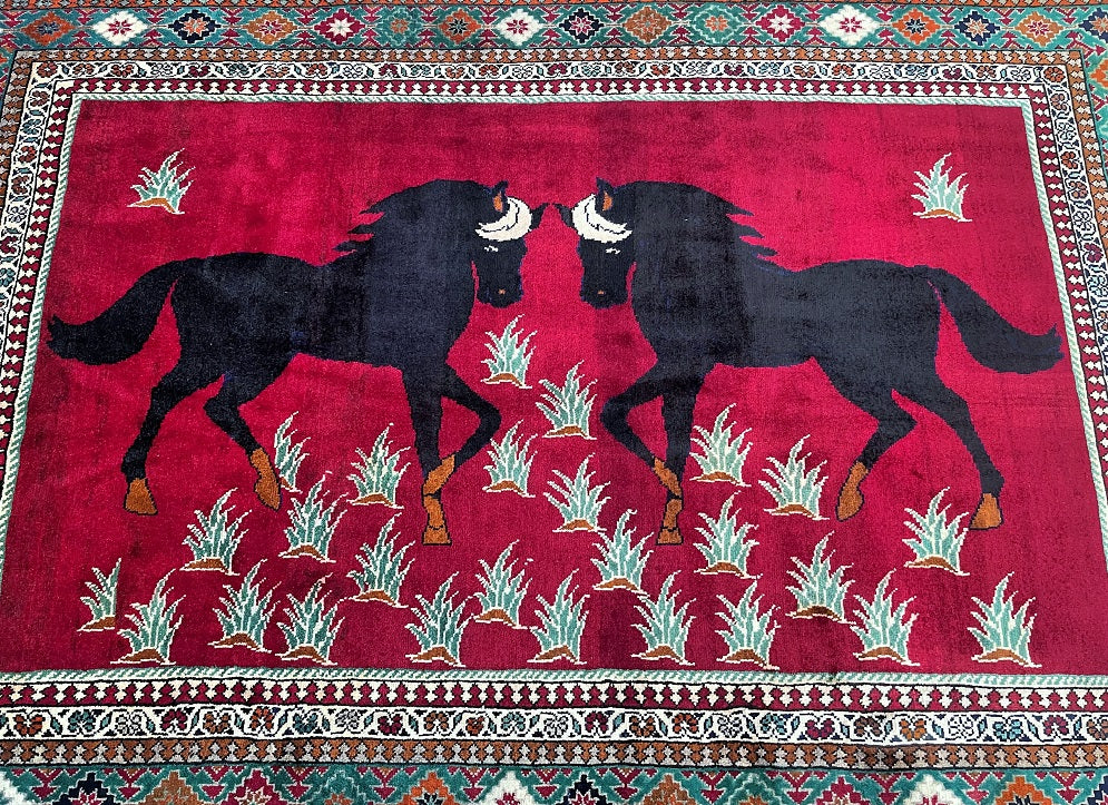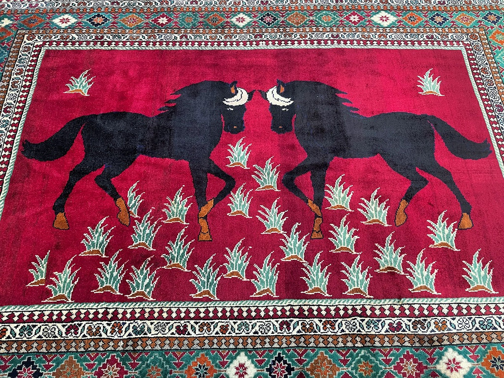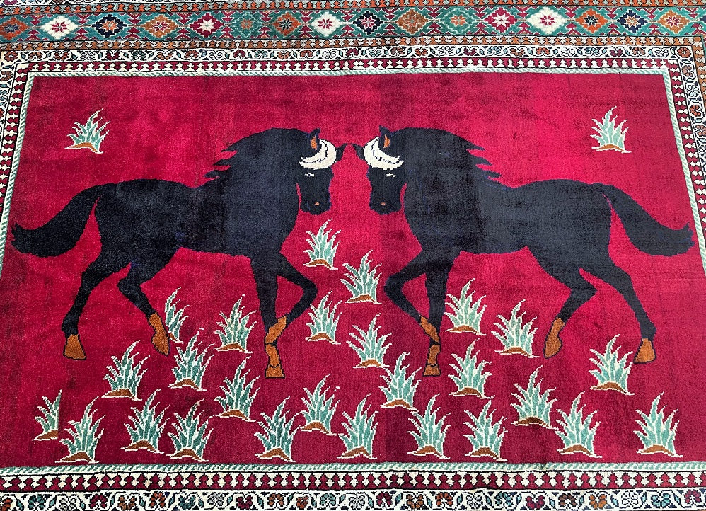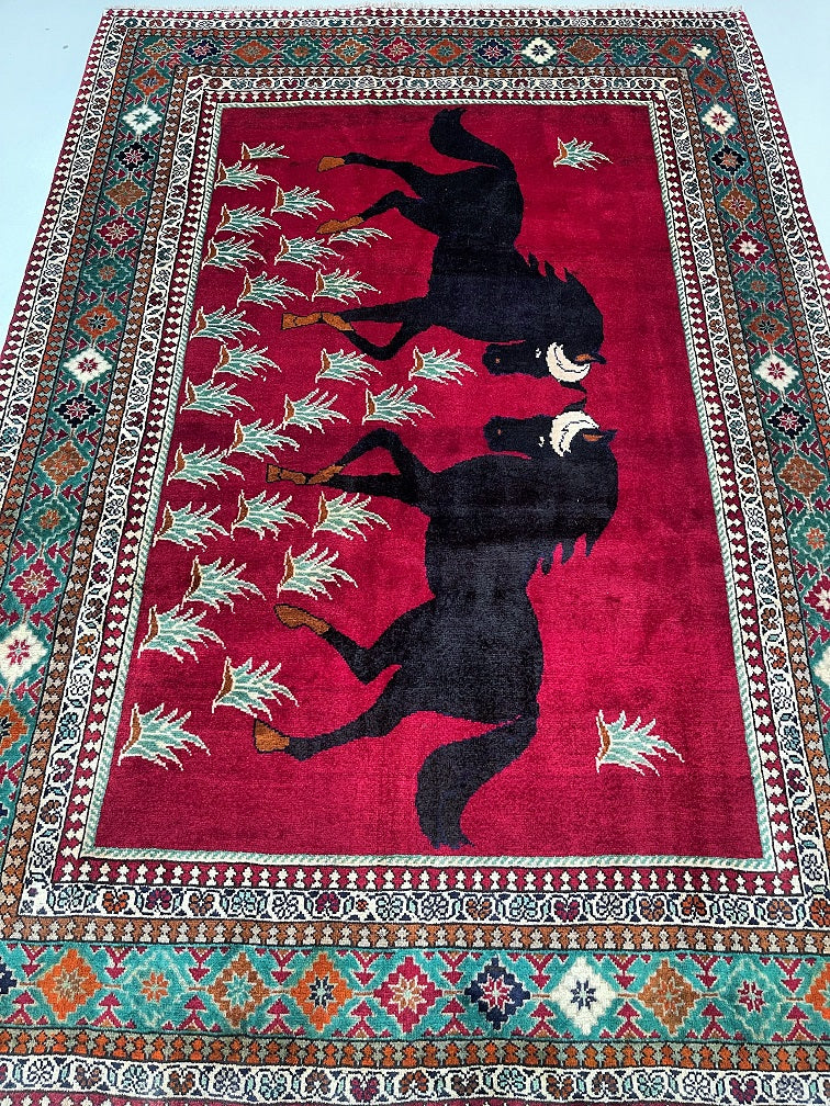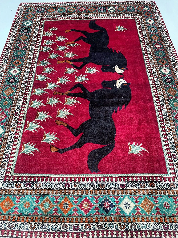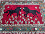 Collectible Full Room Size Handmade Pictorial Design Persian Qashghai Shiraz Rug. Above All It Is Hard To Find This Quality Original Handmade In Larger Sizes. Dense Wool Pile On Wool Base. It Also Has a Deep Red Tone Dyed Using Traditional Methods.