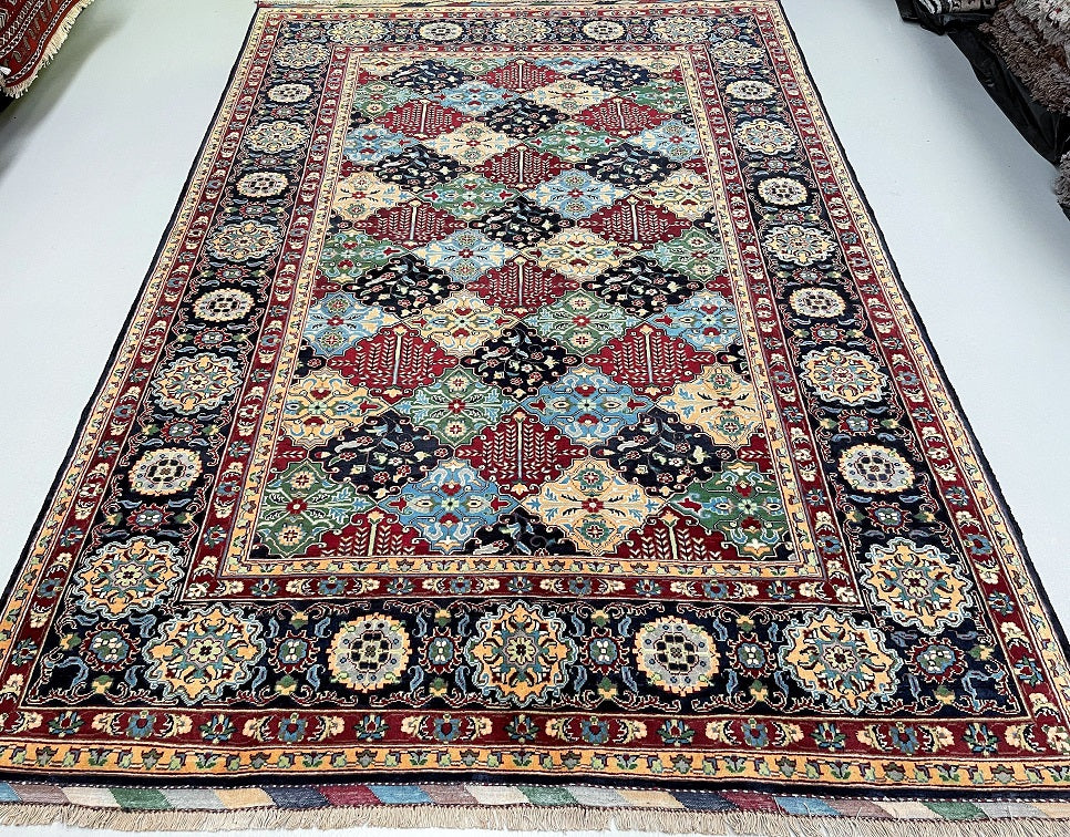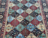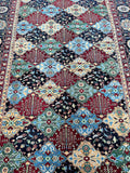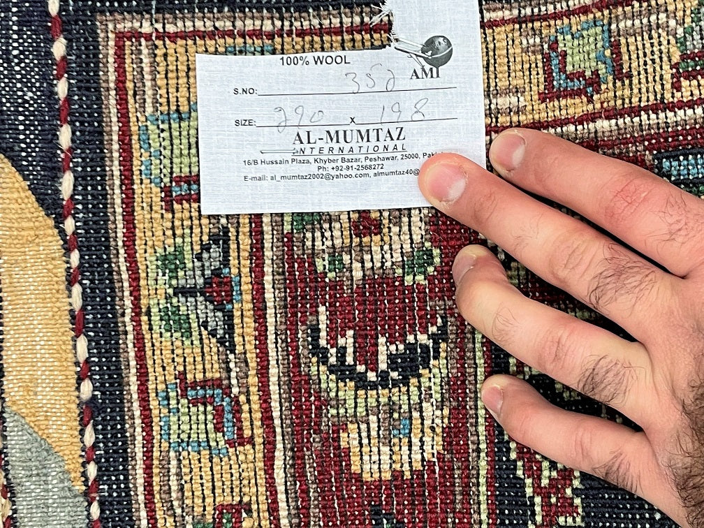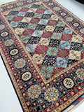 Full Room Size Authentic Handmade Afghan Roshnai Rug. Above All It Is Pure Hand Spun Wool Pile On Cotton Base. Indigo Blue, Beige, Yellow, Maroon And Green Tone Dyed Using Traditional Methods.