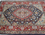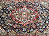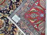 Full Room Size Authentic Hand Knotted Vintage Persian Kashmar Carpet. Above All It Is Hard To Get This Quality Handmade Rug In Such Unique Pattern. Pure Lamb’s Wool Pile On Cotton Base. It Also Has An Indigo Blue Background Dyed Using Traditional Methods.