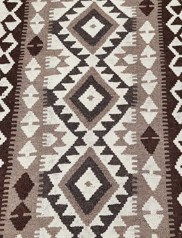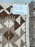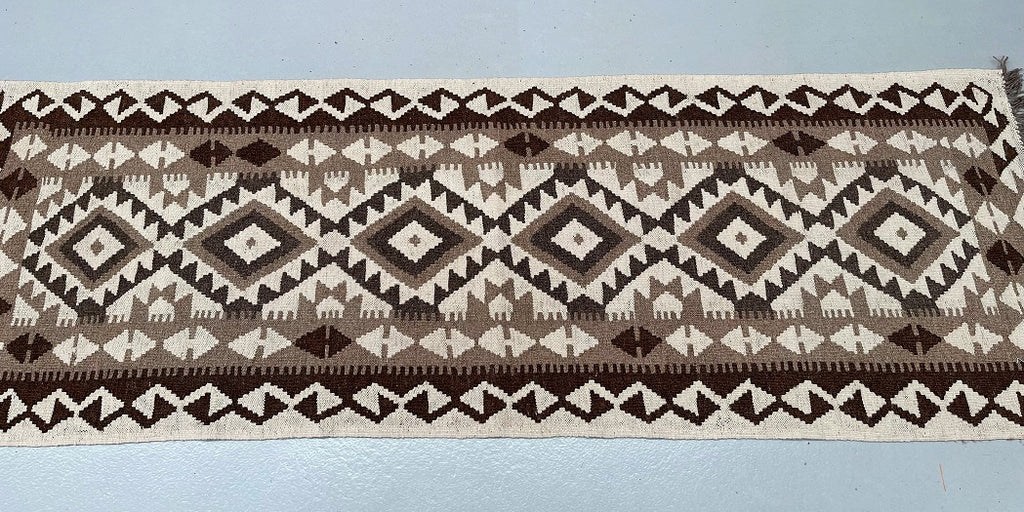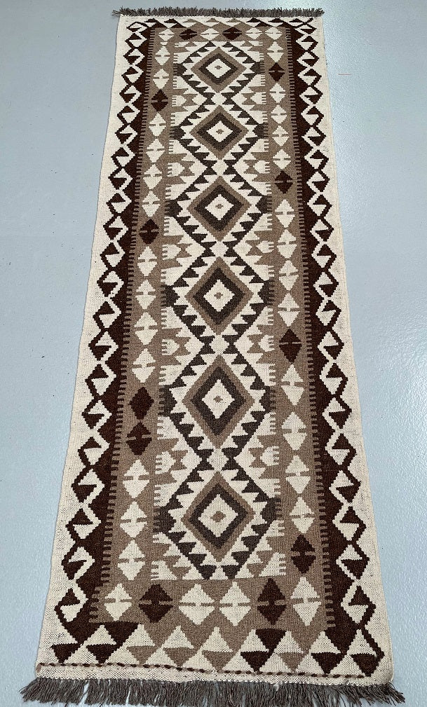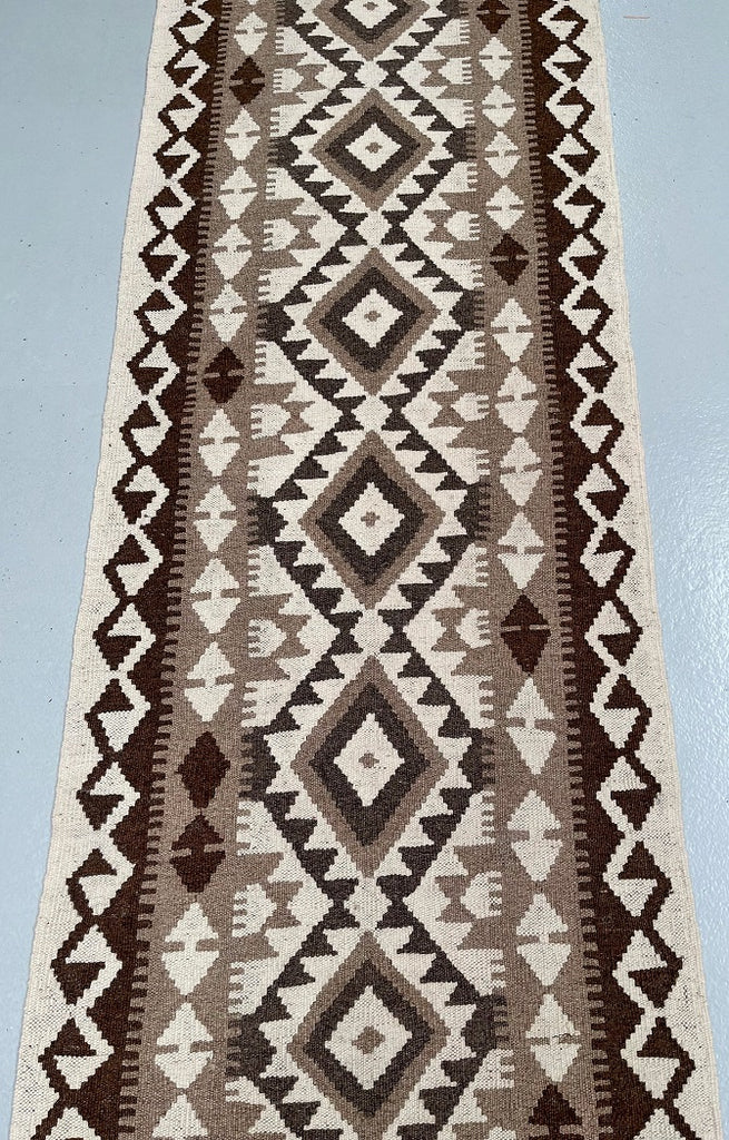 Gorgeous Boho Design Hand Woven Afghan Waziri Kilim Hall Runner. Above All It Is Reversible. It Also Has A Pure Hand Spun Wool Pile On Wool Base. Neutral Beige And Brown Tone Dyed Using Vegetable Roots.