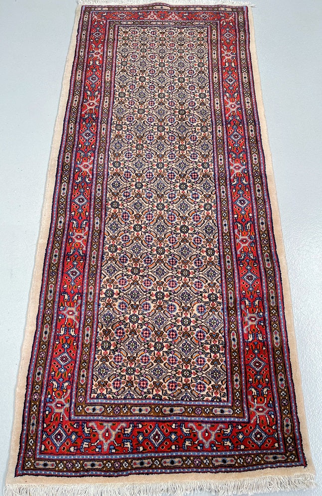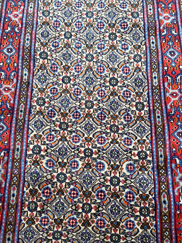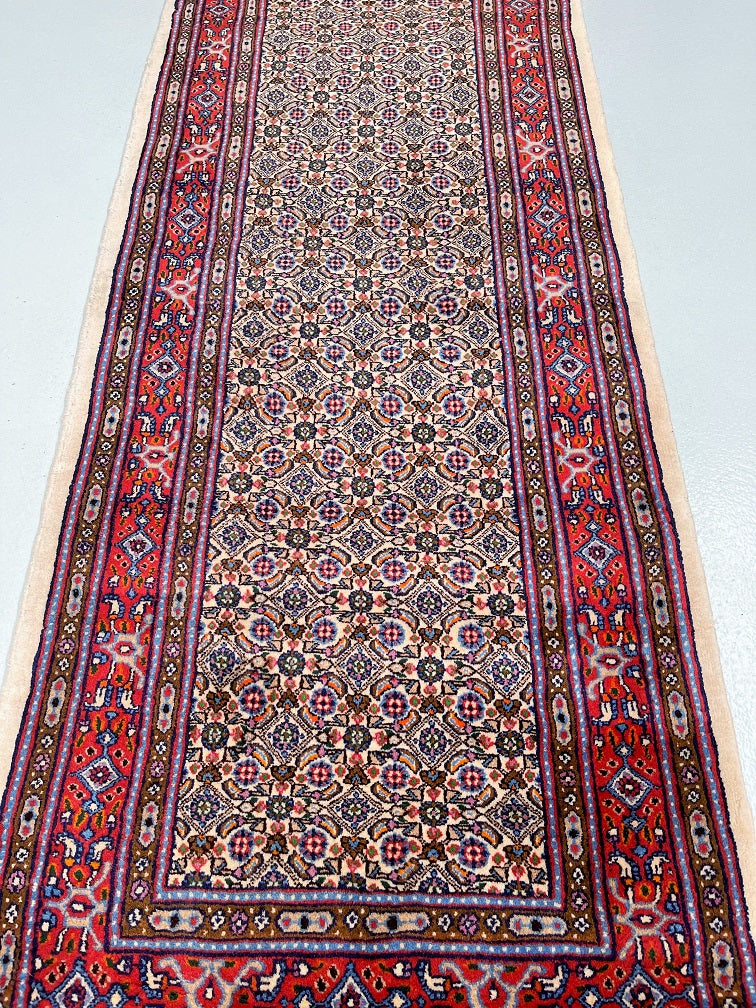 Fine Authentic Handmade Persian Birjand Runner. Above All It Has A Wool Pile on Fine Cotton. It Also Has A Beige Background Dyed Using Traditional Methods. Gorgeous