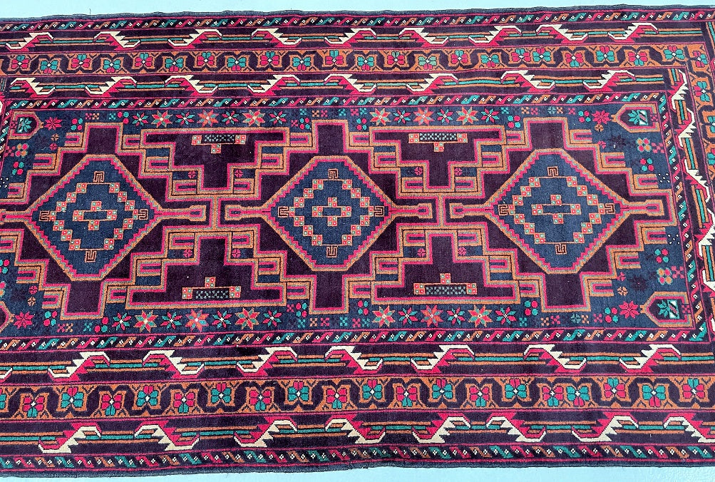 Vintage Afghan Balouchi Carpet Which Can Also Be Used As A Short Runner.