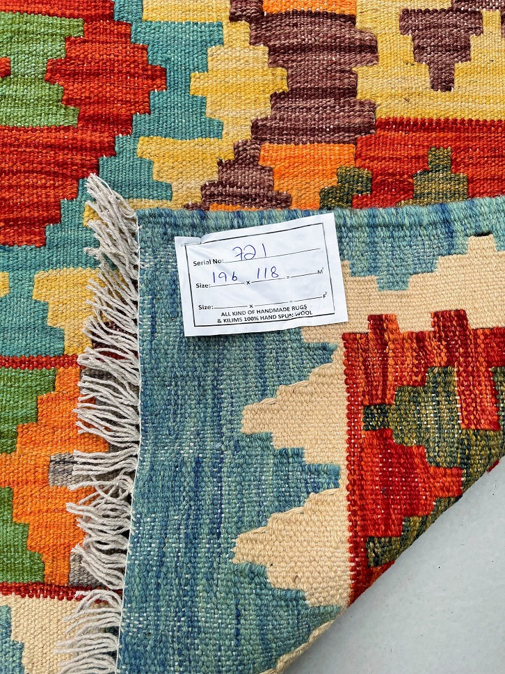 Handmade Tribal Afghan Kilim Rug 196x118cm