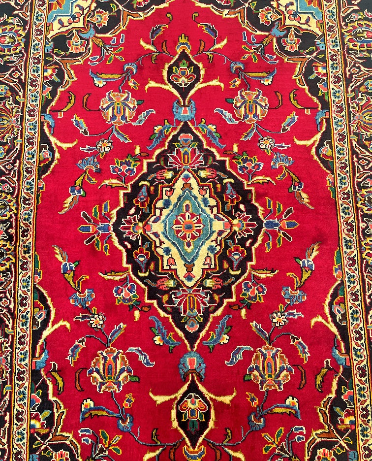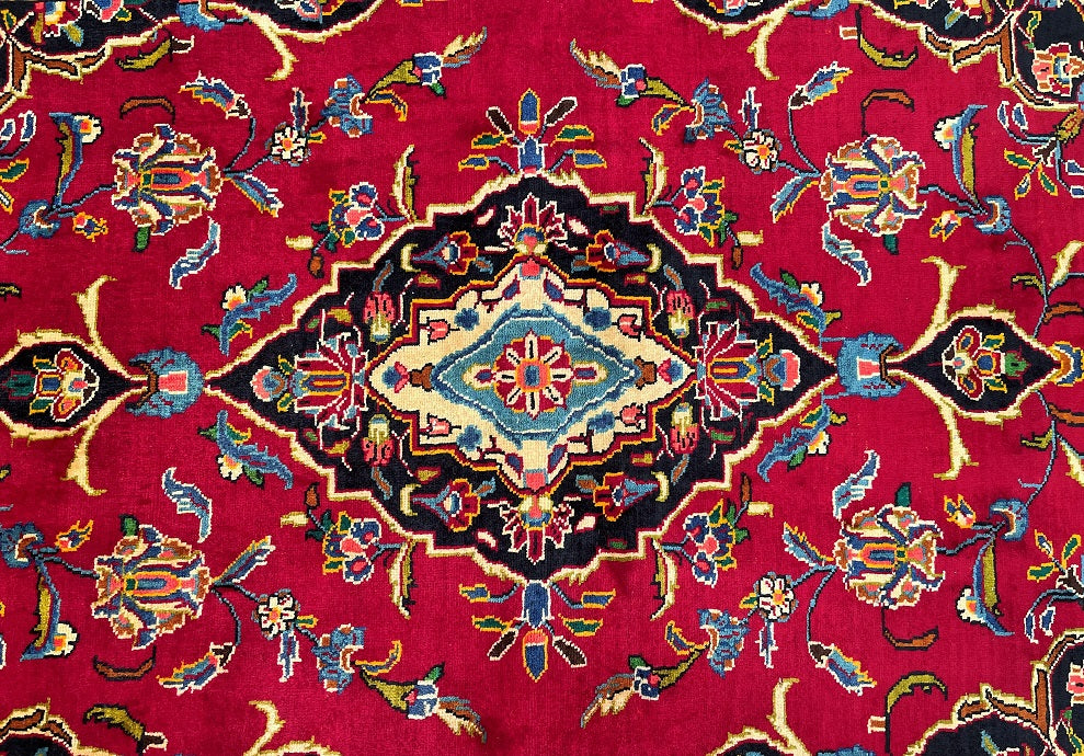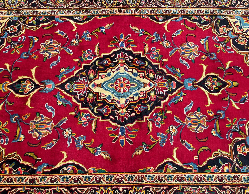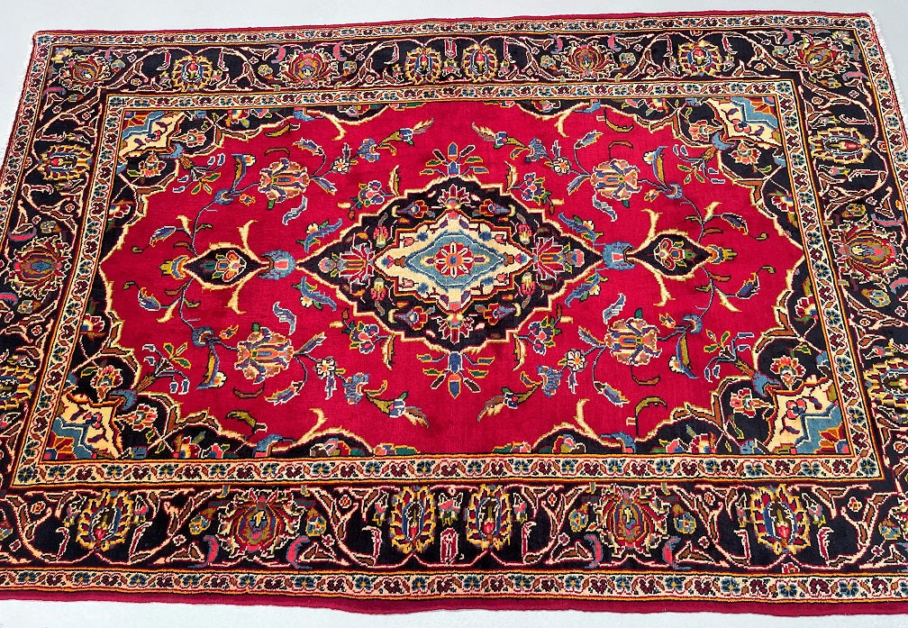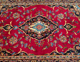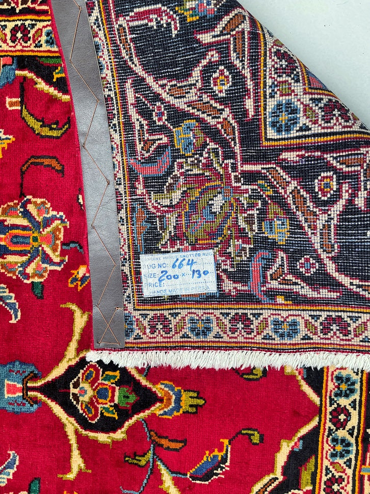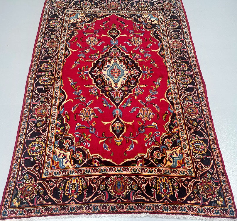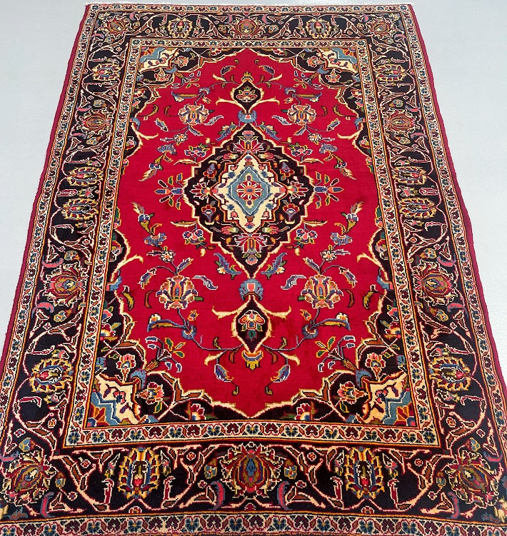 Rare Authentic Handmade Persian Kashan Rug. Above All This Is A Collectable Old Piece. Hand Woven Circa 1950’s. It Also Has A Pure Lamb’s Wool Pile On Cotton Base. It Also Has A Stunning Red And Indigo Blue Tones Dyed Using Traditional Methods.