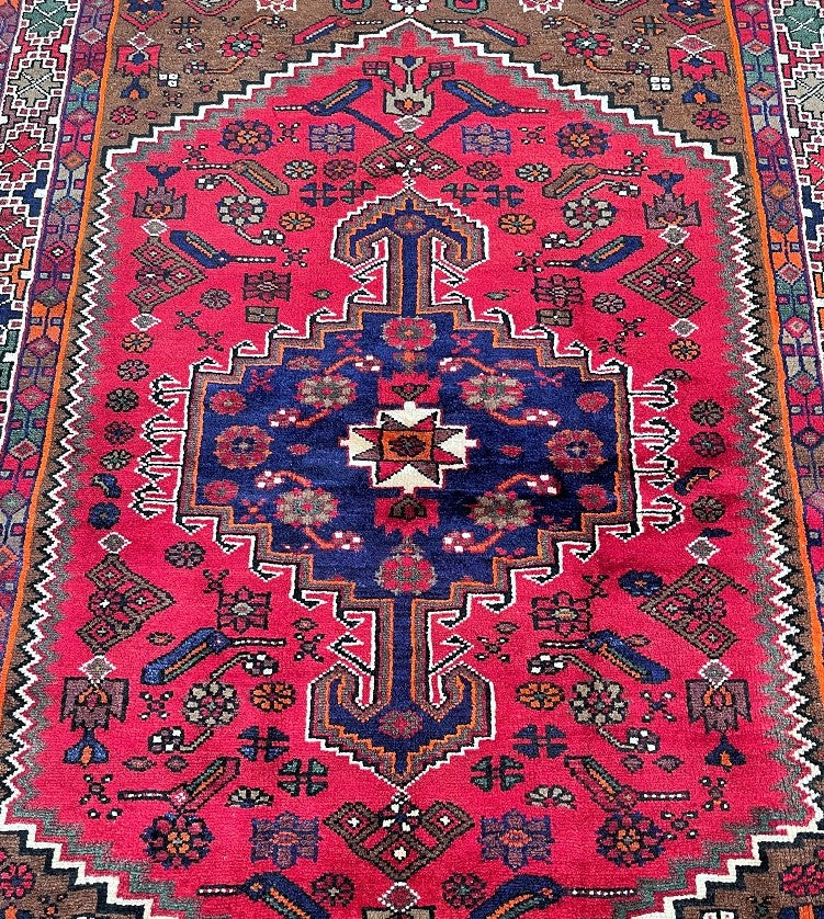 Free Shipping Australia Wide Offered. Certified Hand Knotted Persian Rug 200x132cm Coffee Table Size Authentic Handmade Tribal Persian Khamseh Rug. Above All It Has A Pure Hand Spun Wool Pile On Cotton Base. It Also Has A Rustic Red, Indigo Blue, ...