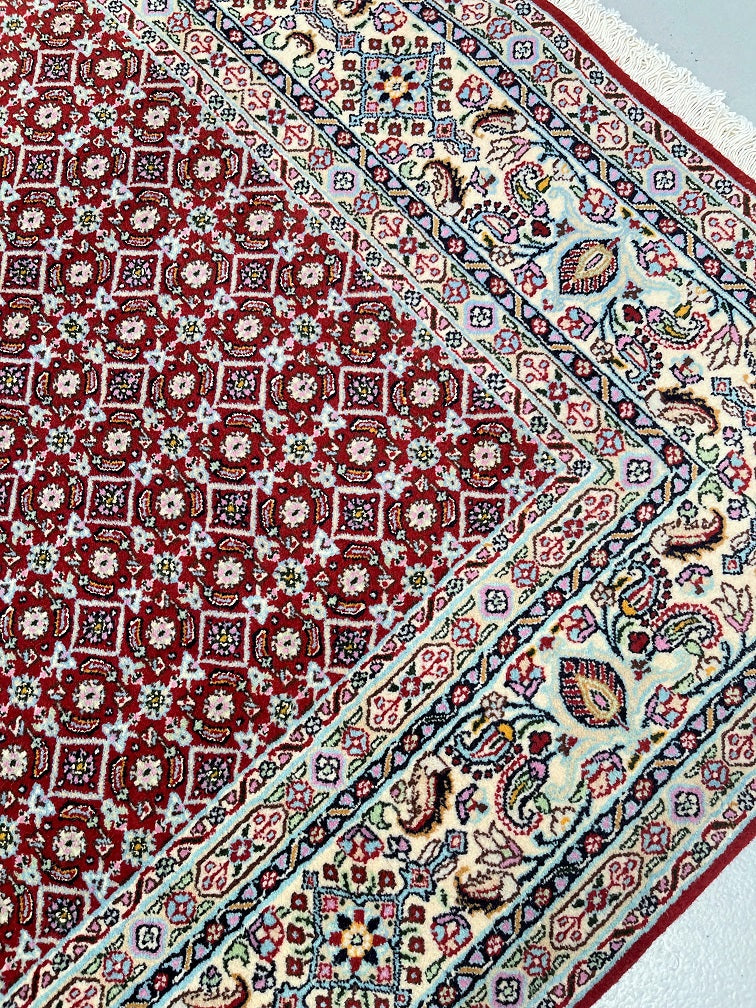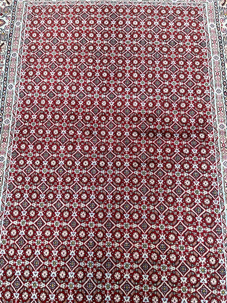 Superfine Authentic Handmade Persian Birjand Rug. Above All It Has A Very Fine Workmanship. It Also Has A Lamb’s Wool And Touch Of Silk Pile On Fine Cotton. Main Colors Are Maroon, Indigo Blue, Beige, Aqua, Yellow, Black, Green And Pink Tone Dyed Using Traditional Methods.