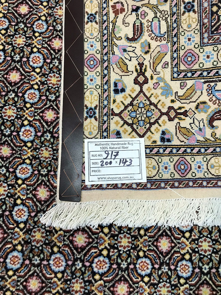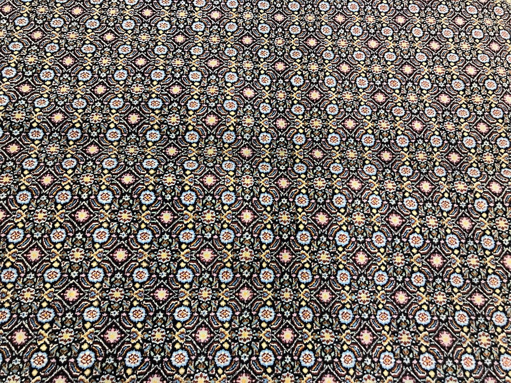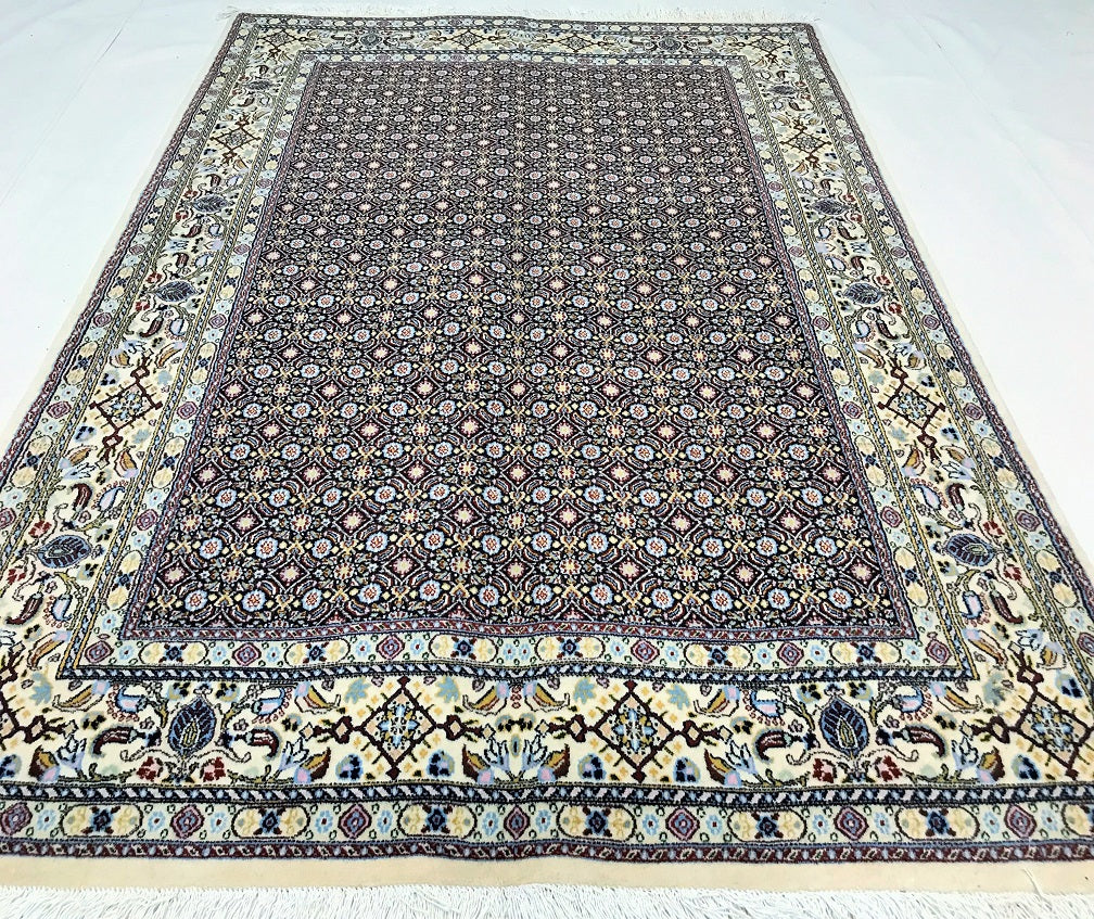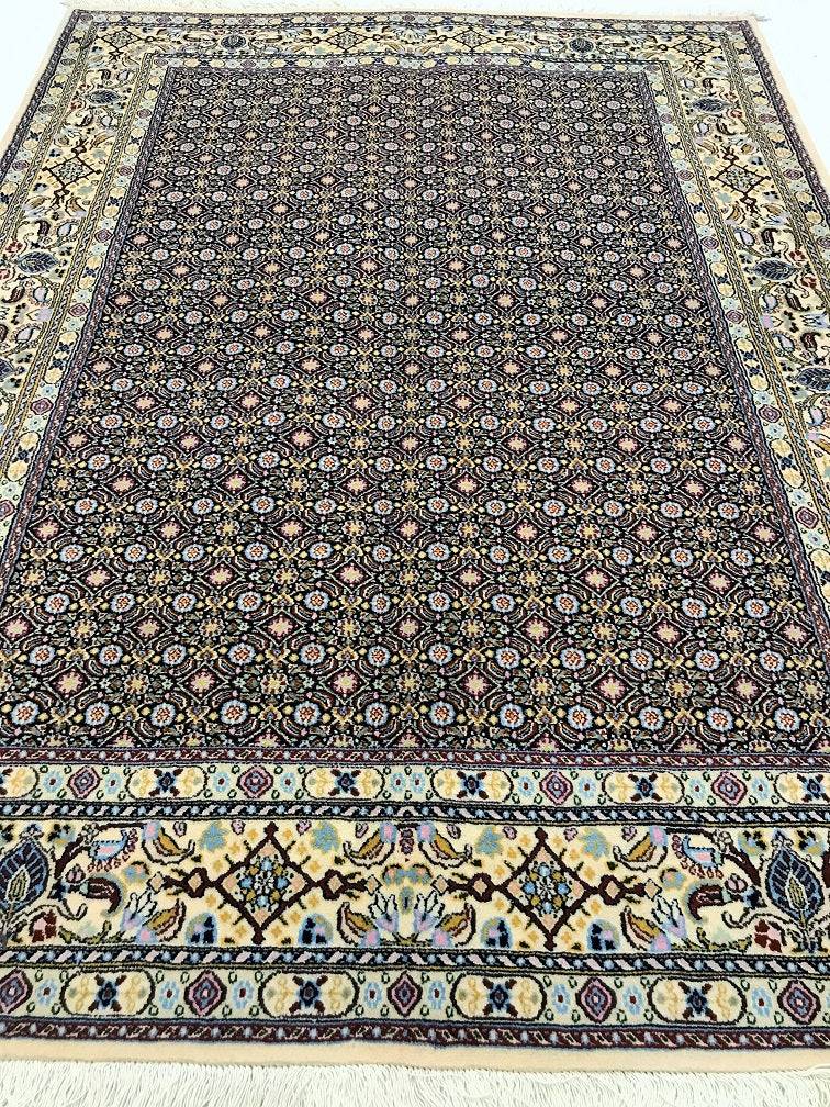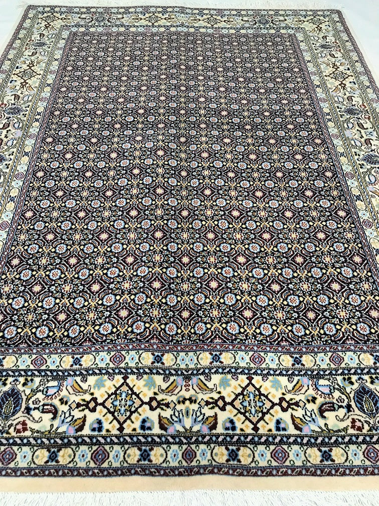 Fine Quality Authentic Handmade Persian Birjand Rug. Lamb’s Wool and Silk-Inlaid Pile on Cotton Base. It Also Has An Indigo Blue, Beige, Pink, Yellow And French Blue Tone Dyed Using Traditional Methods.