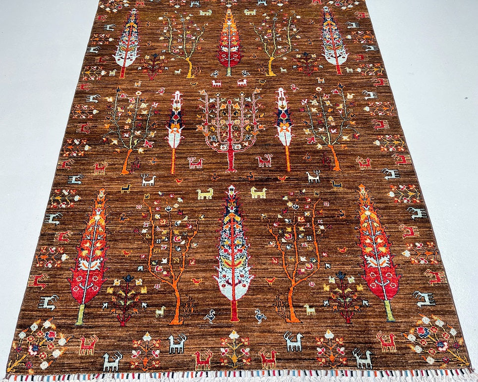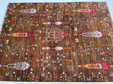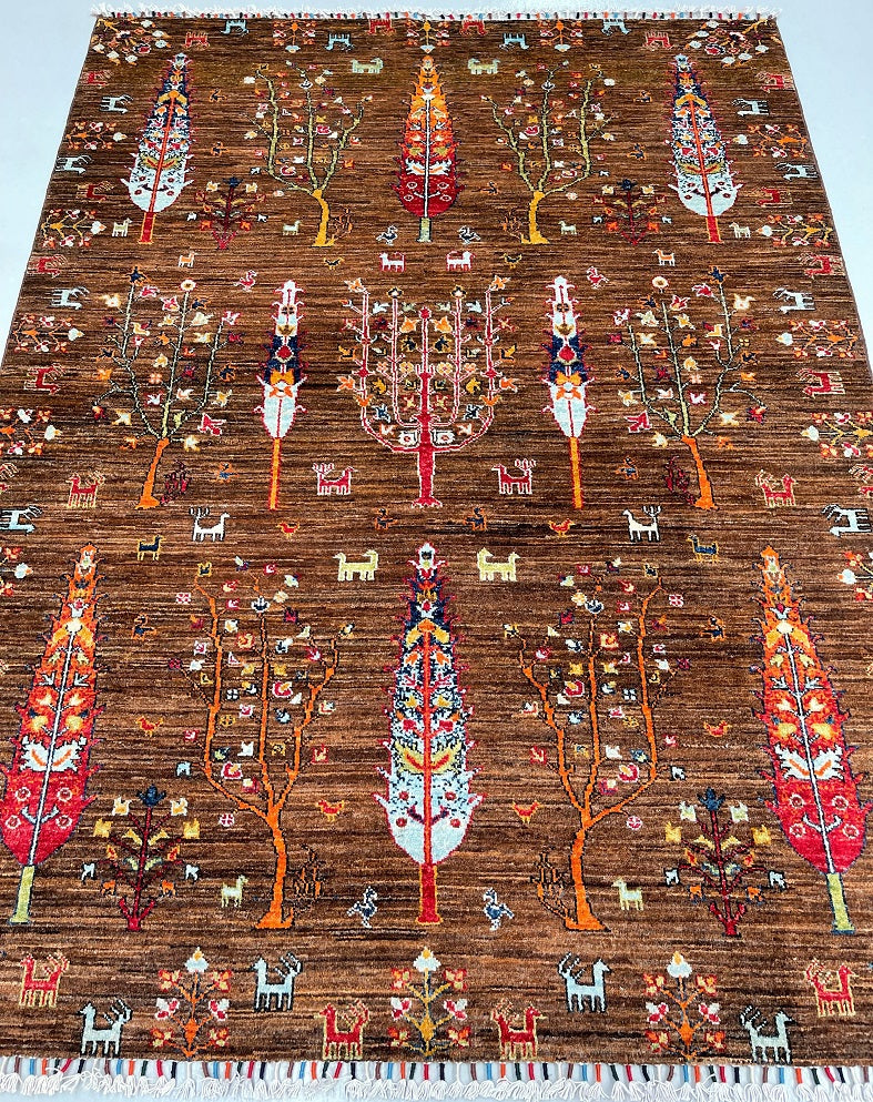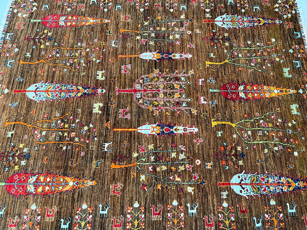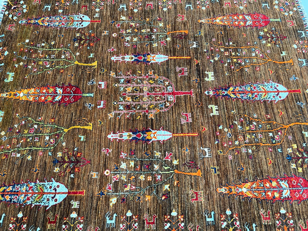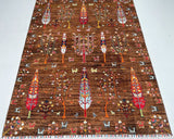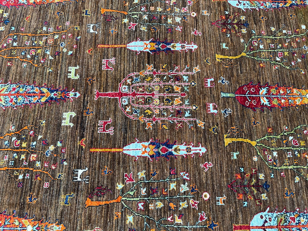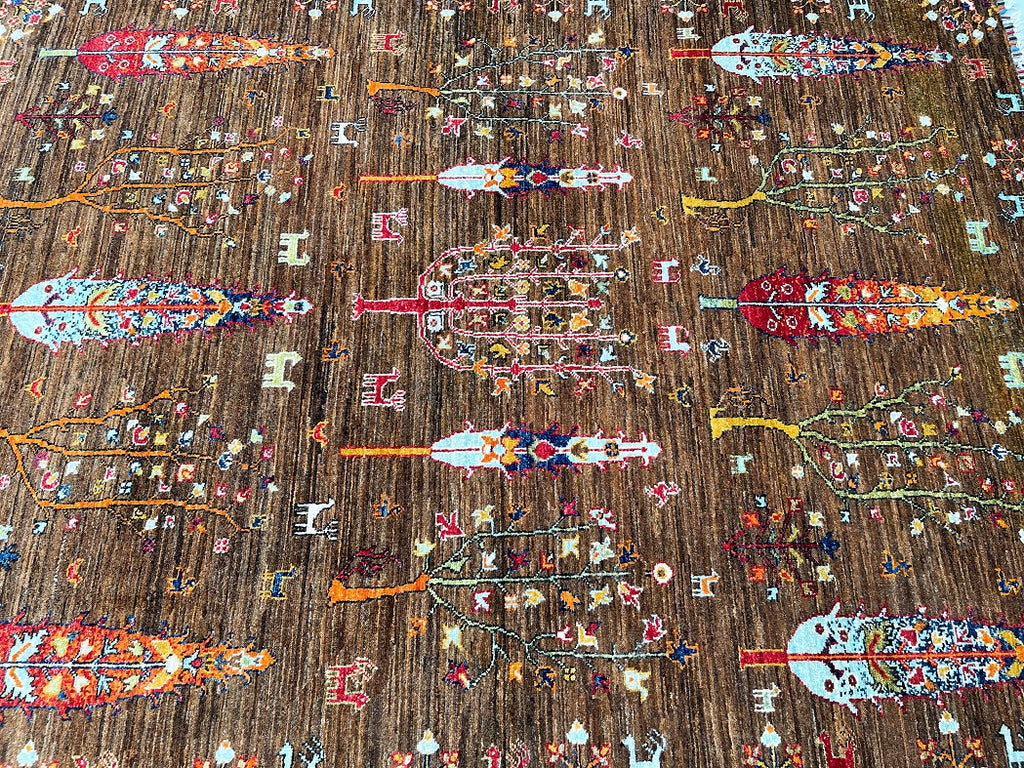 Decorative Authentic Hand Knotted Afghan Chobi Rug. Above All It Is Pure Hand Spun Wool Pile On Cotton Base. Gorgeous Chocolate Brown, Beige, Yellow, Burnt Orange, Blue And Yellow Tone Dyed Using Traditional Methods (Vegetable Dyes). Last Of True Woven Nomadic Art.