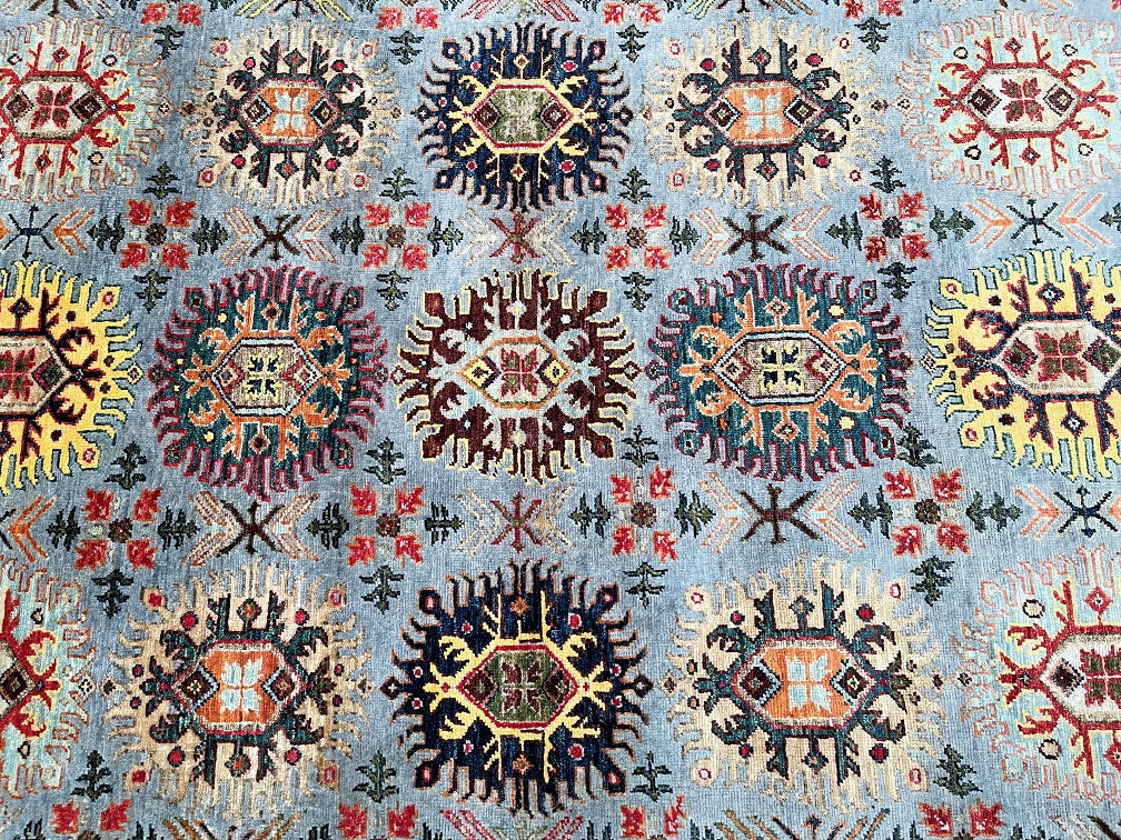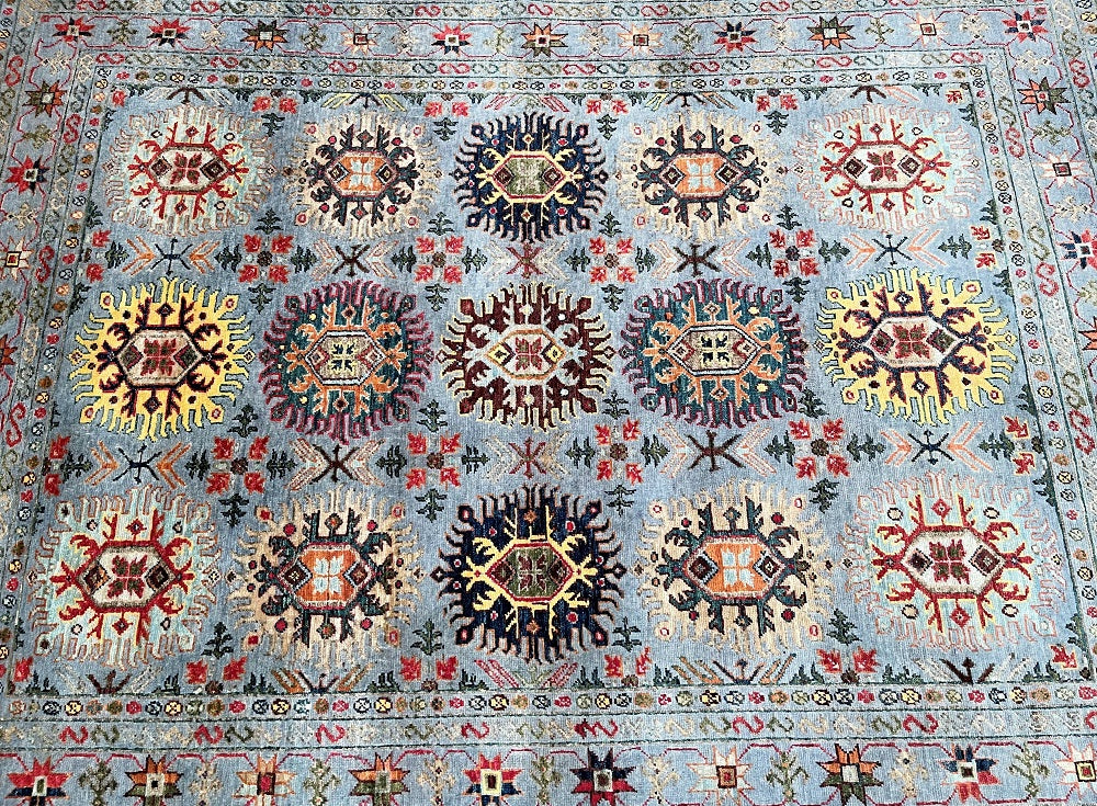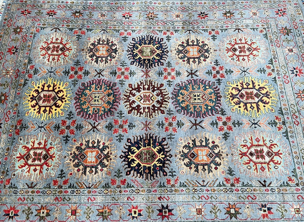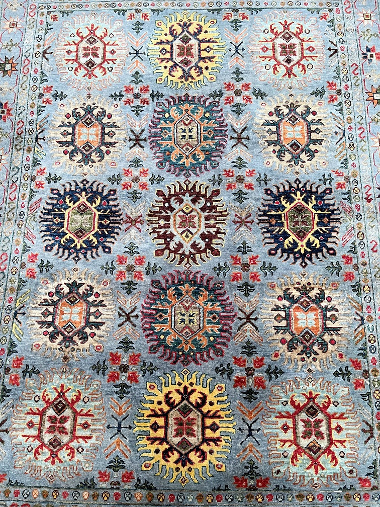 Unique Authentic Hand Knotted Afghan Ferahan Kazak Rug. Above All It Has A Pure Hand Spun Wool Pile On Cotton Base. Grey Blue Tone Dyed Using Traditional Methods (Vegetable Dyes). Last of True Woven Nomadic Art.