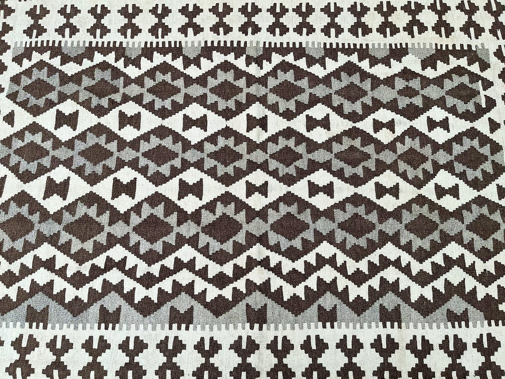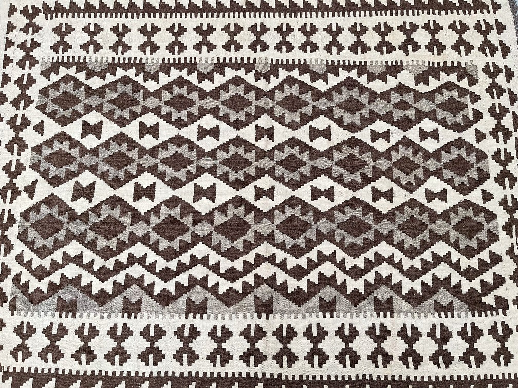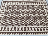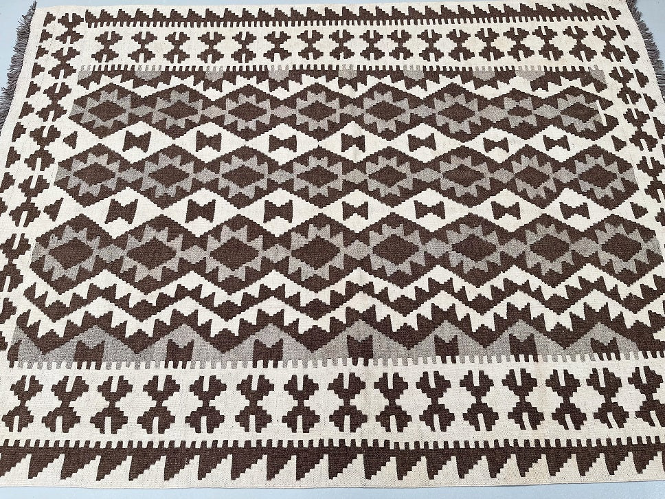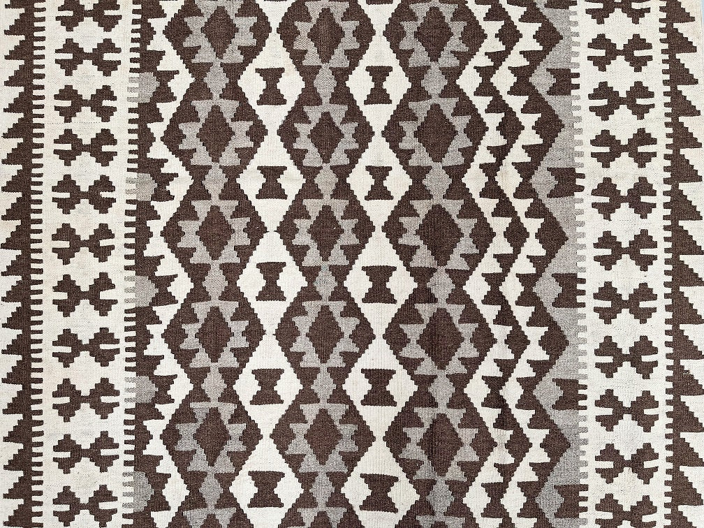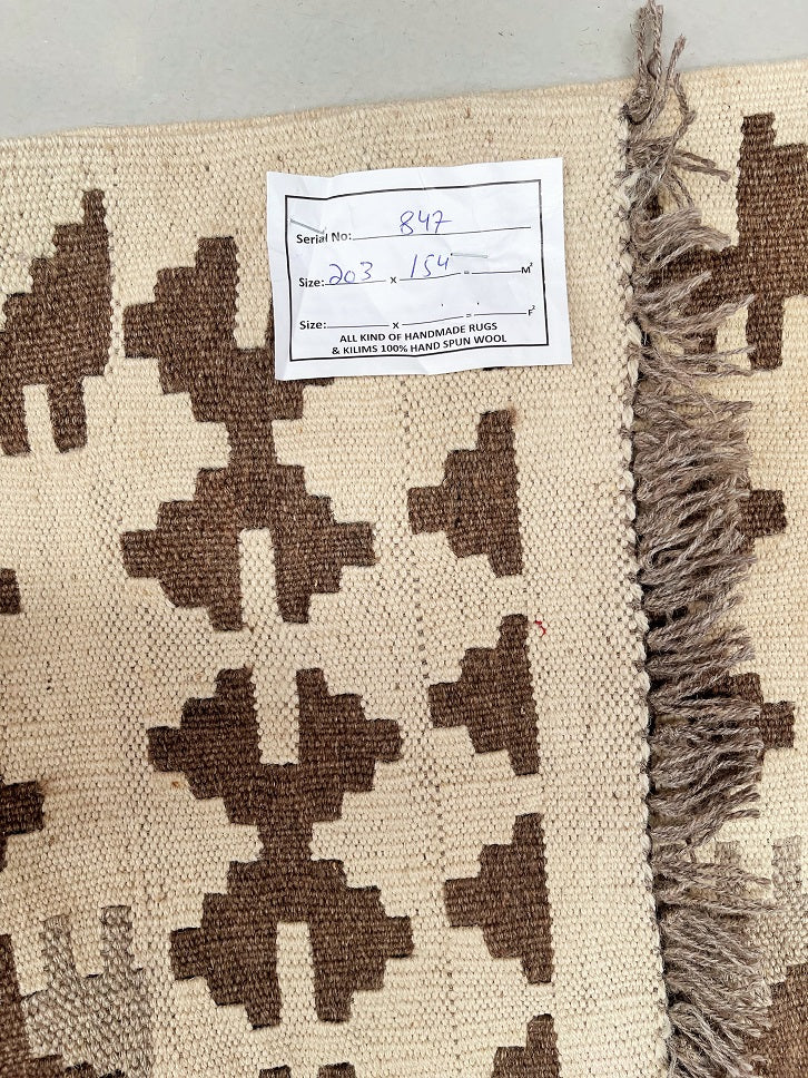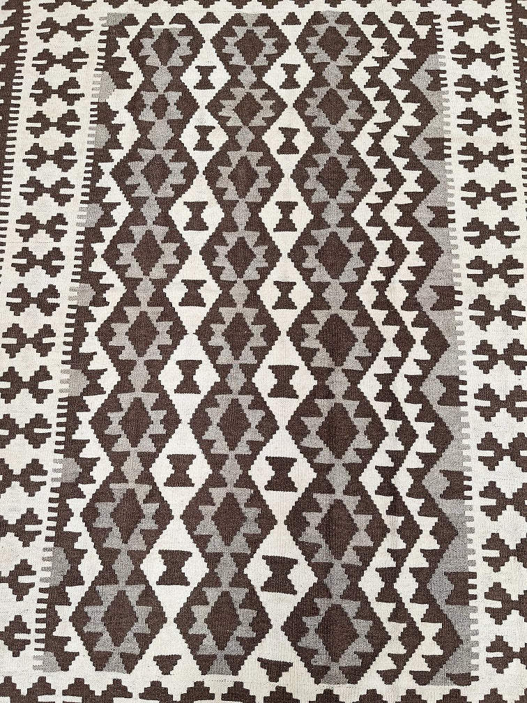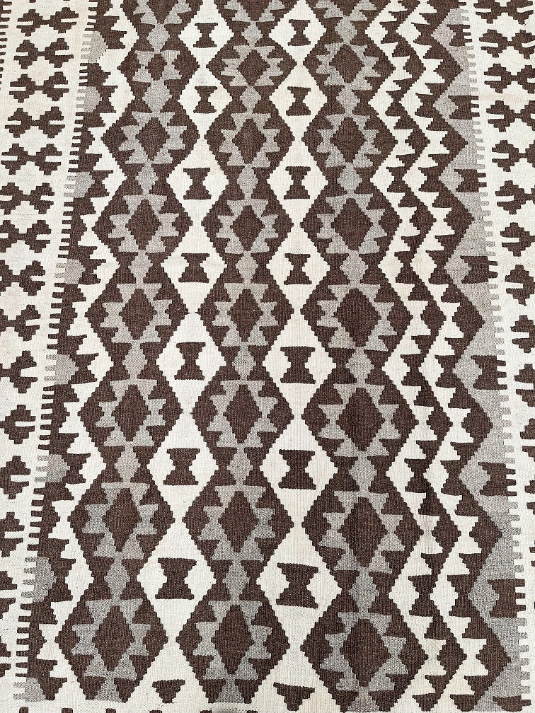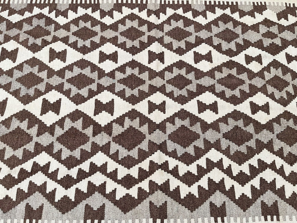 Coffee Table Size Nomadic Hand Woven Afghan Meymaneh Kilim Rug. Above All It Is A Versatile Size And Reversible. It Also Has A Pure Hand Spun Wool Pile On Wool Base. Neutral Beige And Brown Tone Dyed Using Traditional Methods.