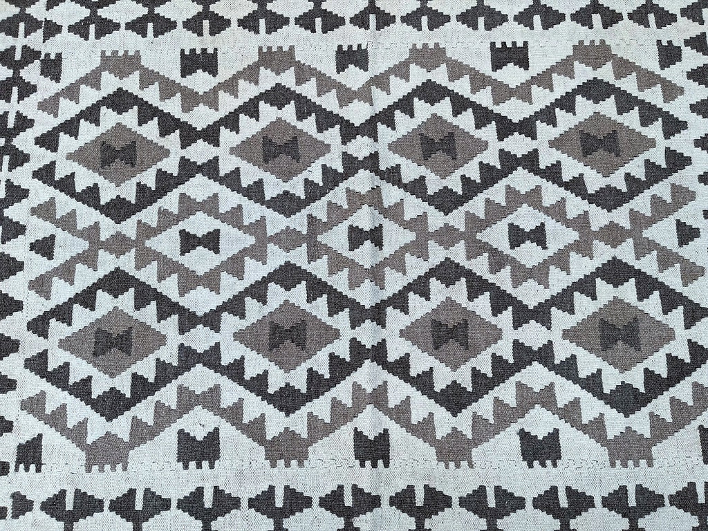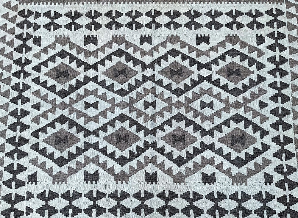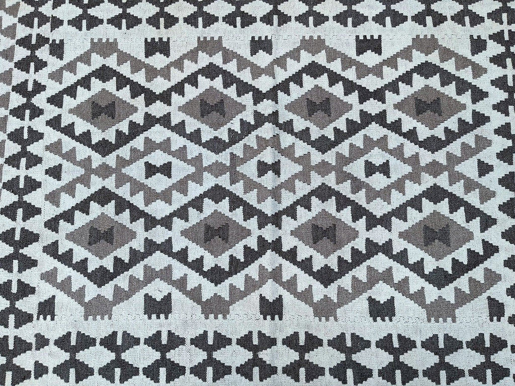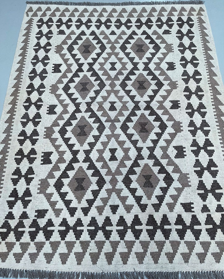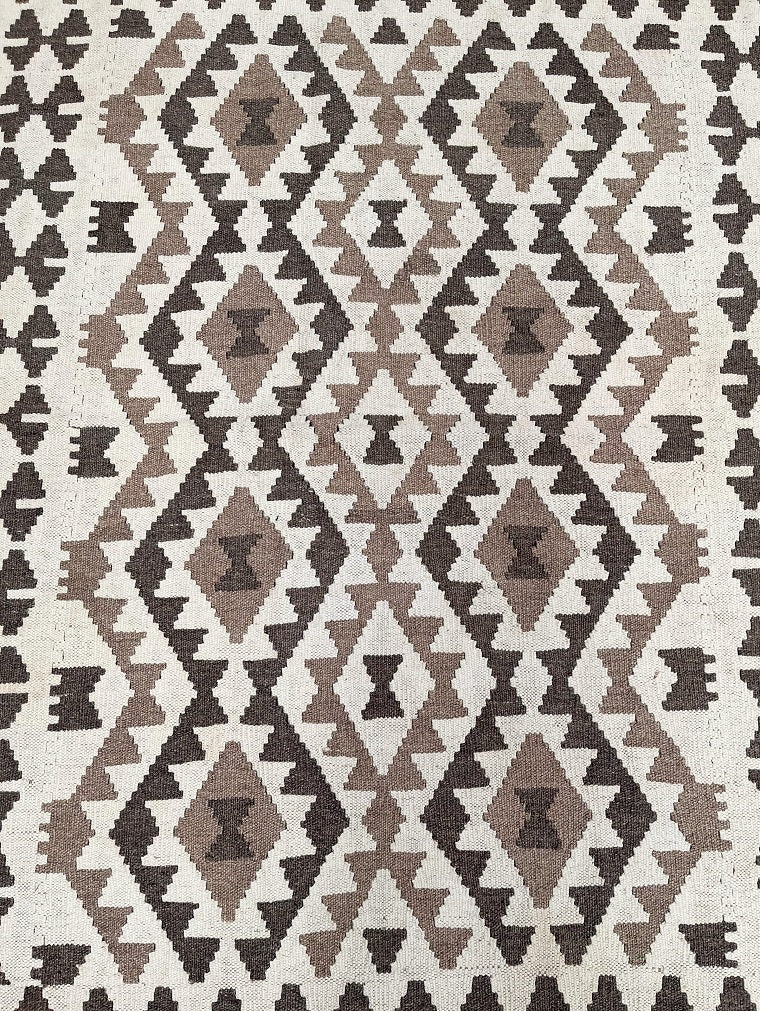 Coffee Table Size Nomadic Hand Woven Afghan Meymaneh Kilim Rug. Above All It Is A Very Versatile Size. It Also Has A Pure Hand Spun Wool Pile On Wool Base. Neutral Beige, Grey And Brown Tone Dyed Using Traditional Methods.