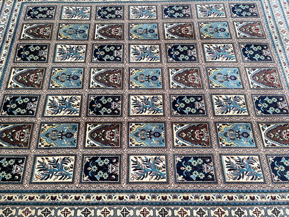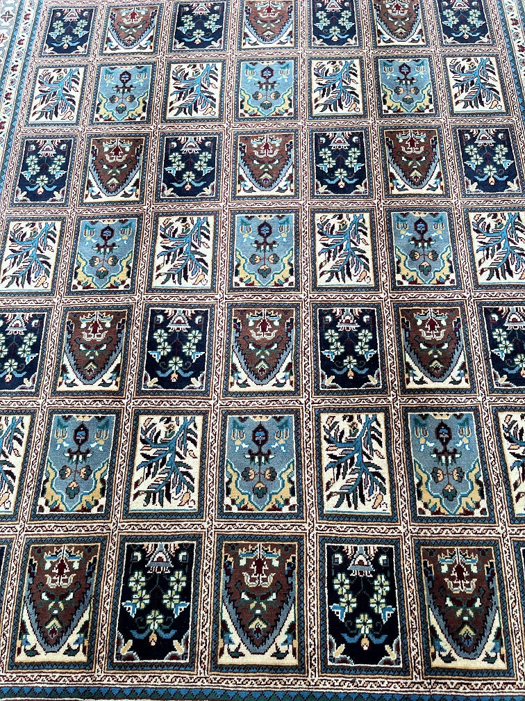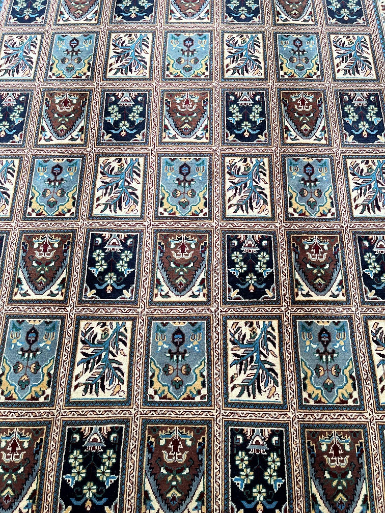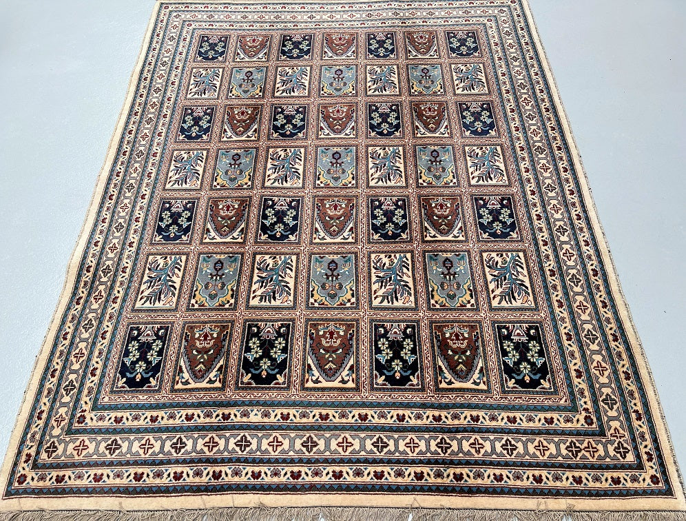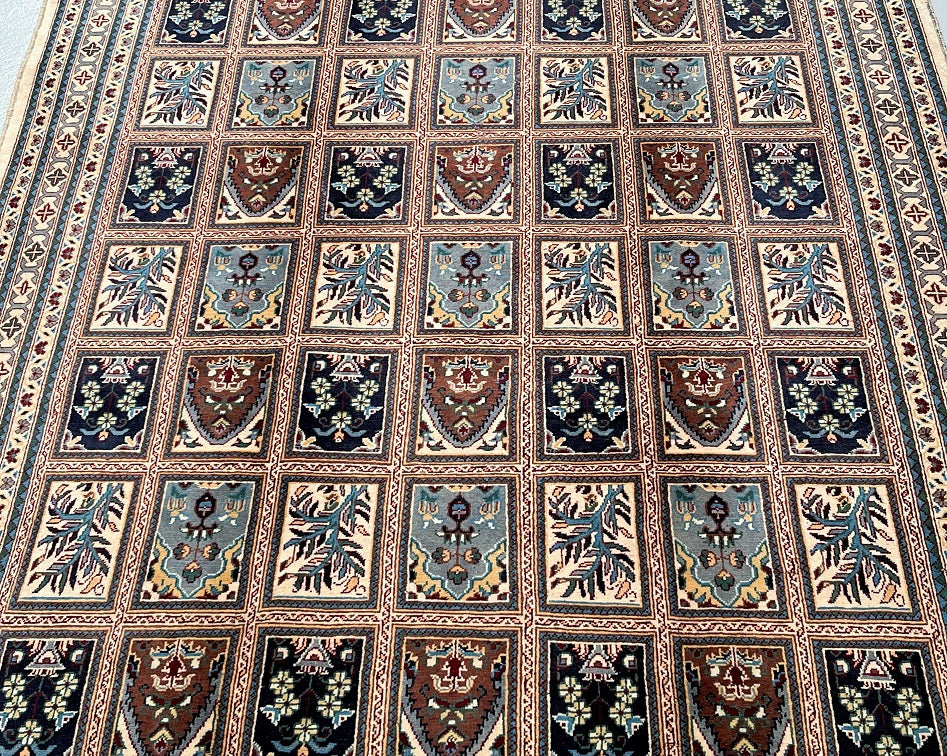 Fine Authentic Hand Knotted Afghan Roshnai Rug. Above All It Is Pure Hand Spun Wool Pile On Cotton Base. Stunning Beige, Maroon, Caramel, Blue And Gold Tone Dyed Using Traditional Methods.