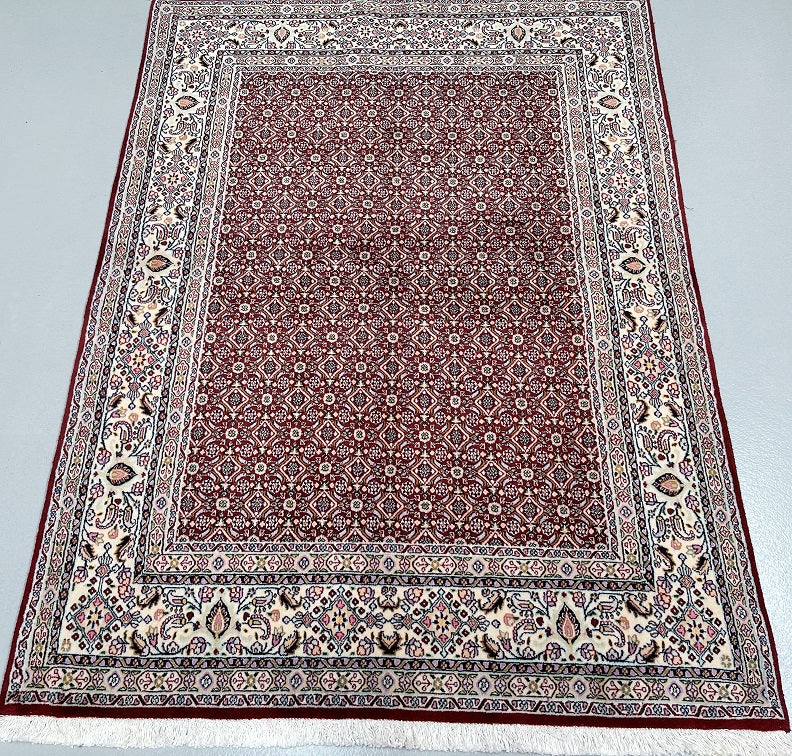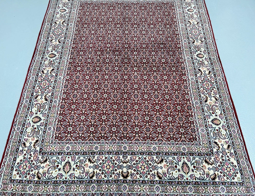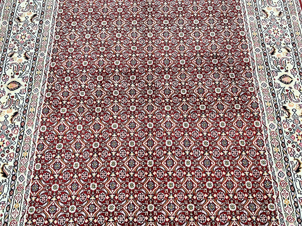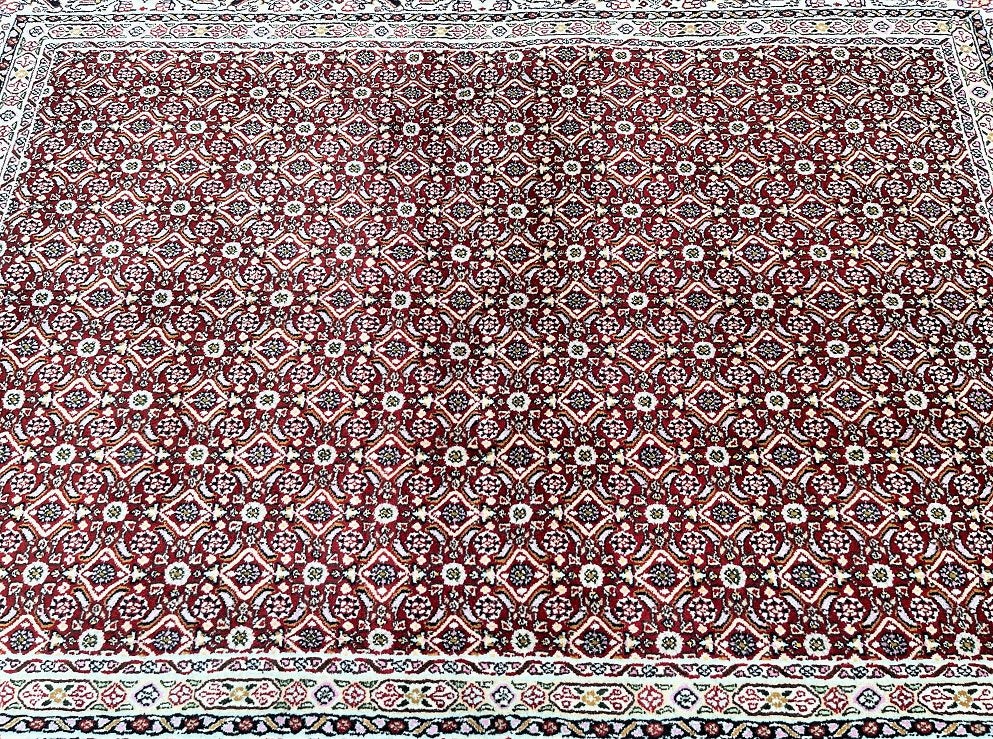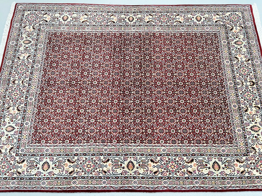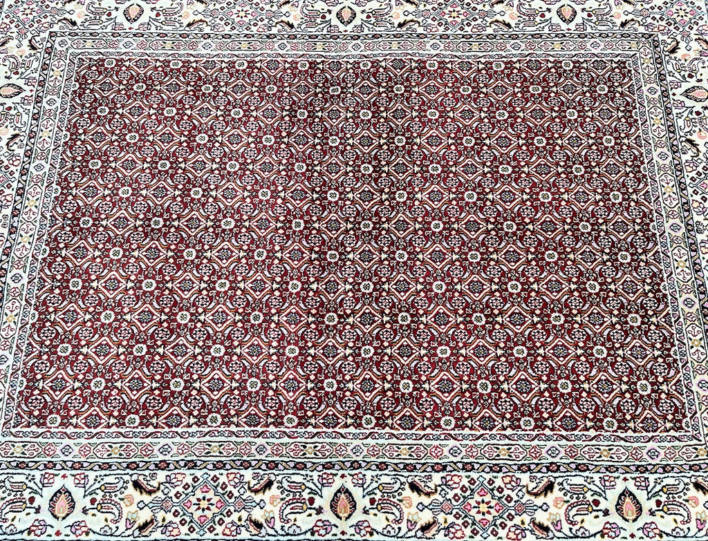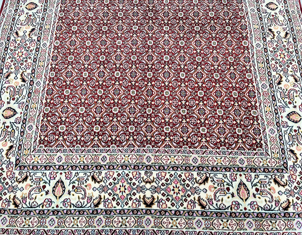Superb Coffee Table To Room Size Genuine Handmade Persian Birjand Rug. Above All It Has A Very Fine Workmanship. It Also Has A Lamb’s Wool And Touch Of Silk Pile On Fine Cotton. Main Colors Are Maroon, Indigo Blue, Beige, Aqua, Green And Pink Tone Dyed Using Traditional Methods.