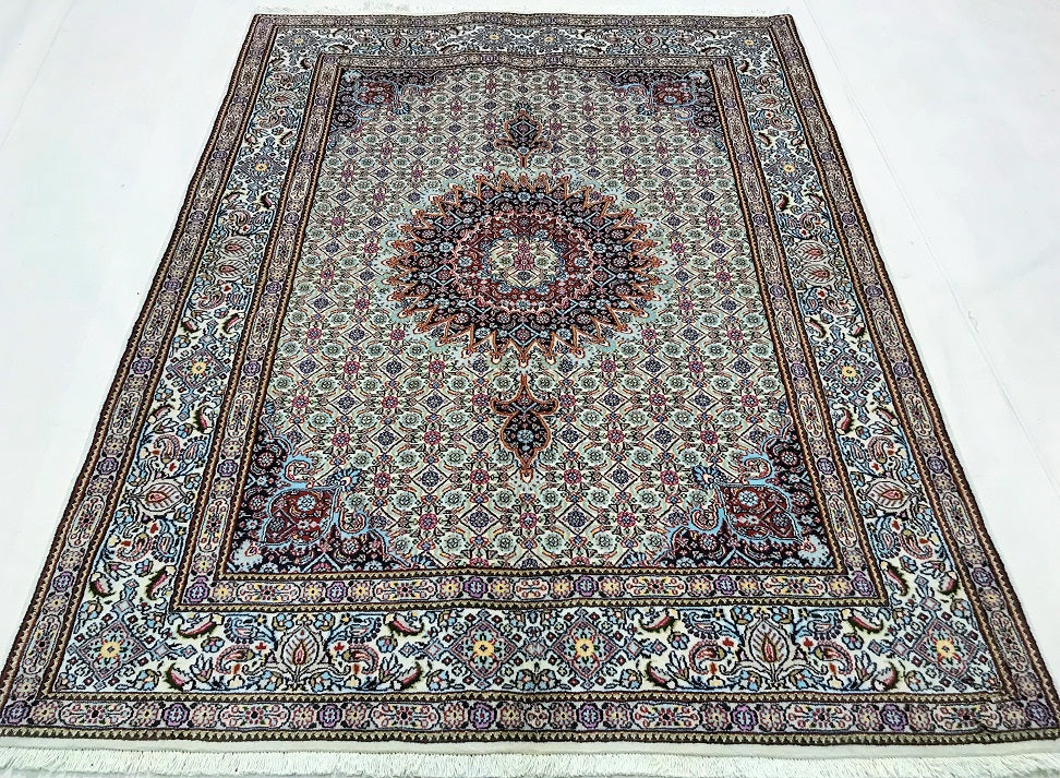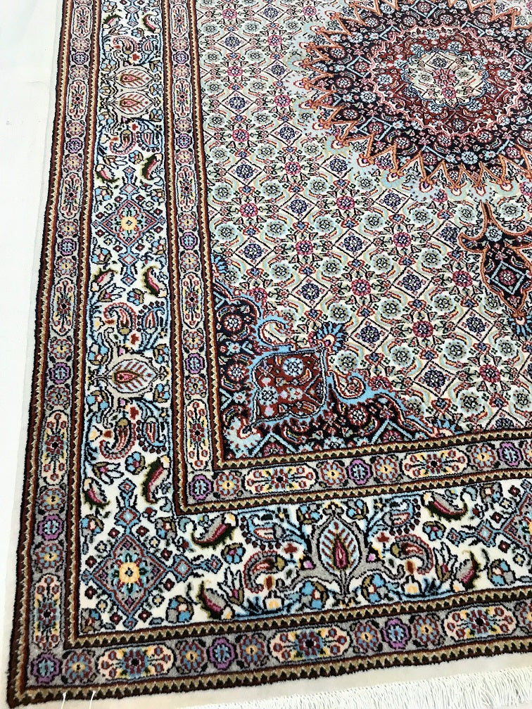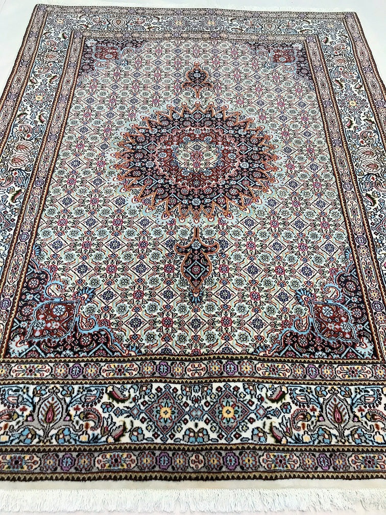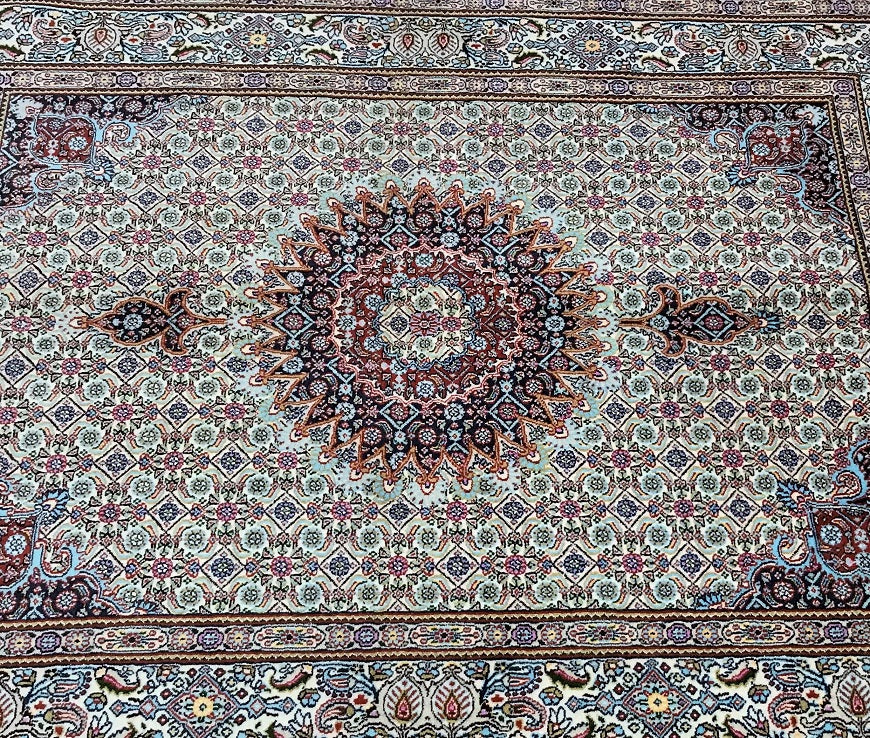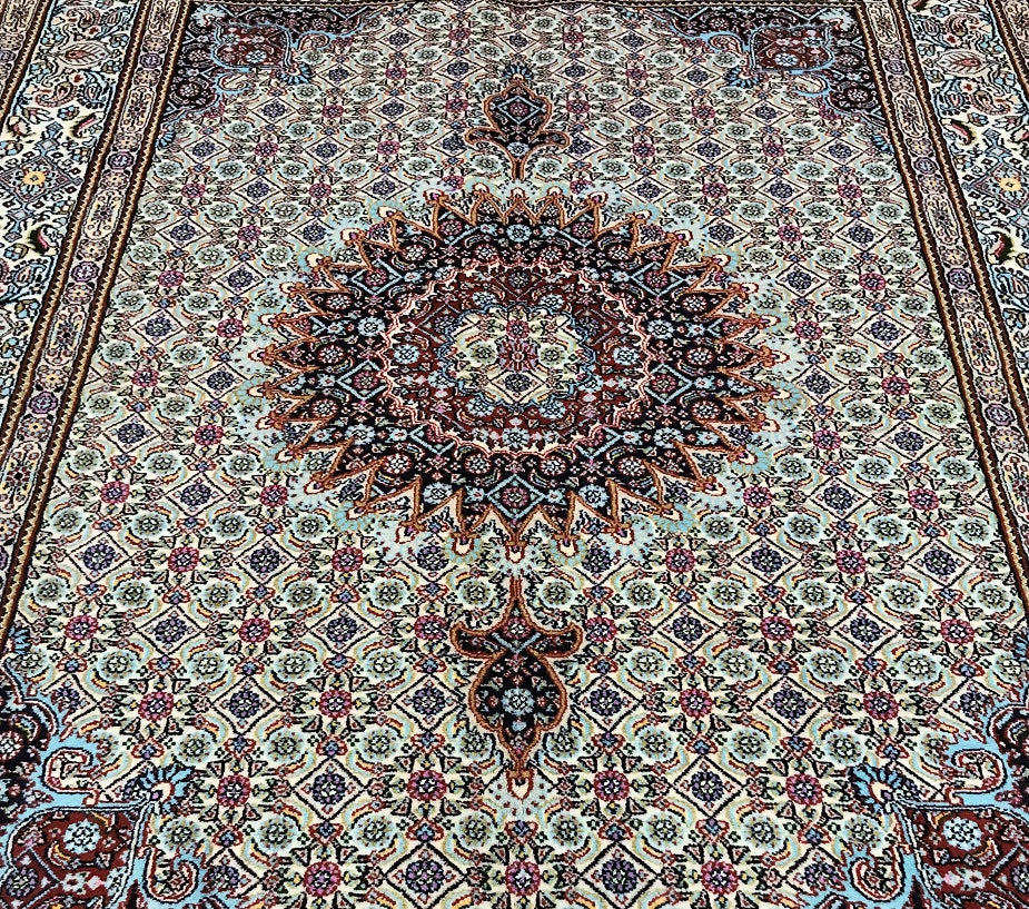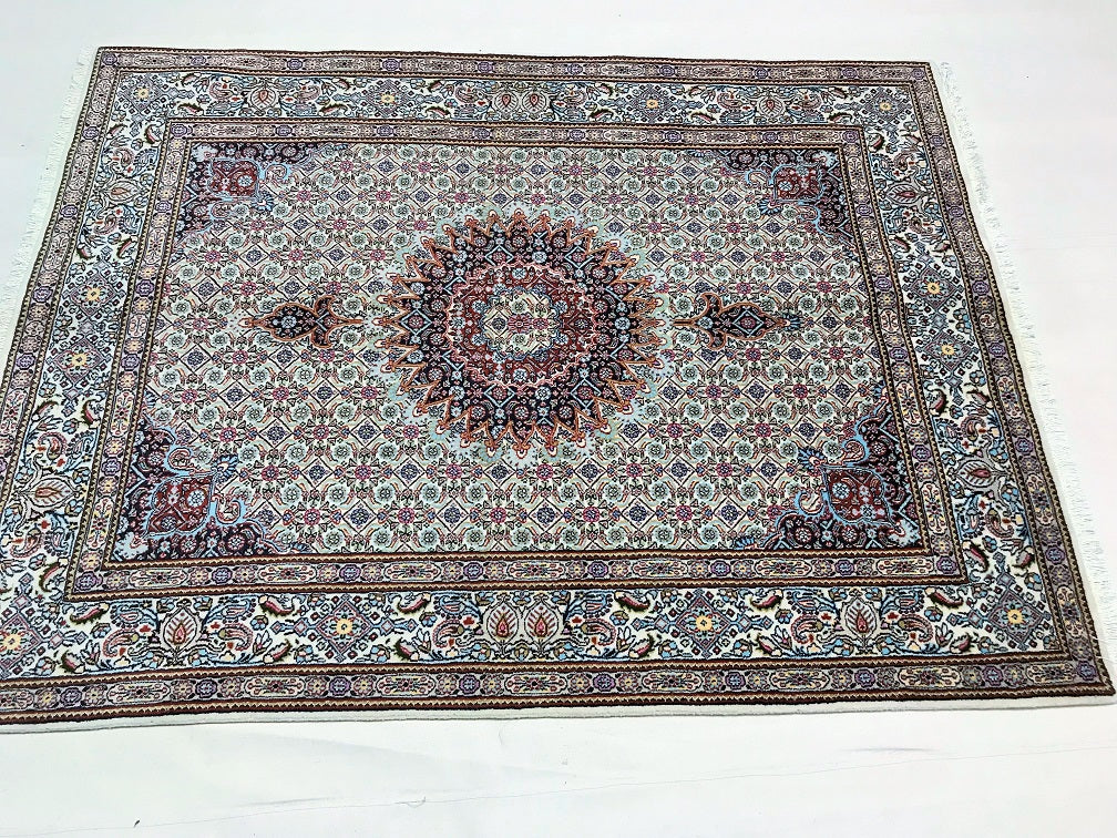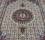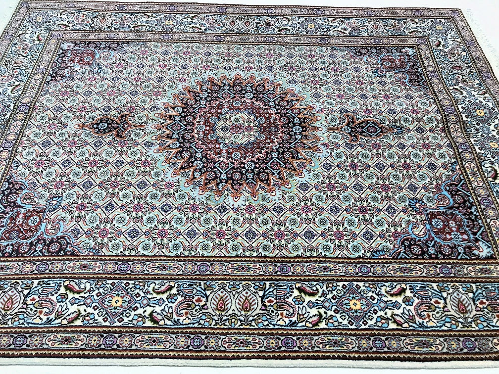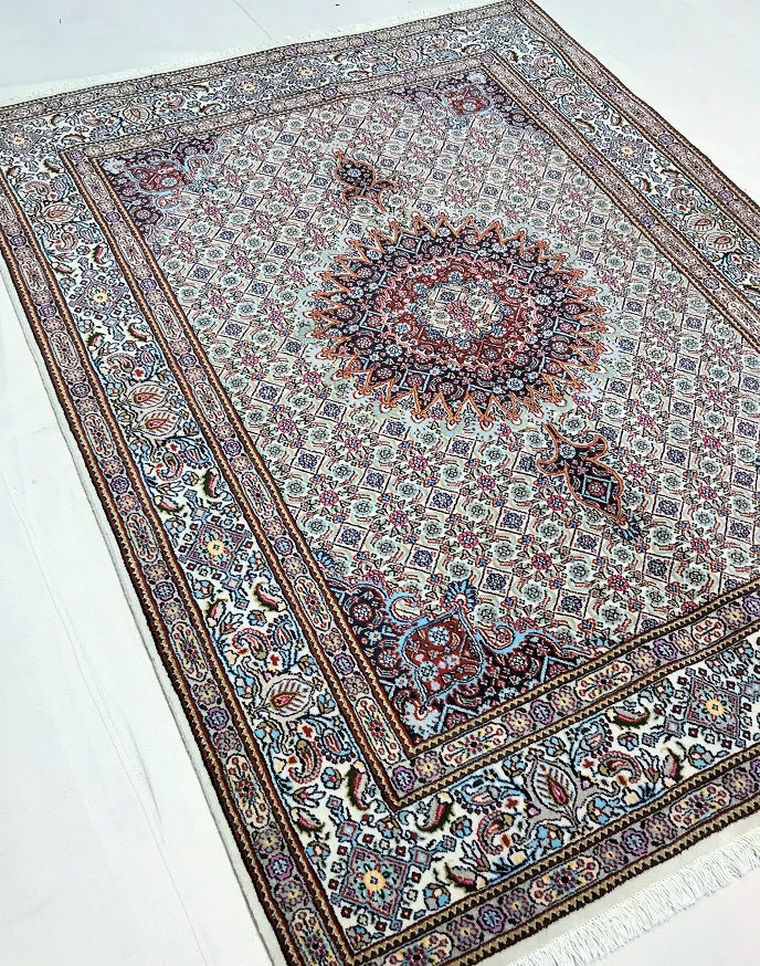 Superb Authentic Handmade Persian Birjand Rug. Above All It Has A Lamb’s Wool And Touch Of Silk Pile On Fine Cotton. Beige, Blue, Pink, Black, Maroon And Peach Tone Dyed Using Traditional Methods.