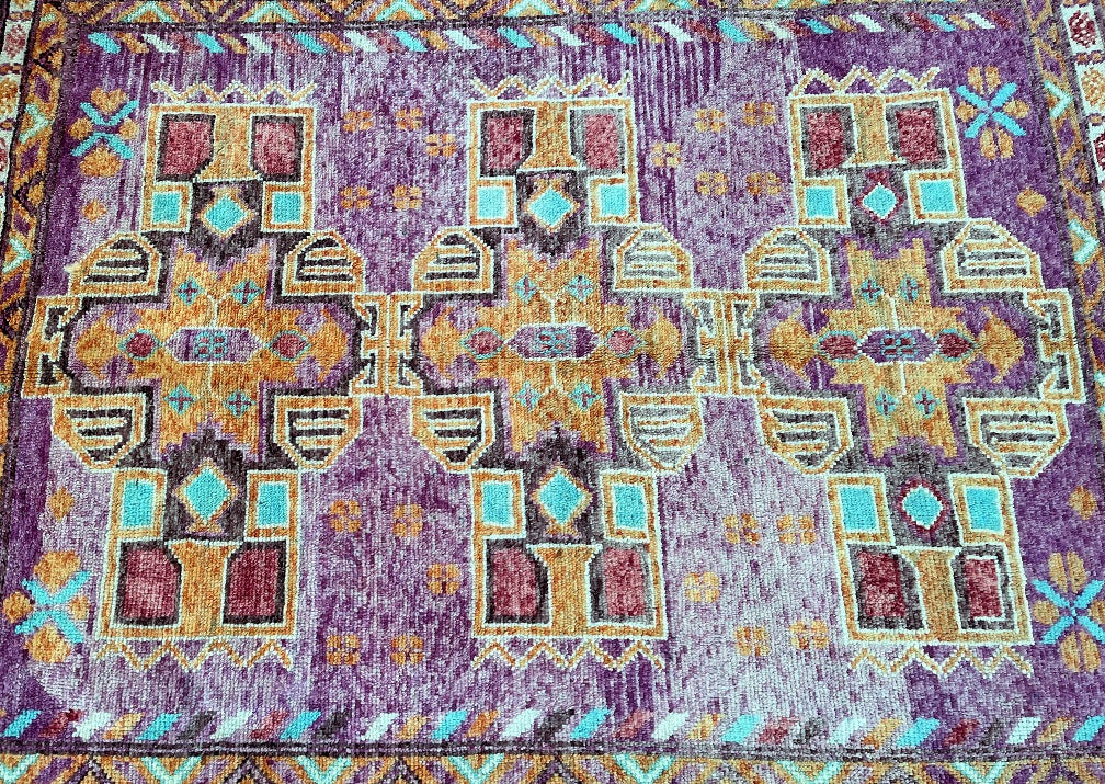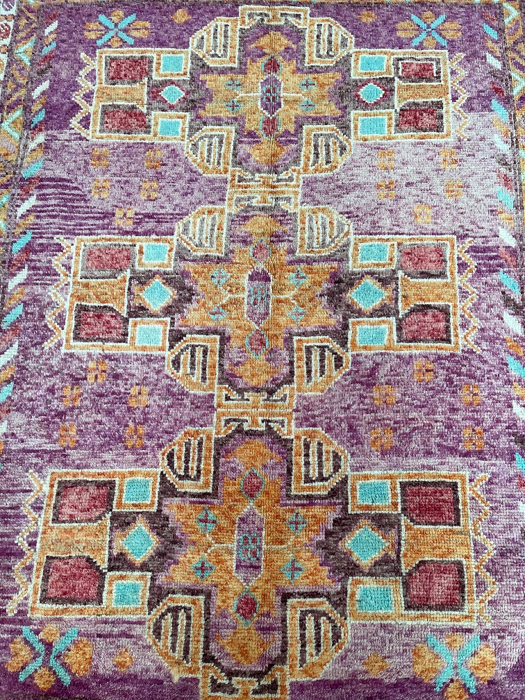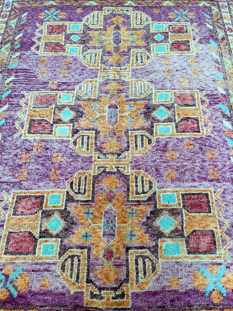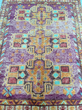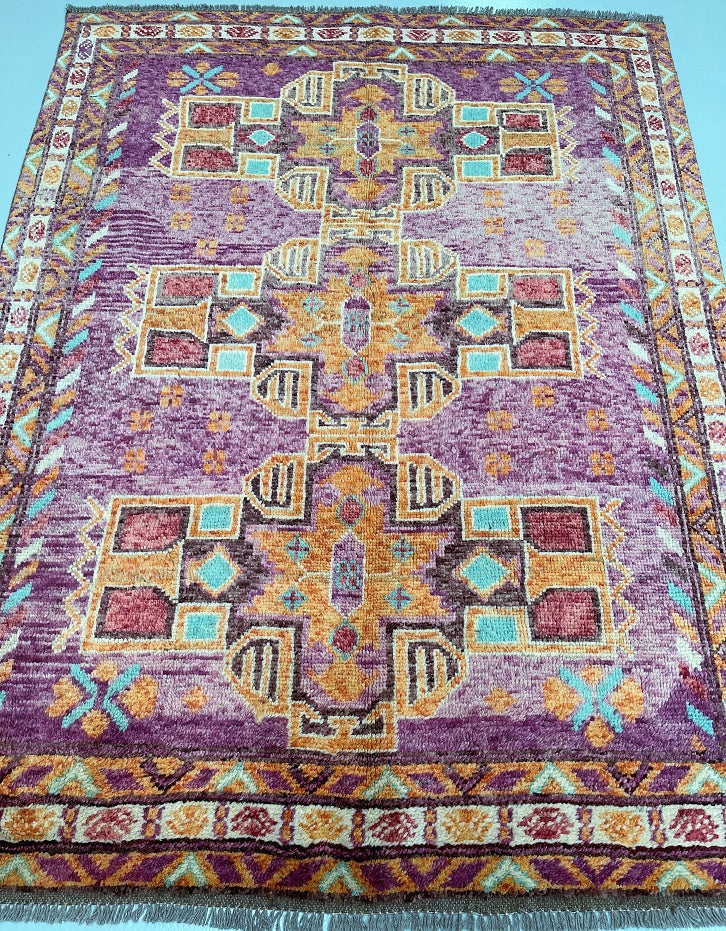 Moroccan Style Hand Knotted Afghan Gabbeh Rug. Above All It Is Pure Wool Pile On Wool Base. Purple, Orange, Beige And Turquoise Tone Dyed Using Traditional Methods. Last of True Woven Nomadic Art.