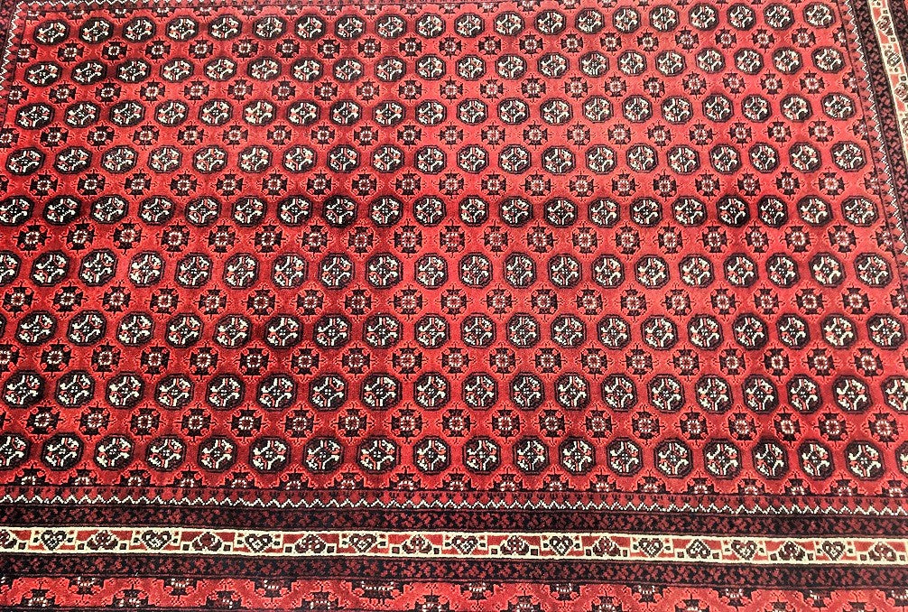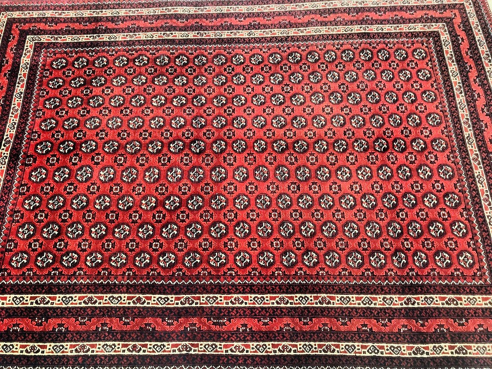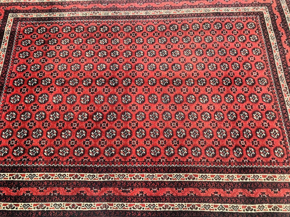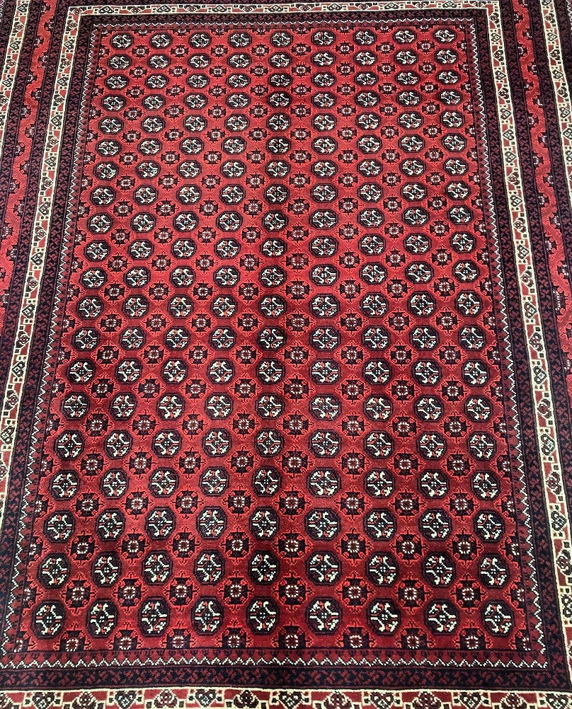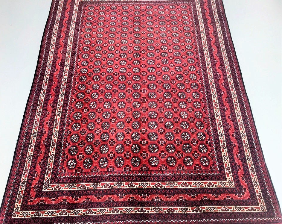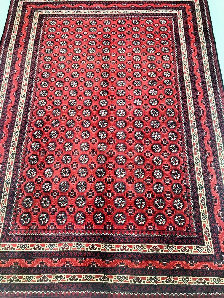 Superb Coffee Table Size Hand Knotted Afghan Roshnai Rug. Above All It Is Pure Hand Spun Wool Pile On Cotton Base. It Also Has A Maroon Tone Dyed Using Traditional Methods.