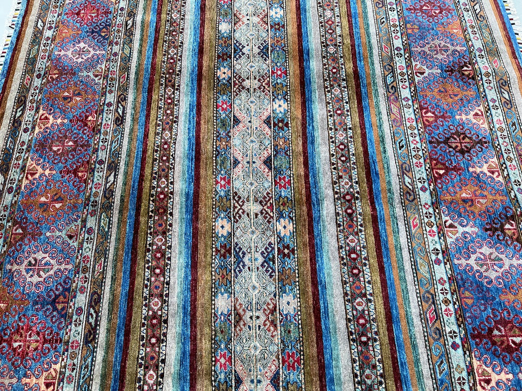 Coffee Table To Room Size Shawl Design Authentic Hand Knotted Afghan Super Kazak Rug. Above All It Is Pure Hand Spun Wool Pile On Cotton Base. Decorative Multi-Color Tone Dyed Using Traditional Methods (Vegetable Dyes). Last Of True Woven Nomadic Art.
