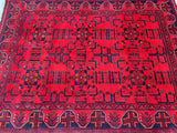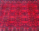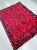 Authentic Handmade Afghan Andkhoy Rug. Above All It Has A Pure Hand Spun Wool Pile On Cotton Base. It Also Has a Maroon/Burgundy Tone Dyed Using Traditional Methods. This Rug Is Durable and Would Look Fantastic On Hard Flooring.