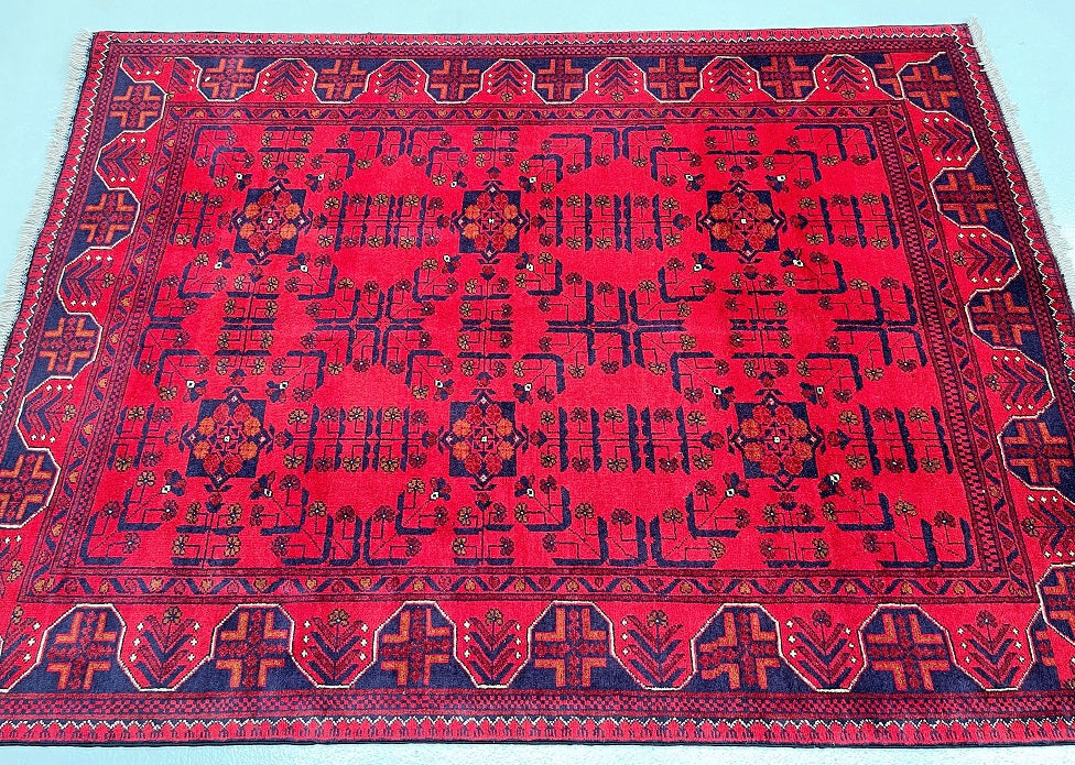 Certified Hand Knotted Afghan Rug 200x149cm