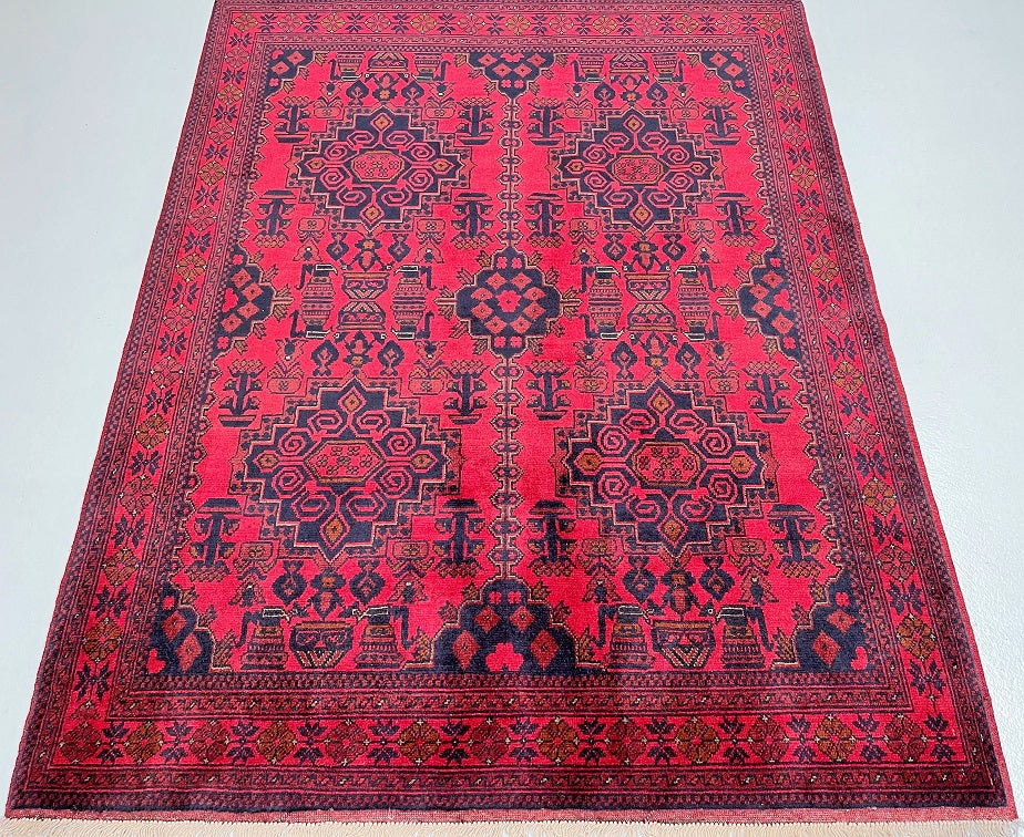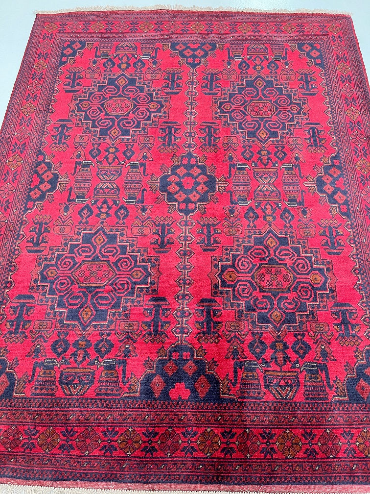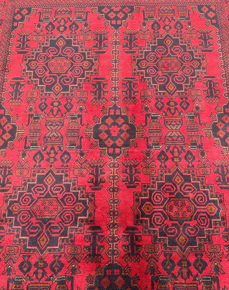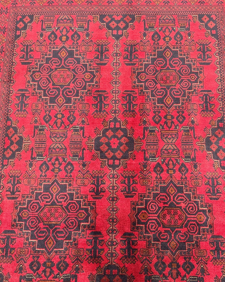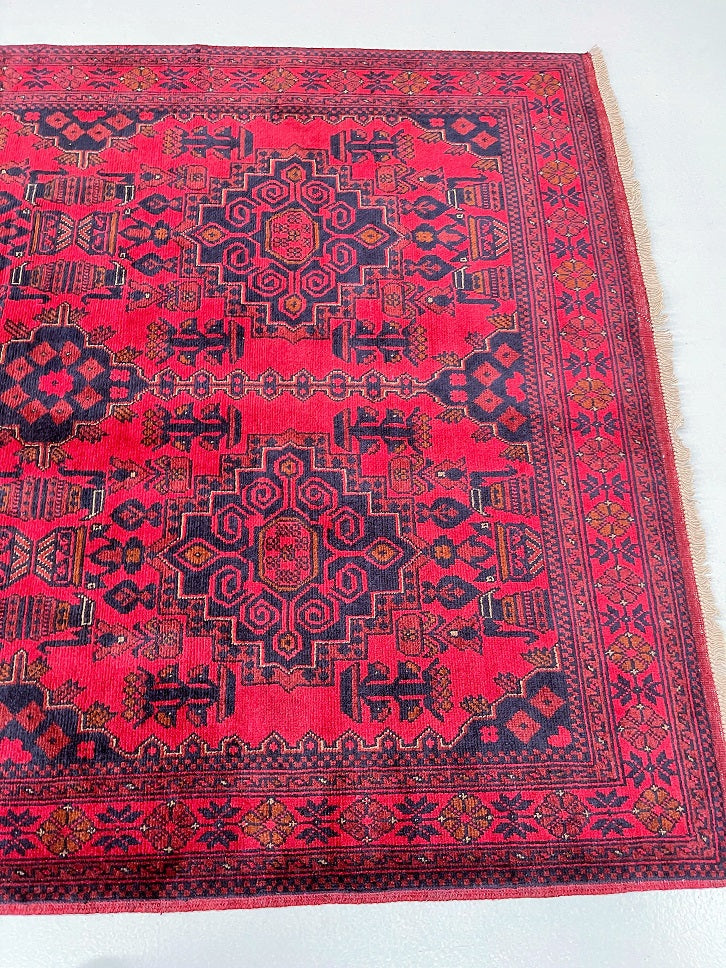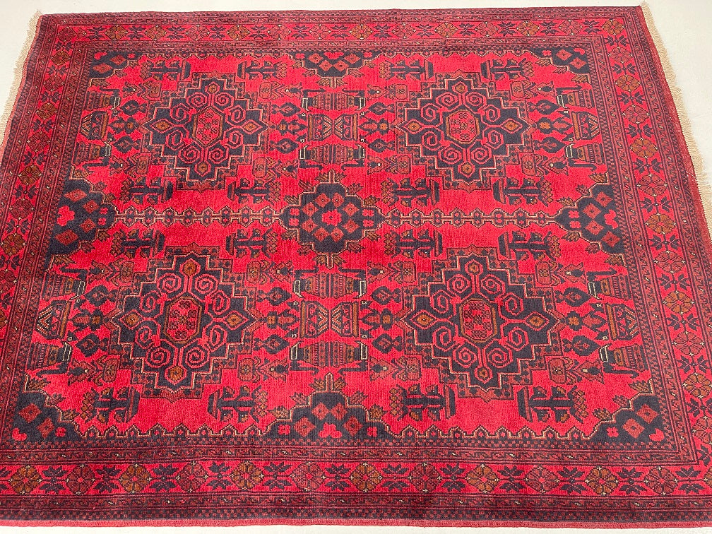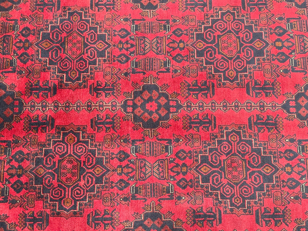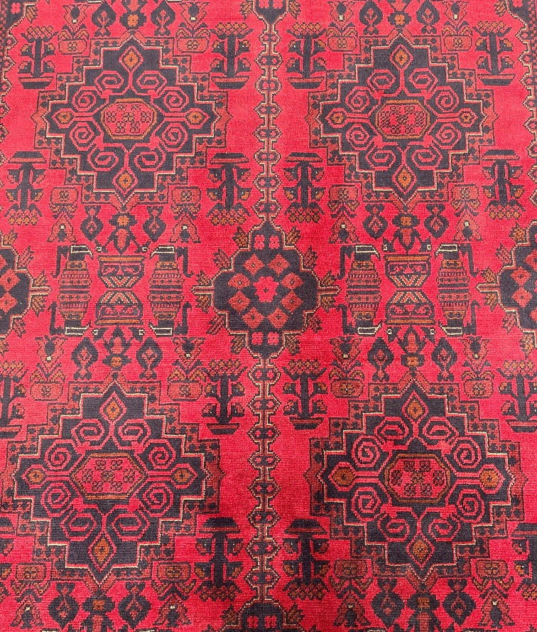 Durable Authentic Hand Knotted Afghan Khal Rug. Above All It Has A Pure Hand Spun Wool Pile On Cotton Base. It Also Has A Burnt Terracotta/Burgundy Tone Dyed Using Traditional Methods.