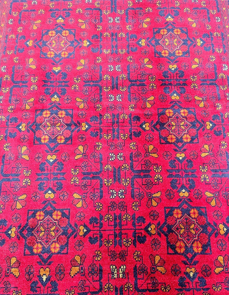 Gorgeous Coffee Table to Room Size Authentic Handmade Afghan Kunduz Rug. Above All It Has A Pure Hand Spun Wool Pile On Fine Cotton Base. It Also Has A Beautiful Maroon/Burnt Terracotta Tone Dyed Using Traditional Methods.