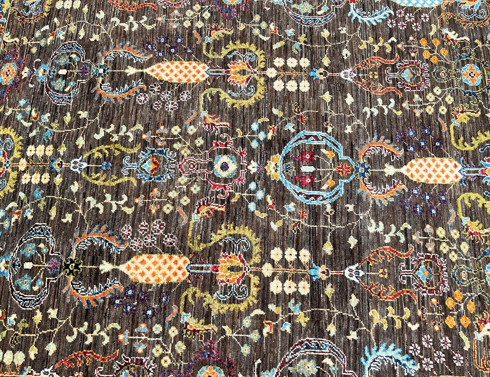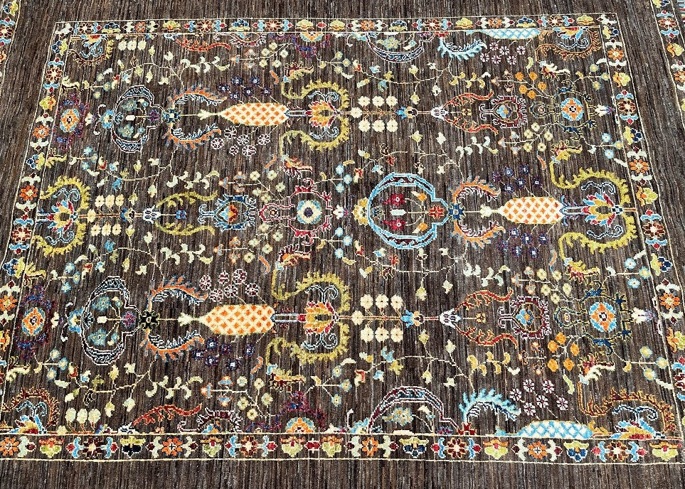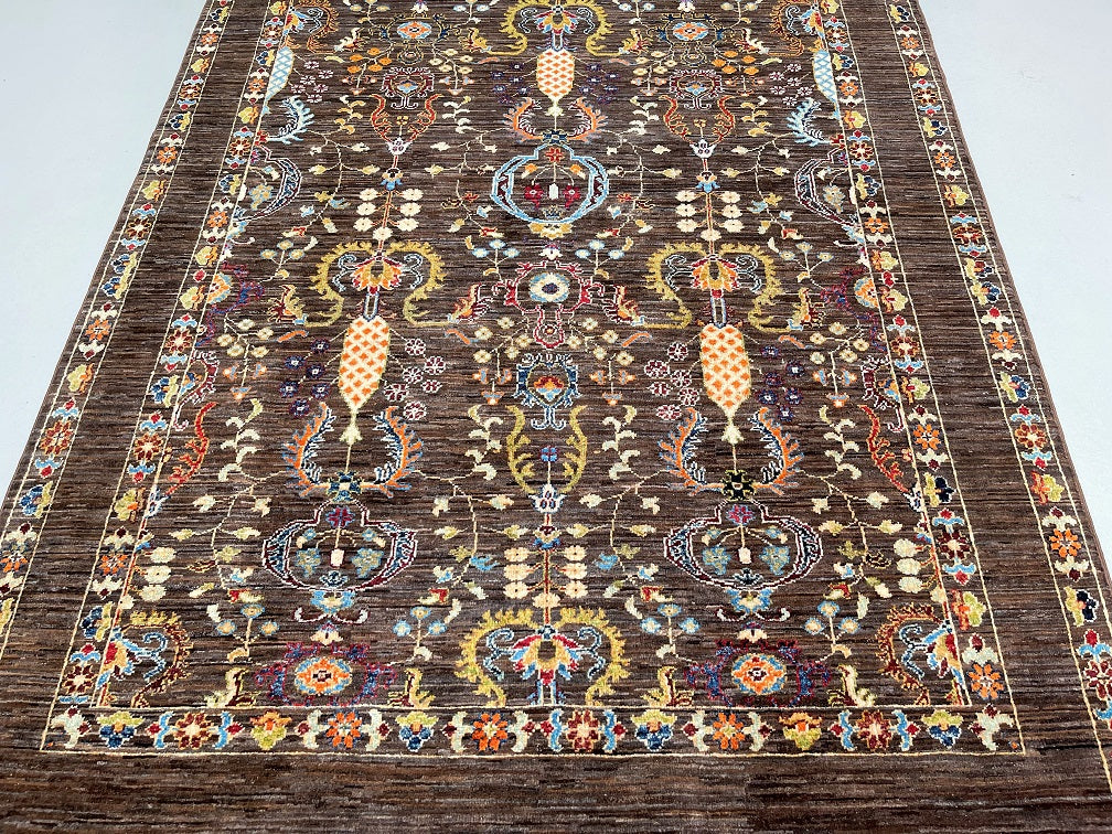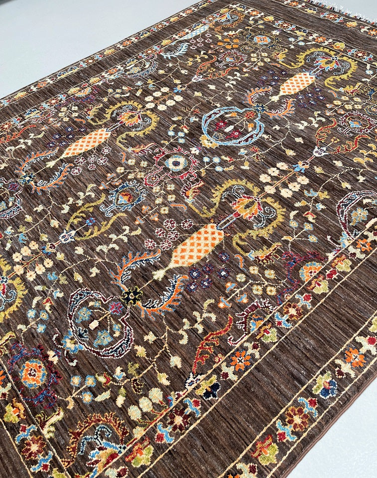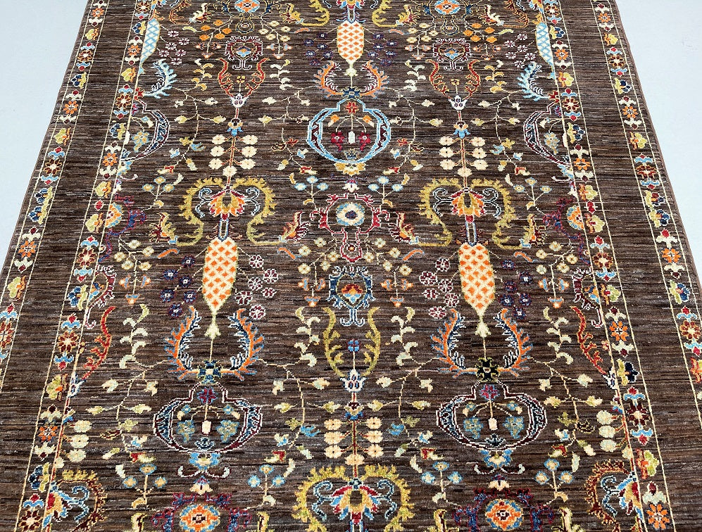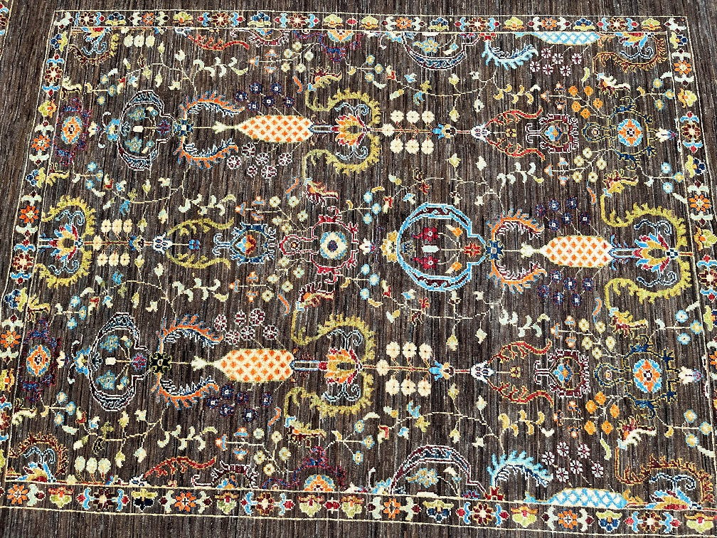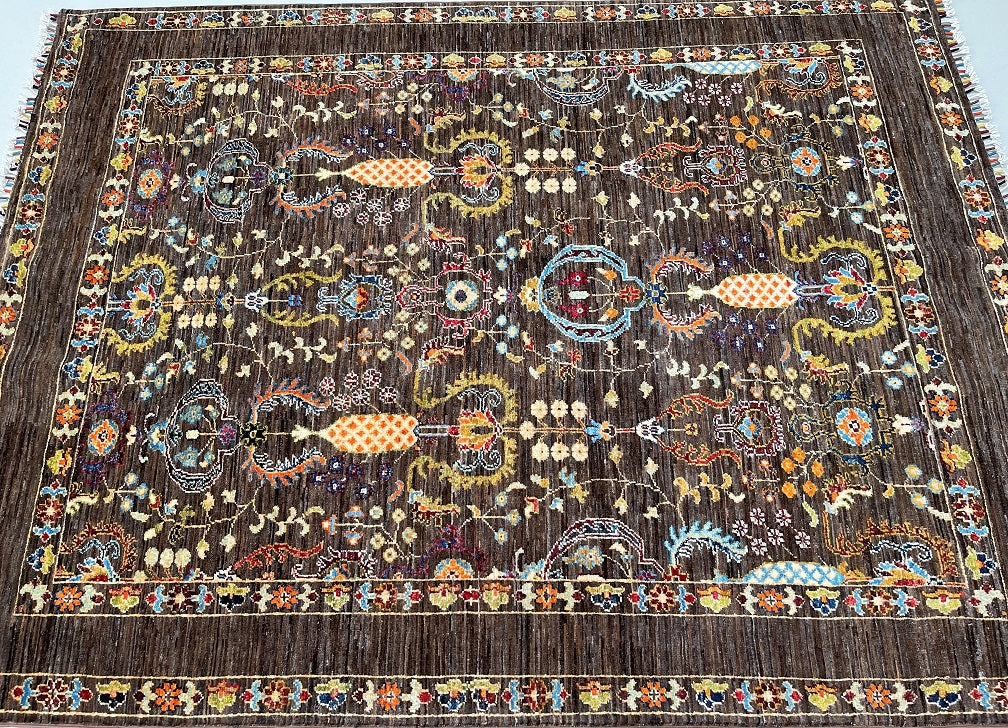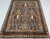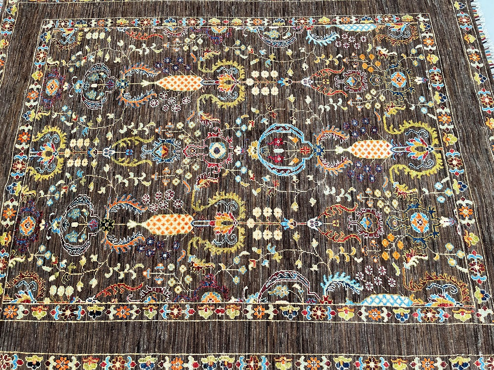 Decorative Coffee Table Size To room Size Hand Knotted Afghan Chobi Rug. Above All It Is Pure Hand Spun Wool Pile On Cotton Base. Gorgeous Chocolate Brown, Beige, Burnt Orange, Blue And Yellow Tone Dyed Using Traditional Methods (Vegetable Dyes). Last Of True Woven Nomadic Art.
