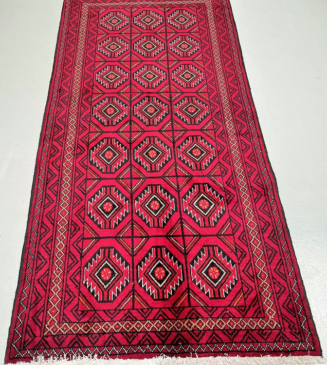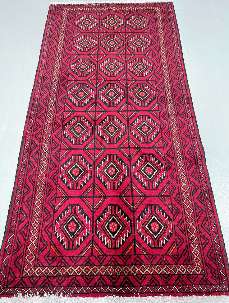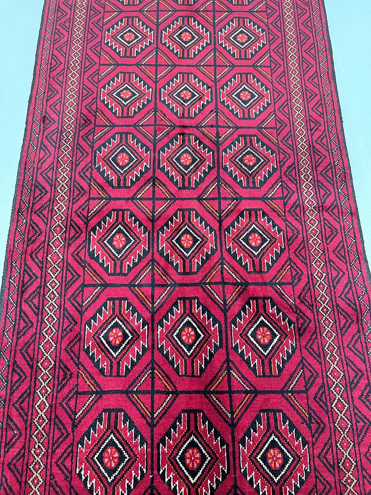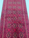 Collectable Coffee Table Size Authentic Handmade Persian Balouchi Rug Which Also Can Be Used As A Runner. It Has A Pure Hand Spun Wool Pile On Cotton Base. Maroon Red, Beige, Orange And Black Tone Dyed Using Traditional Methods.