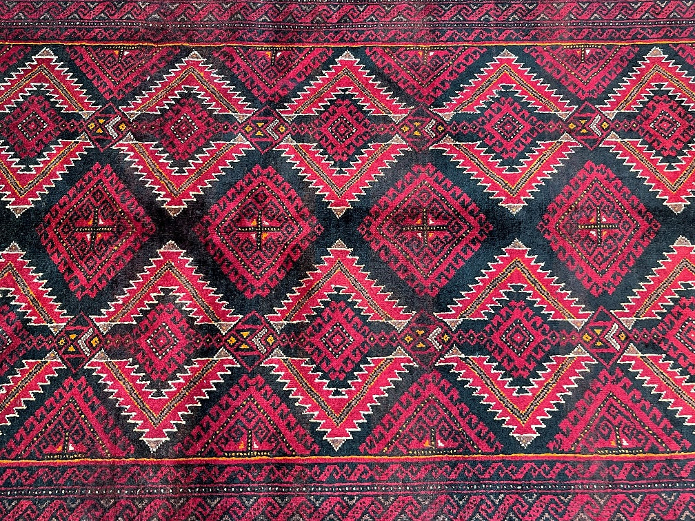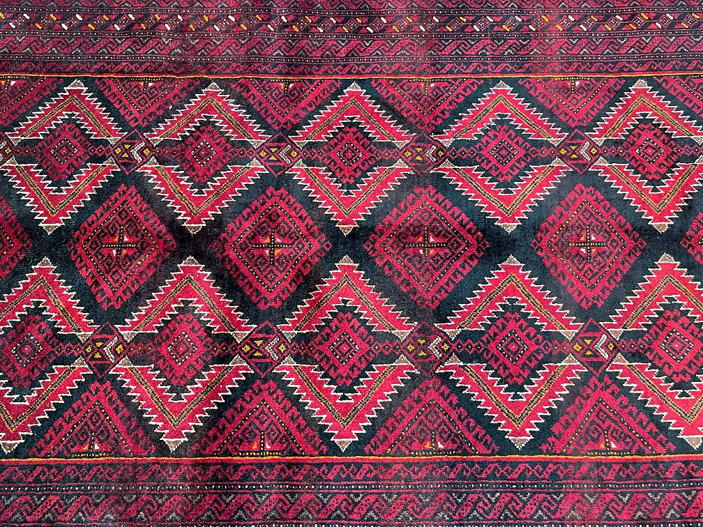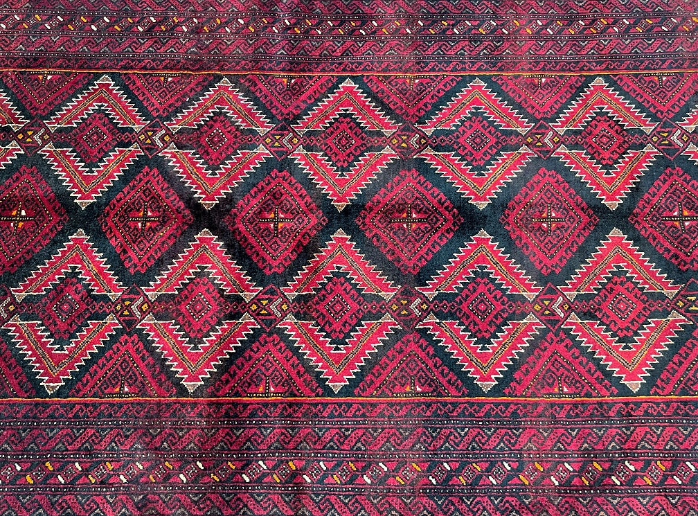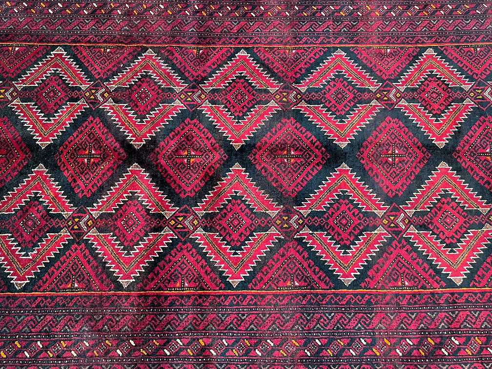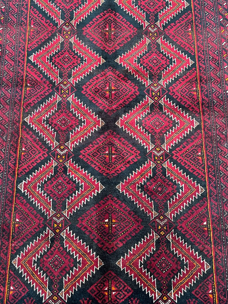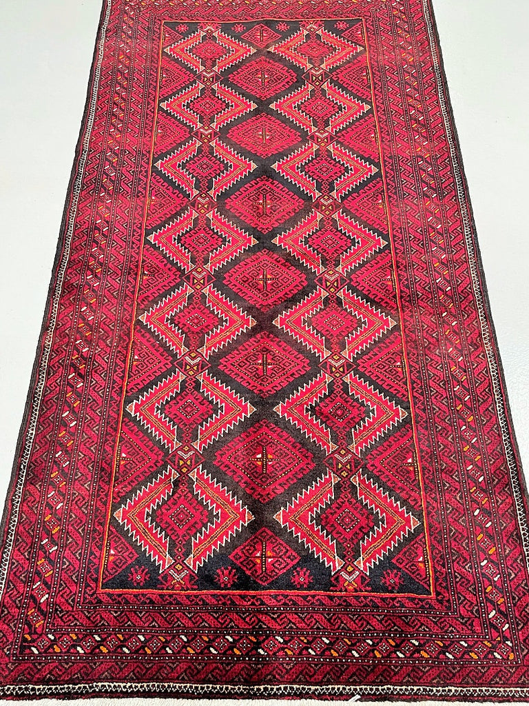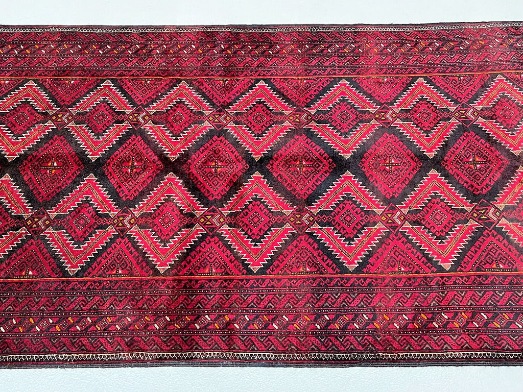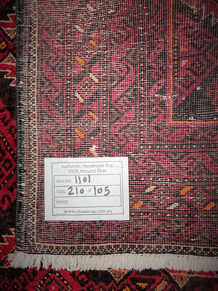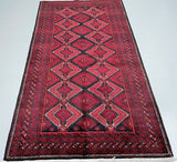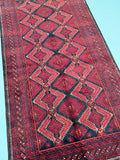 Collectable Coffee Table Size Authentic Handmade Persian Balouchi Rug Which Also Can Be Used As A Runner. It Has A Pure Hand Spun Wool Pile On Cotton Base. Maroon Red, Beige, Orange And Black Tone Dyed Using Traditional Methods.
