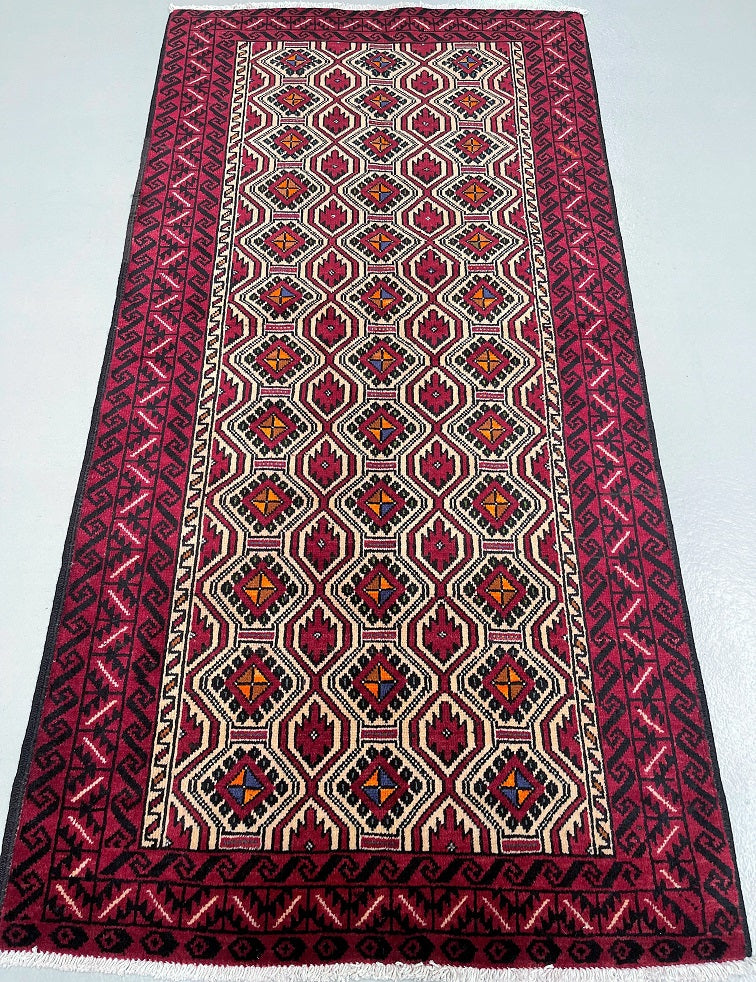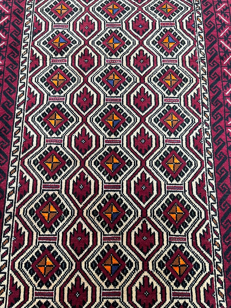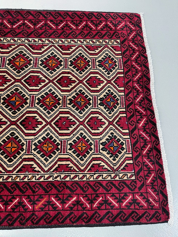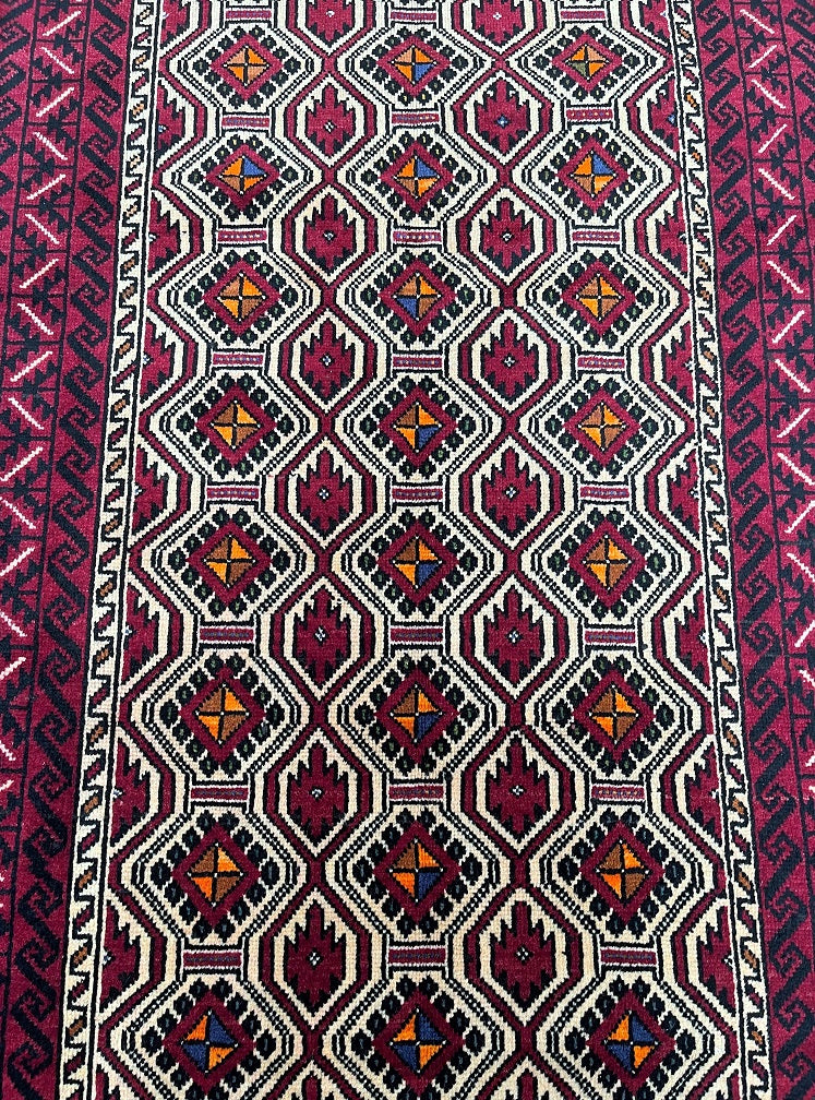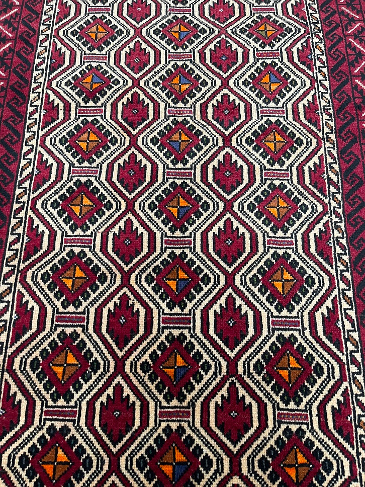 Coffee Table Size Genuine Handmade Balouchi Rug Which Also Can Be Used As A Runner. It Has A Pure Hand Spun Wool Pile On Wool Base. Beige, Black, Red, Blue, Green And Orange Tone Dyed Using Traditional Methods.