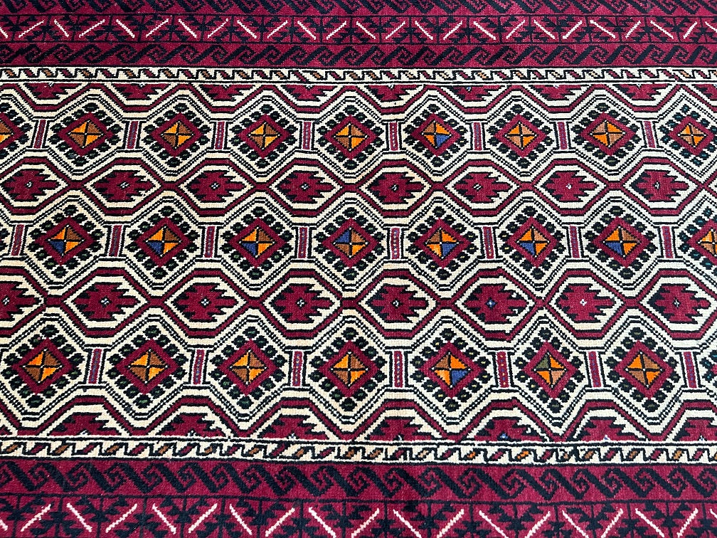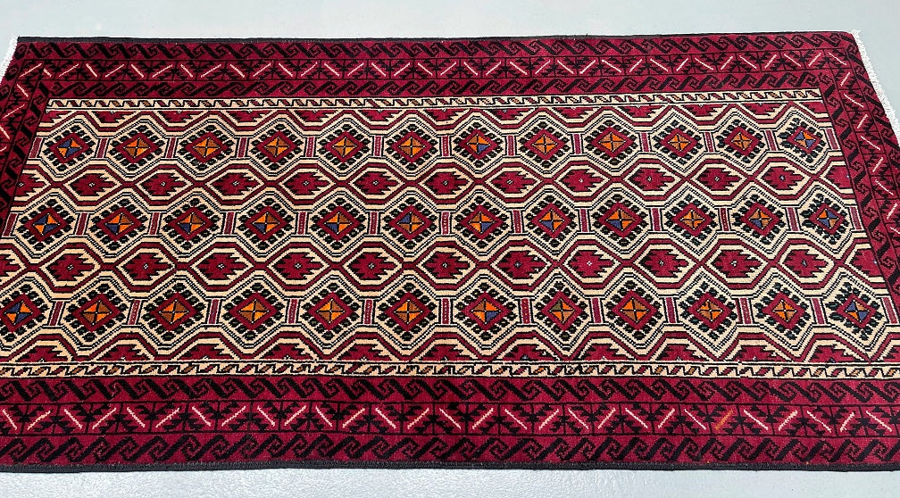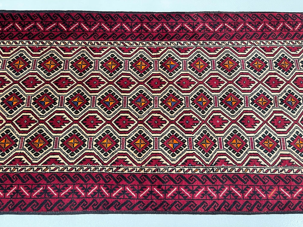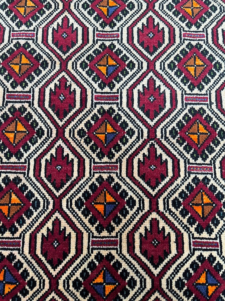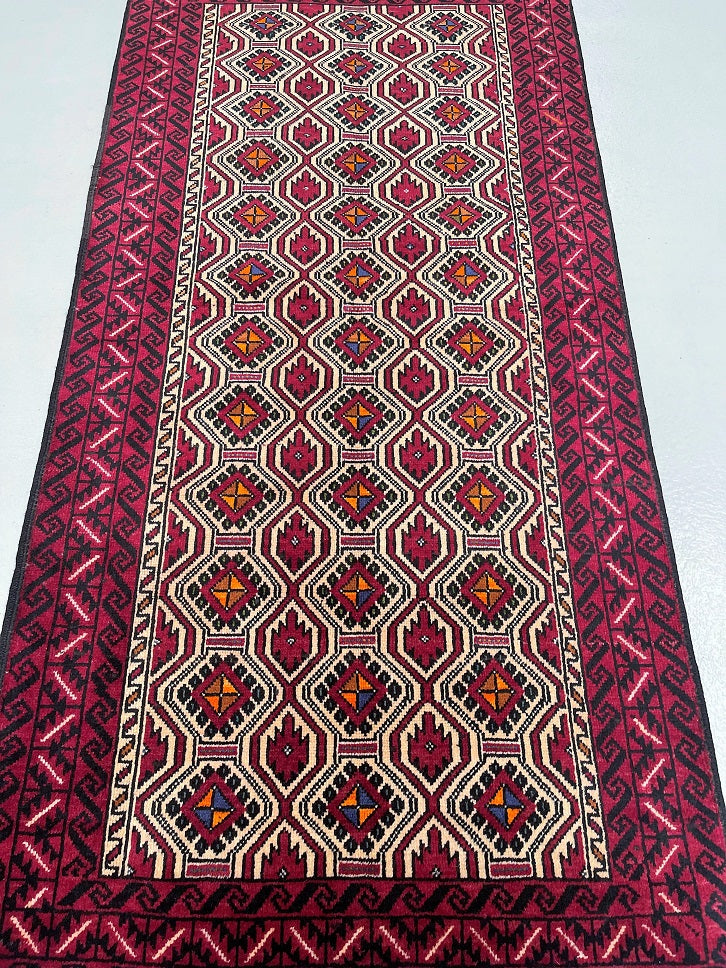 Coffee Table Size Genuine Handmade Balouchi Rug Which Also Can Be Used As A Runner. It Has A Pure Hand Spun Wool Pile On Wool Base. Beige, Black, Red, Blue, Green And Orange Tone Dyed Using Traditional Methods.