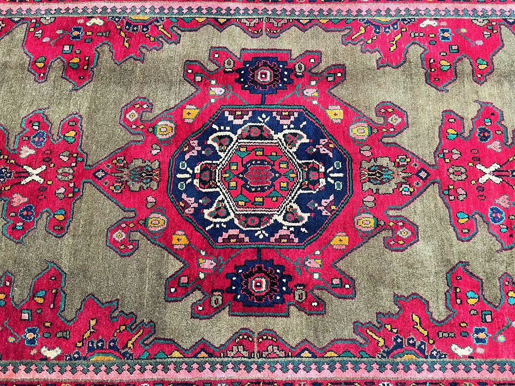 Collectible Full Room Size Authentic Handmade Kurdish Koliai Rug. Above All It Is Hard To Find Hand Made Rugs From Kurdistan Region. Pure Hand Spun Wool Pile On Cotton Base. Tan/Brown, Indigo Blue, Yellow, Pink And Red Tone Dyed Using Traditional Methods.