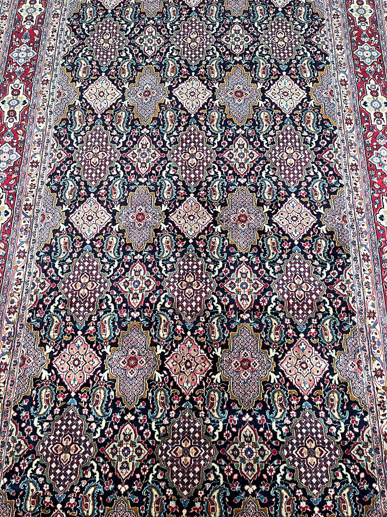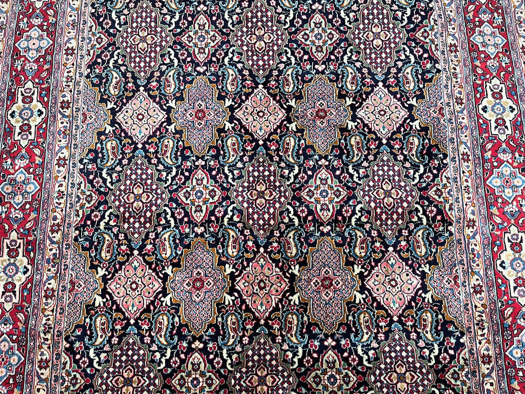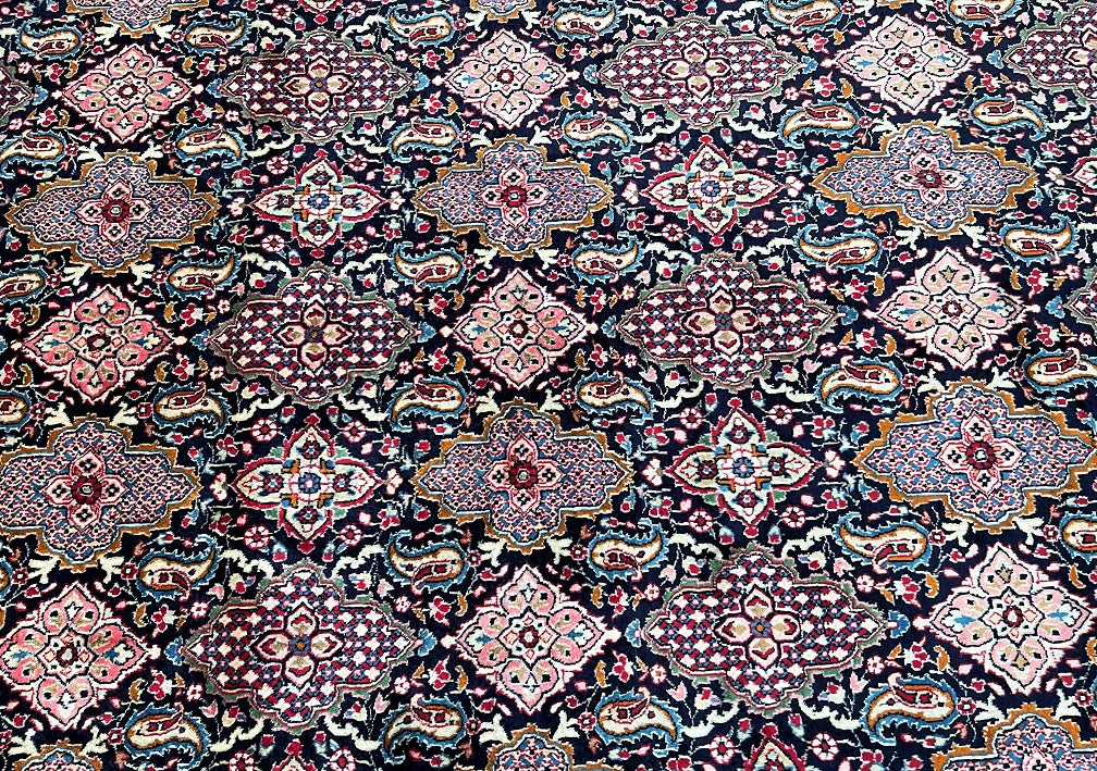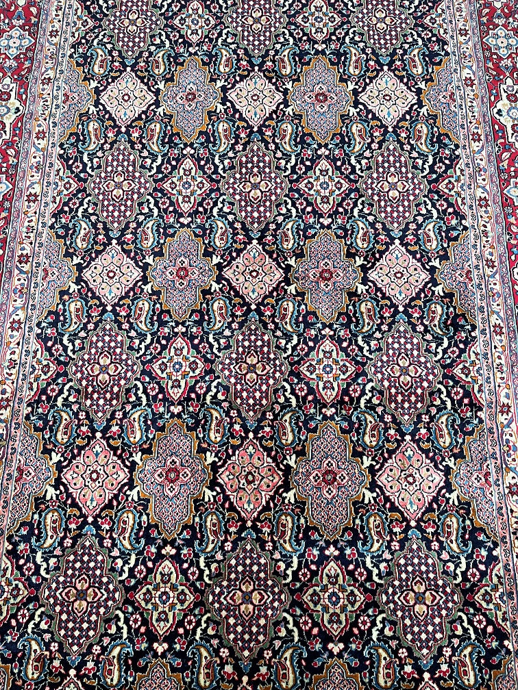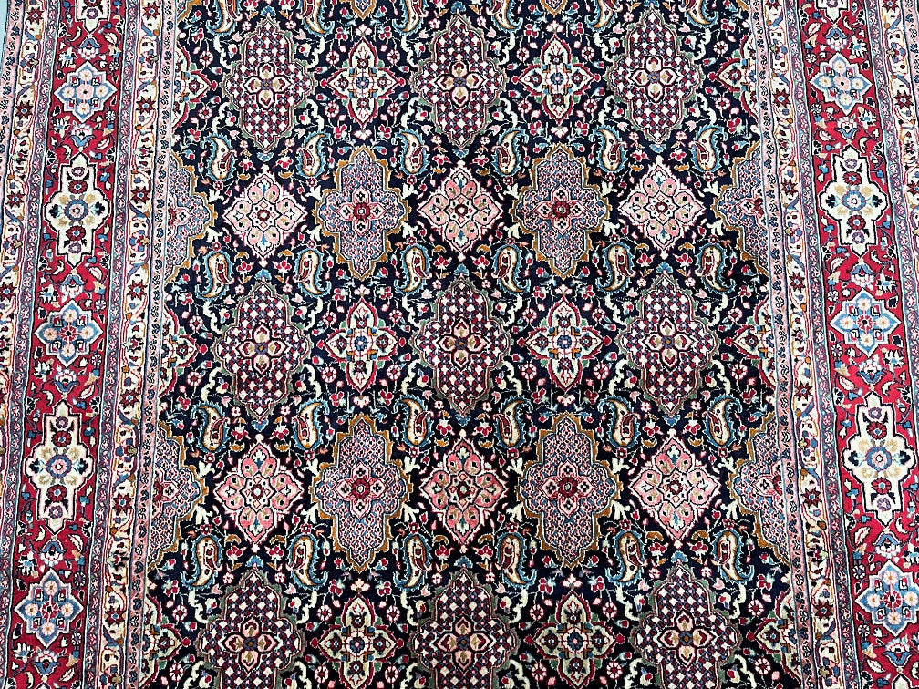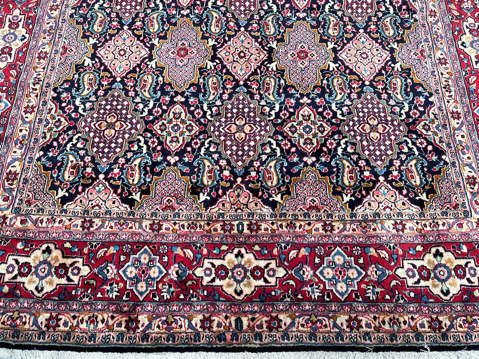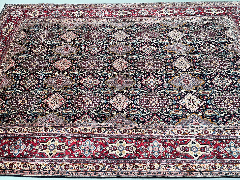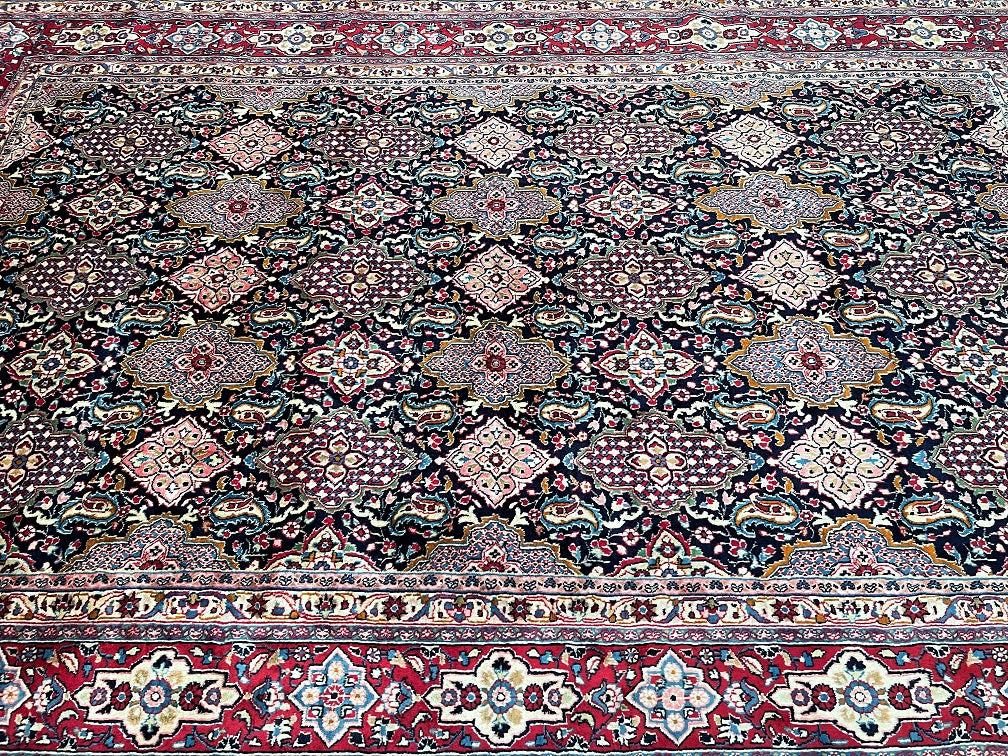 Large Room Size Authentic Handmade Persian Mahal Rug. Above All It Is Hard To Get This Quality Hand Made Rug From This Region. It Also Has Pure Lamb’s Wool Pile On Cotton Base. Indigo Blue, Beige, Red, Pink, Light Blue And Green Tone Dyed Using Traditional Methods. Fine Quality Piece That Would Last You a Life Time.