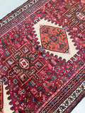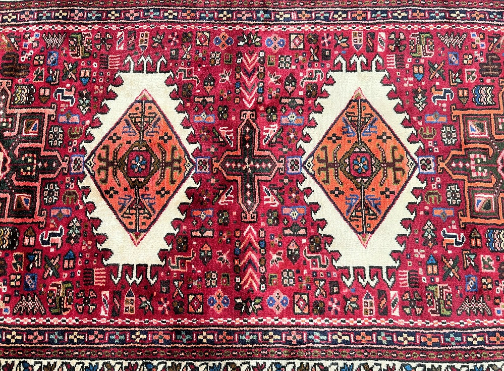 Decorative Authentic Handmade Persian Qarajeh Wide Hall Runner. Above Has A Pure Hand Spun Wool Pile On Cotton Base. Red, Indigo Blue/Black, Brown, Orange, Pink, Beige, Light Blue With Touch Of Green Tone Dyed Using Traditional Methods.