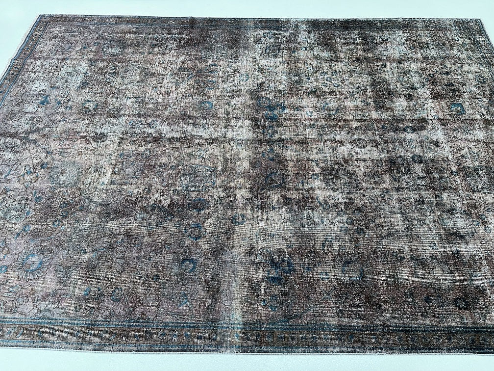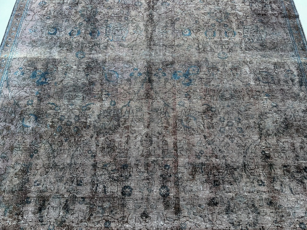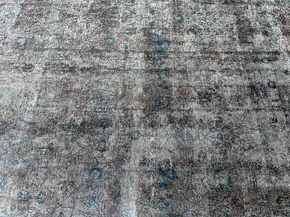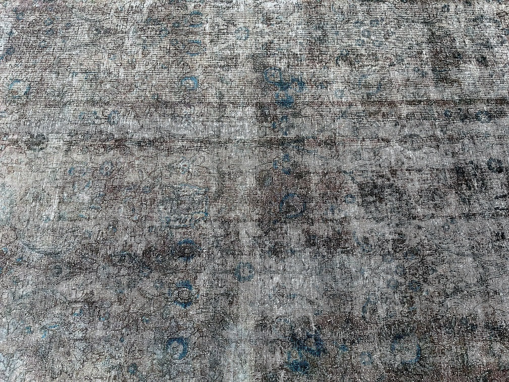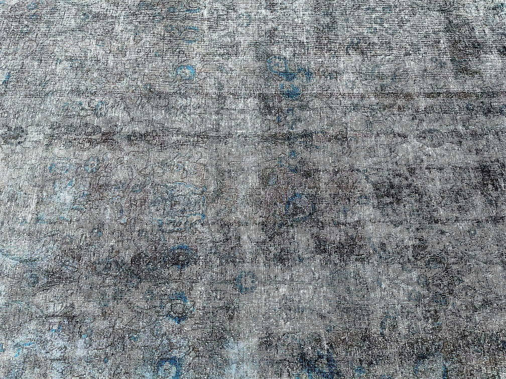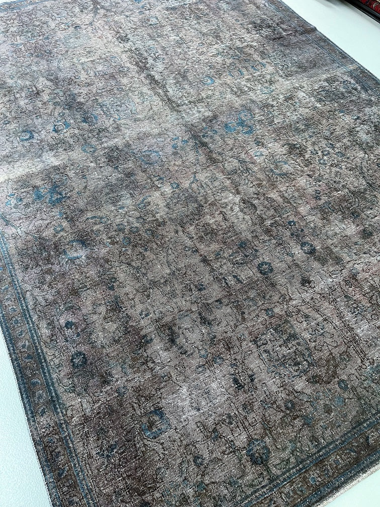 Unique Vintage Handmade Over Dyed Persian Tabriz Rug Which Is Very Popular With Post Modern Décor. Above All This Rug Is Made From A Vintage Rug Which Goes Through Colour Neutralization And Then Dyed With New Colours. Pure Wool Pile On Cotton Base. It Also Has A Charcoal, Grey With Hint Of Indigo Blue Tone Dyed Using Traditional Methods.