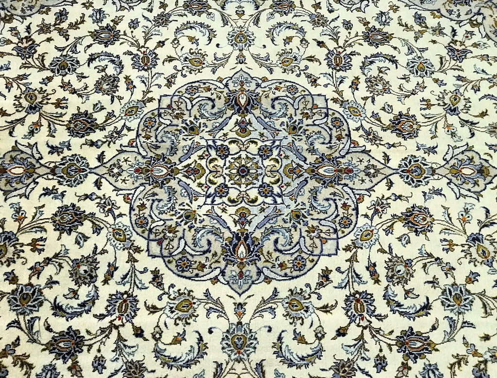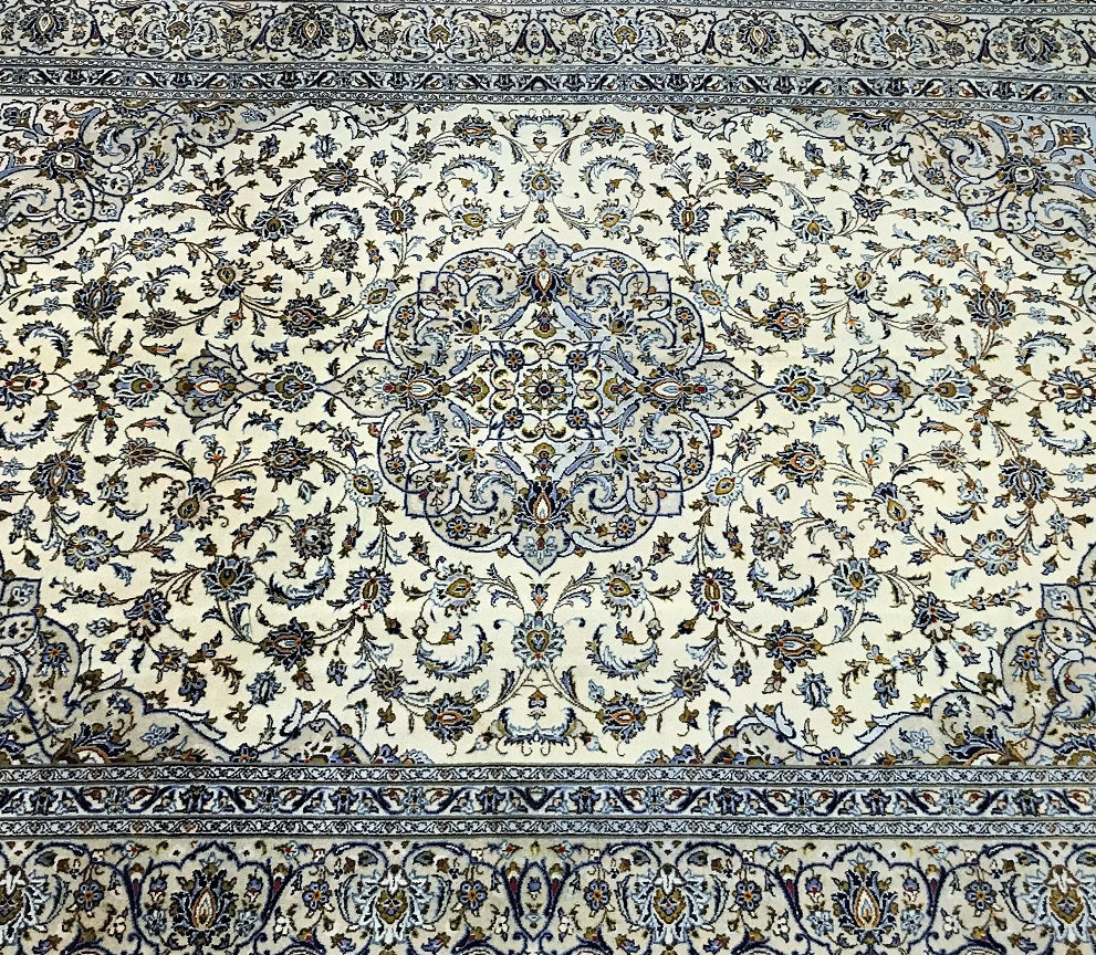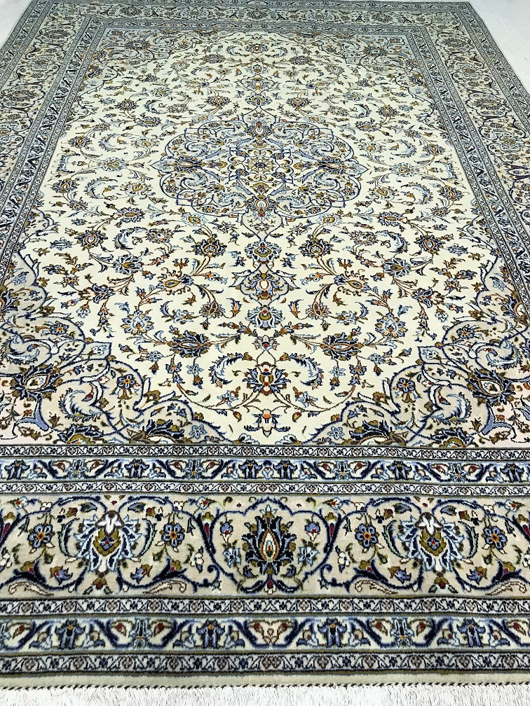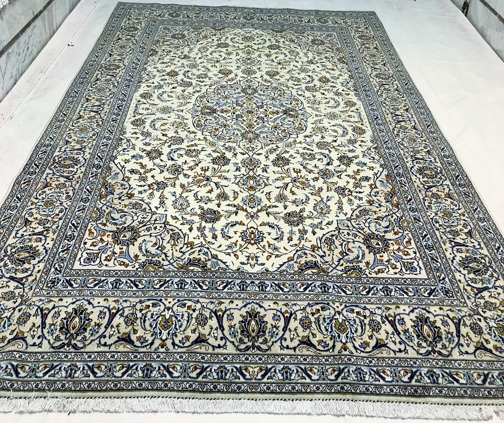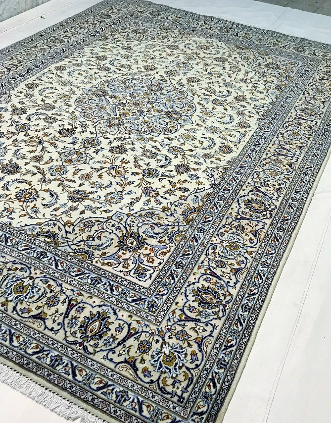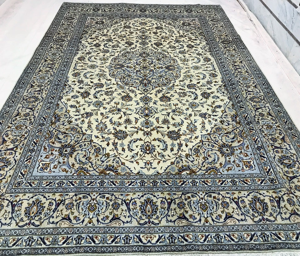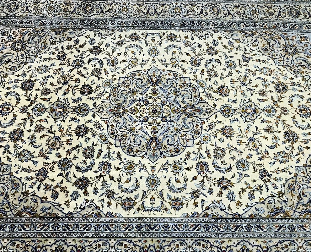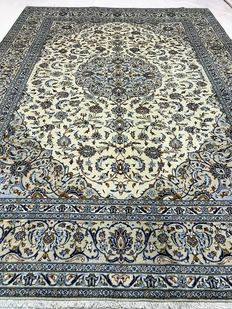 Large Room Size Authentic Handmade Persian Kashan Carpet. Above All It Has A Pure Lamb’s Wool Pile On Cotton Base. Beige, Blue, Green And Light Brown Tone Dyed Using Traditional Methods.
