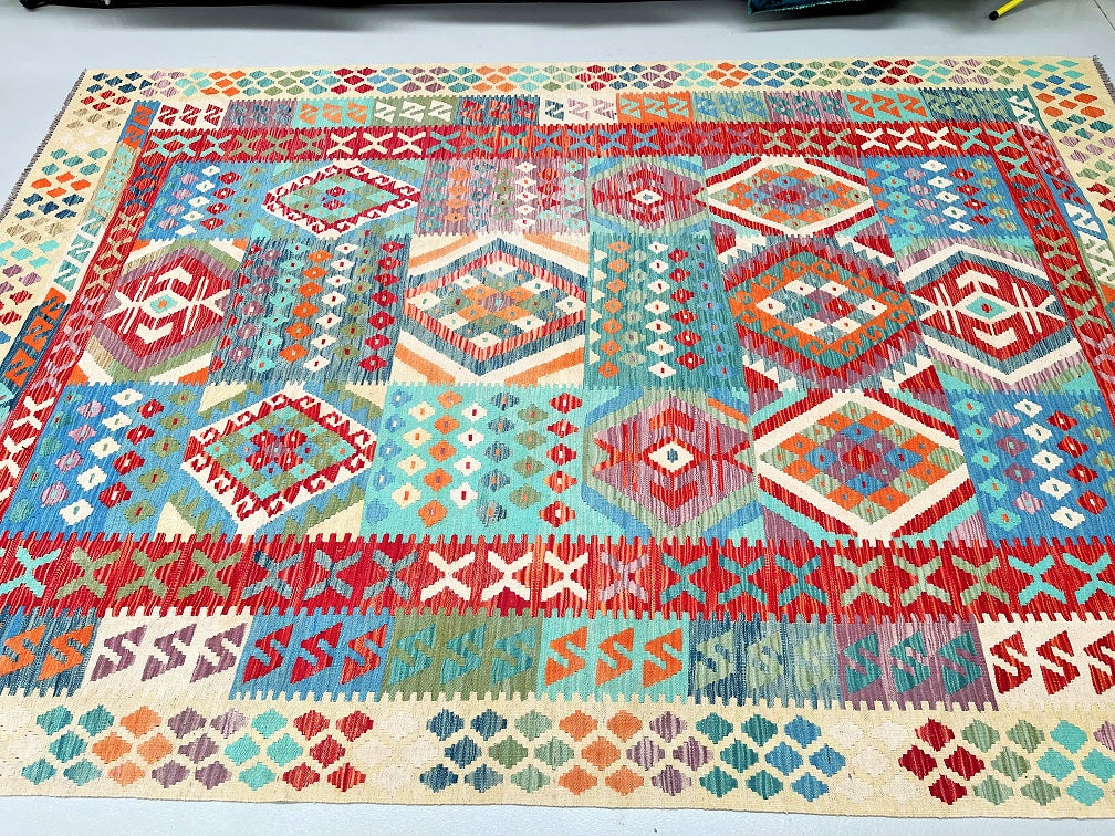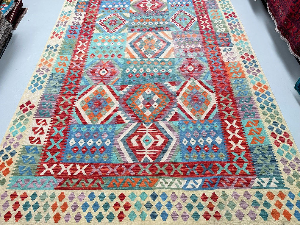 Certified Hand Woven Afghan Kilim Rug 342x237cm