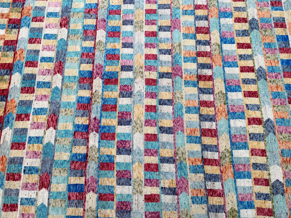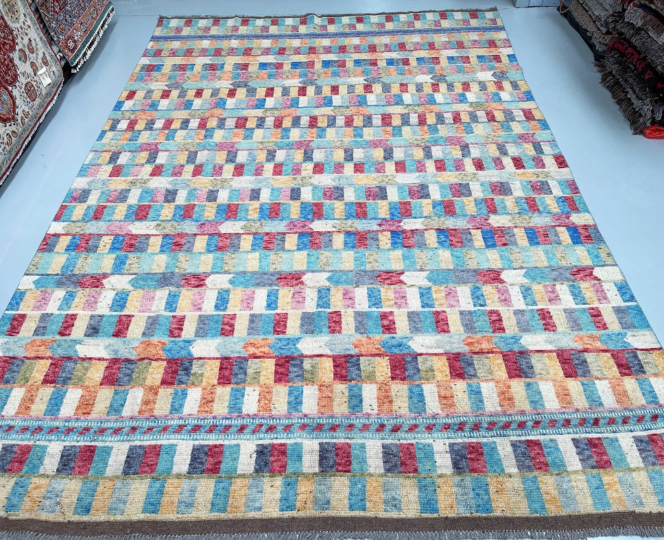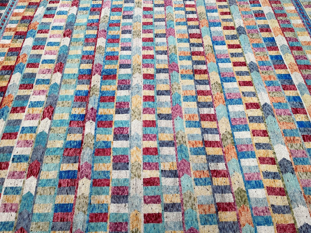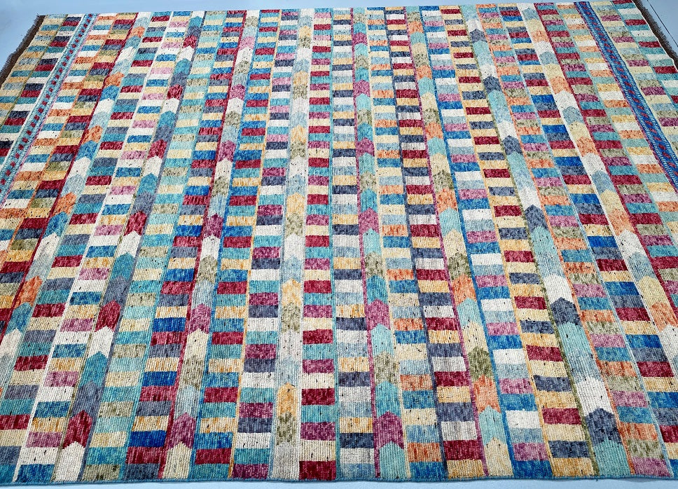 Large Room Size Boho Hand Knotted Afghan Gabbeh Rug. Above All It Has A Thick Wool Pile On Wool Base. Multi-Color Tones Dyed Using Traditional Methods. Last of True Woven Nomadic Art.
