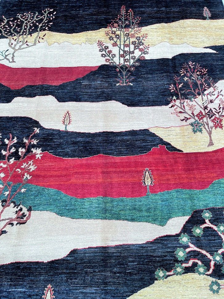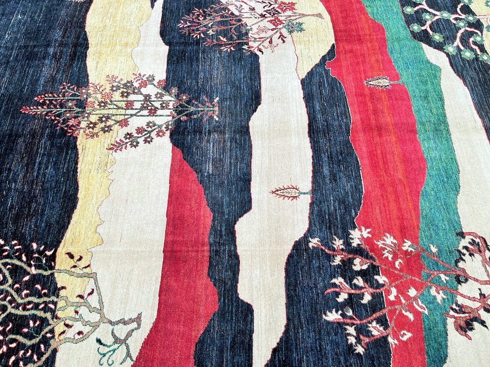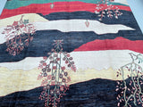 Large Room Size Authentic Hand Knotted Afghan Chobi Rug. Above All It Is Pure Hand Spun Wool Pile On Cotton Base. Beige, Charcoal, Red, Green And Yellow Tone Dyed Using Vegetable Roots (Vegetable Dyes). Last of True Woven Nomadic Art.