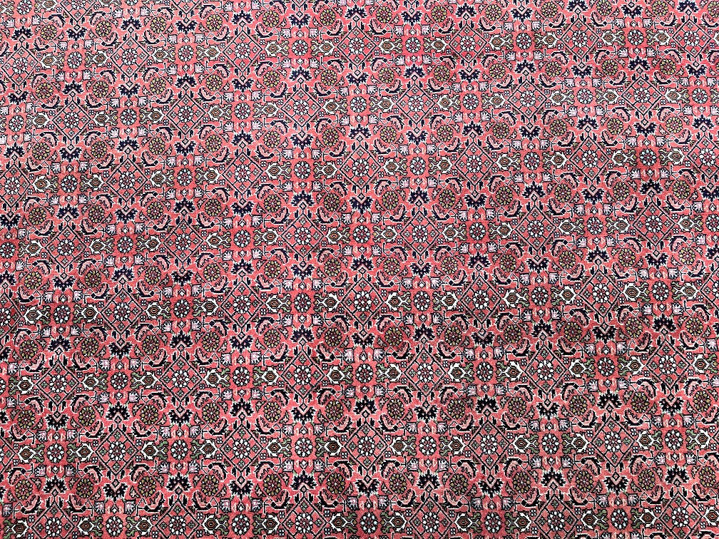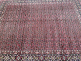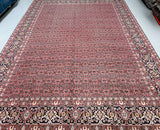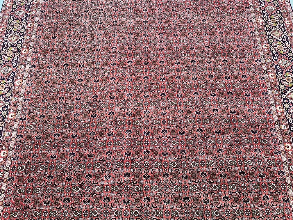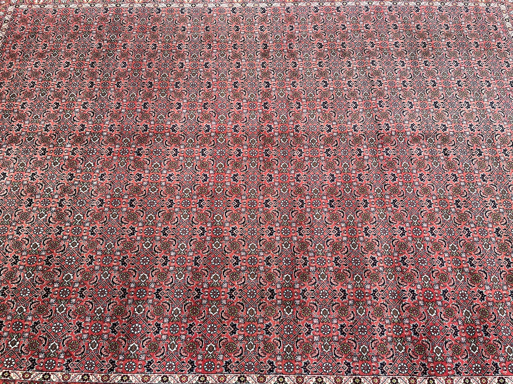 Stunning Large Room Size Authentic Handmade Persian Bijar Rug Renown to Be The Iron Carpet Of Persian Rugs. Above All It Is Hard To Find This Quality Handmade In Larger Sizes. It Also Has a Pure Lamb’s Wool Pile on Fine Cotton. Pinkish Red, Beige, Green, Light Blue And Black Tone Dyed Using Traditional Methods.