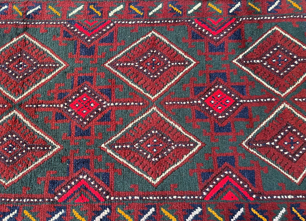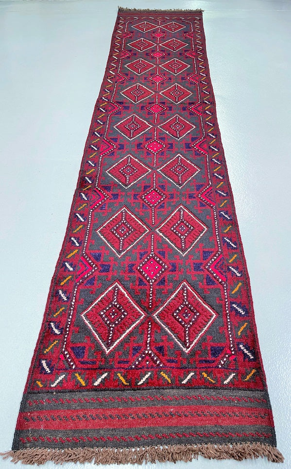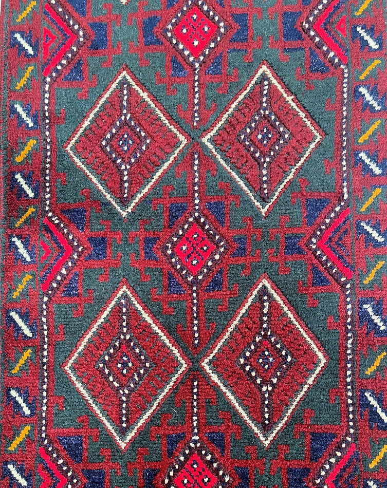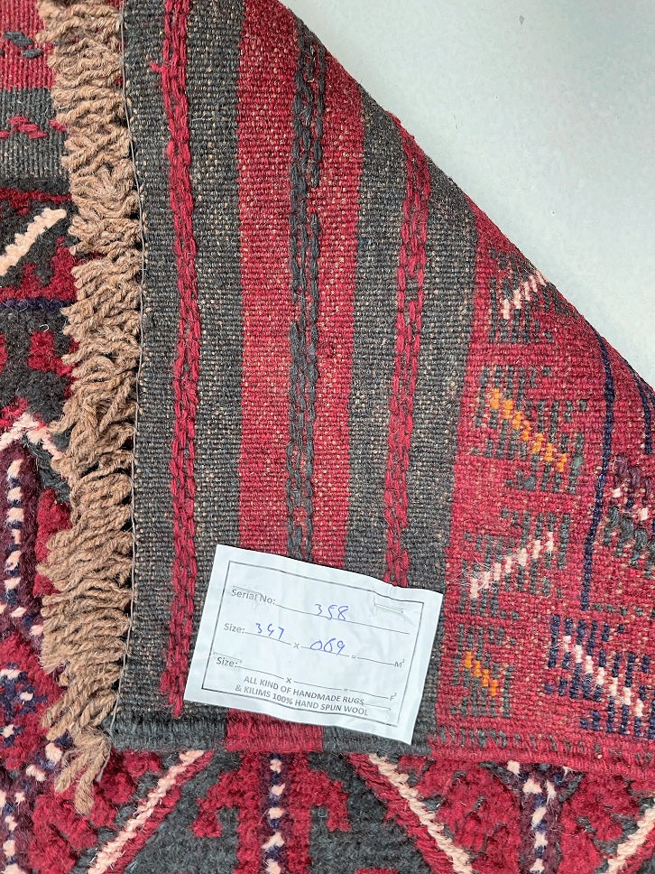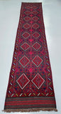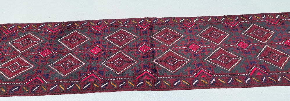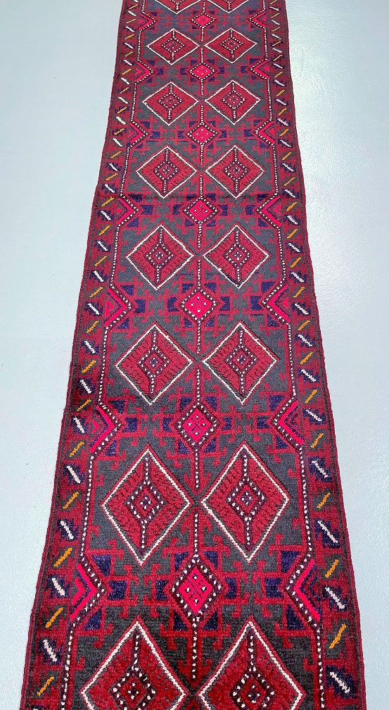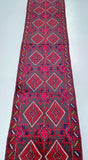 Hand Woven Afghan Mishwani Balouchi Hall Runner. Above All Three Weaving Technique Used To Make This Runner. It also Has A Pure Hand Spun Wool Pile On Wool Base. Red, Green, Yellow, Beige And Blue Tone Dyed Using Traditional Methods.