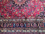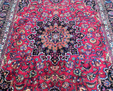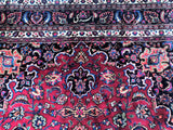 Large Room Size Authentic Handmade Vintage Persian Mashad Carpet Signed. Above All It Is Hard To Get This Quality Hand Made Rug In Larger Sizes Which Are Also Signed. Pure Lamb’s Wool Pile On Cotton Base. Rare Deep Maroon/Burgundy Tone With Hint Of Purple Dyed Using Traditional Methods. Signed From Weaving House Of "Asadi”.