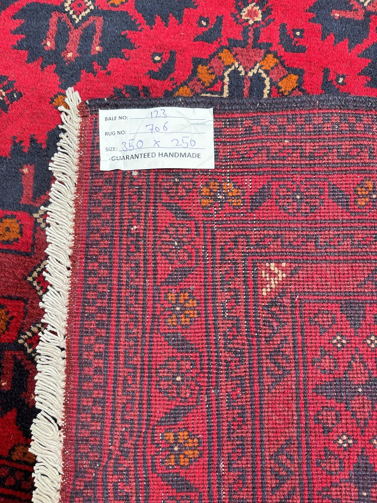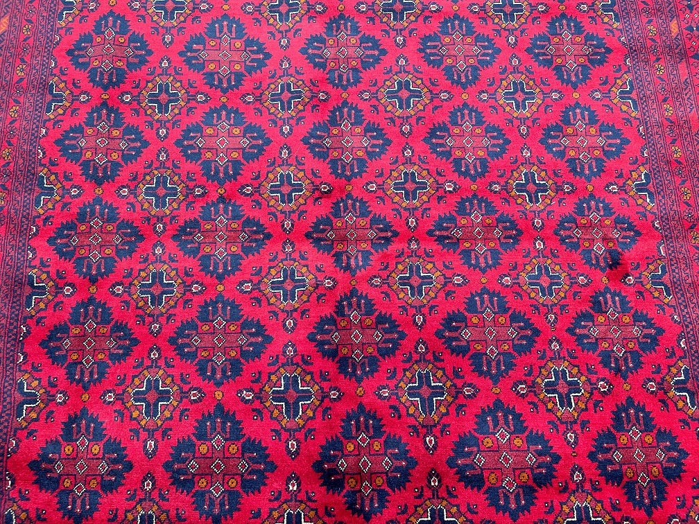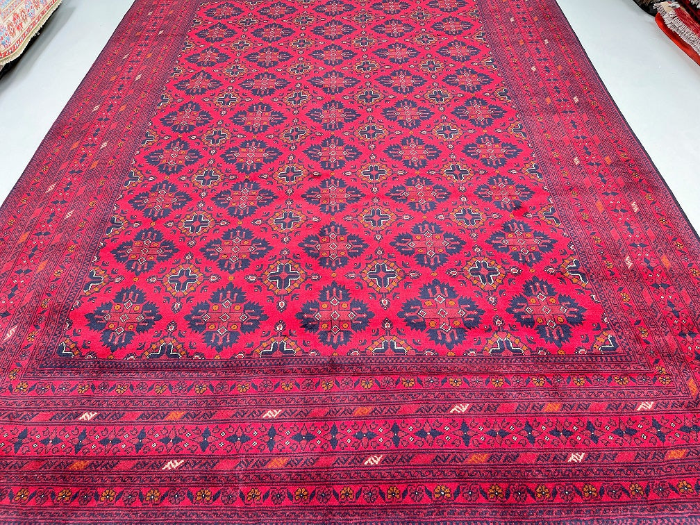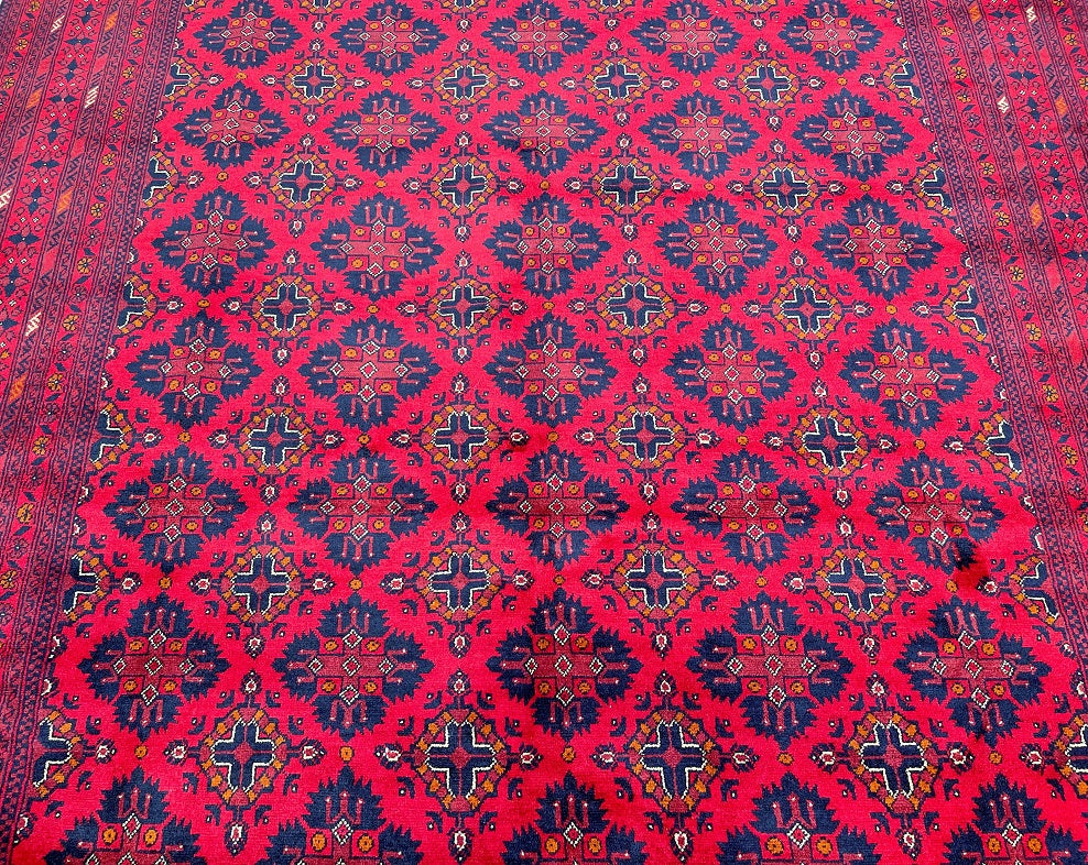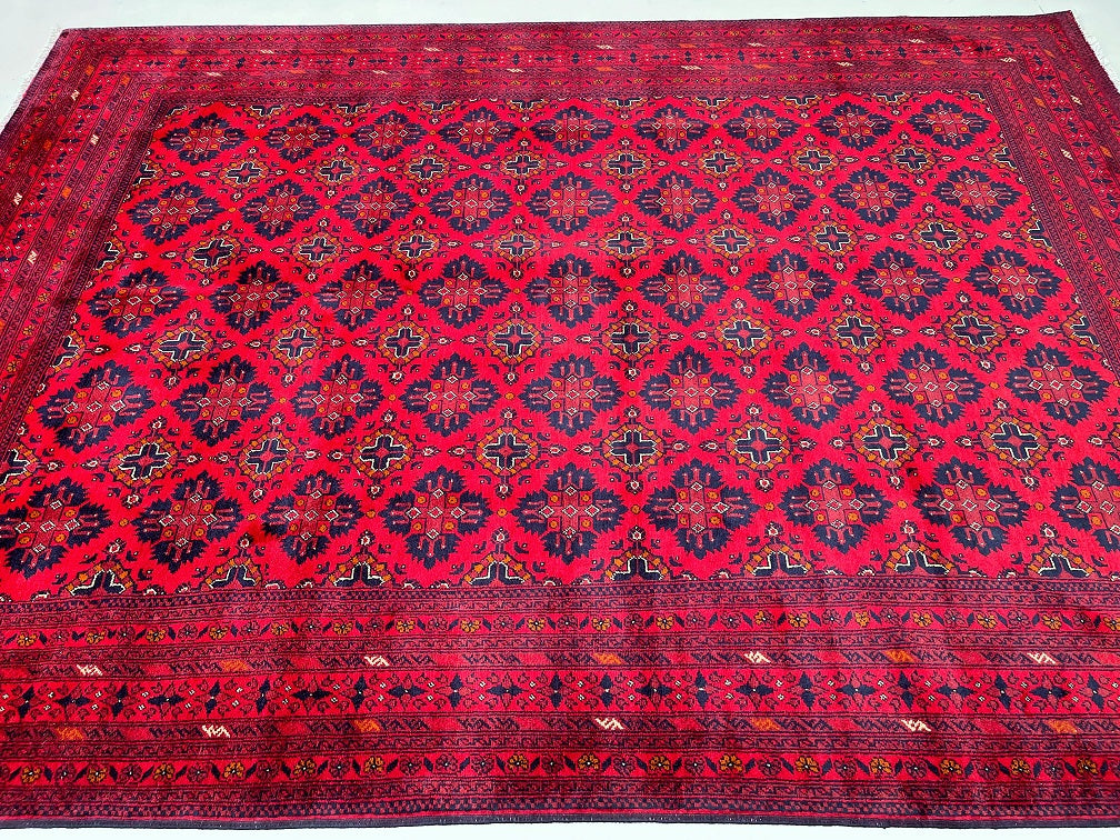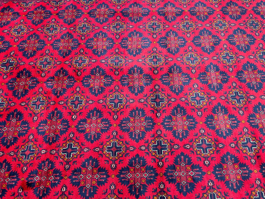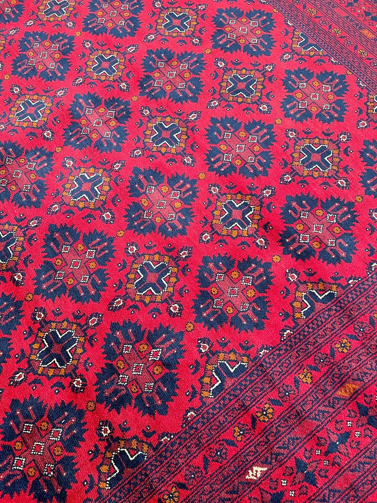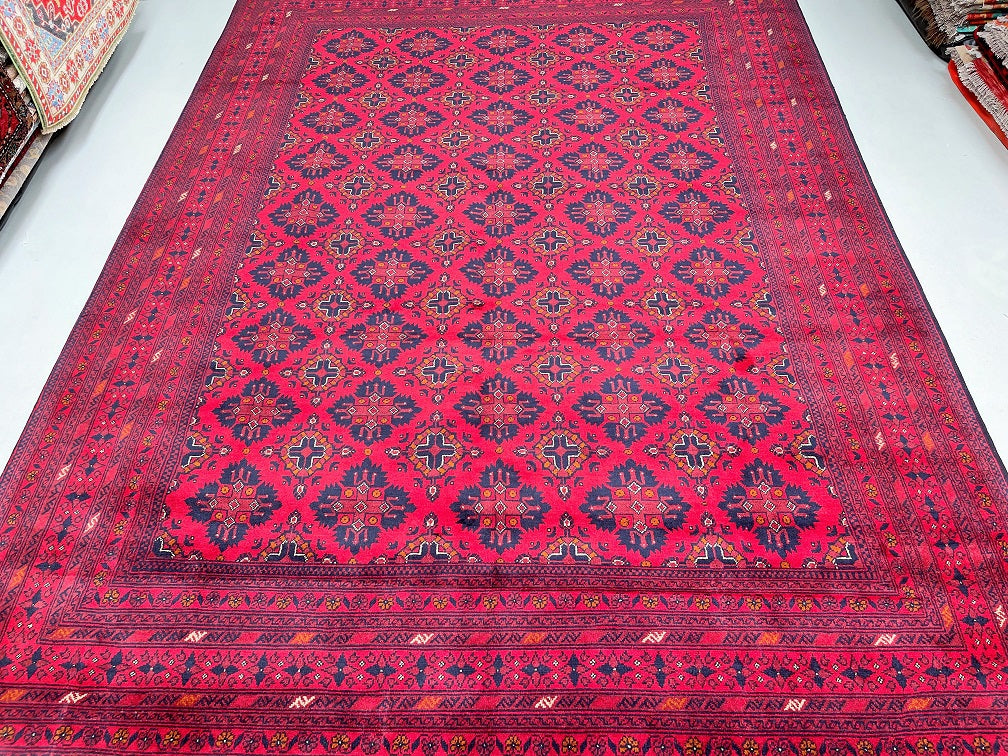 Fine Quality Large Room Size Authentic Handmade Afghan Kunduz Rug. Above All It Has A Pure Hand Spun Wool Pile On Wool Base. It Also Has A Deep Burgundy/Burnt Terracotta Tone Dyed Using Traditional Methods.
