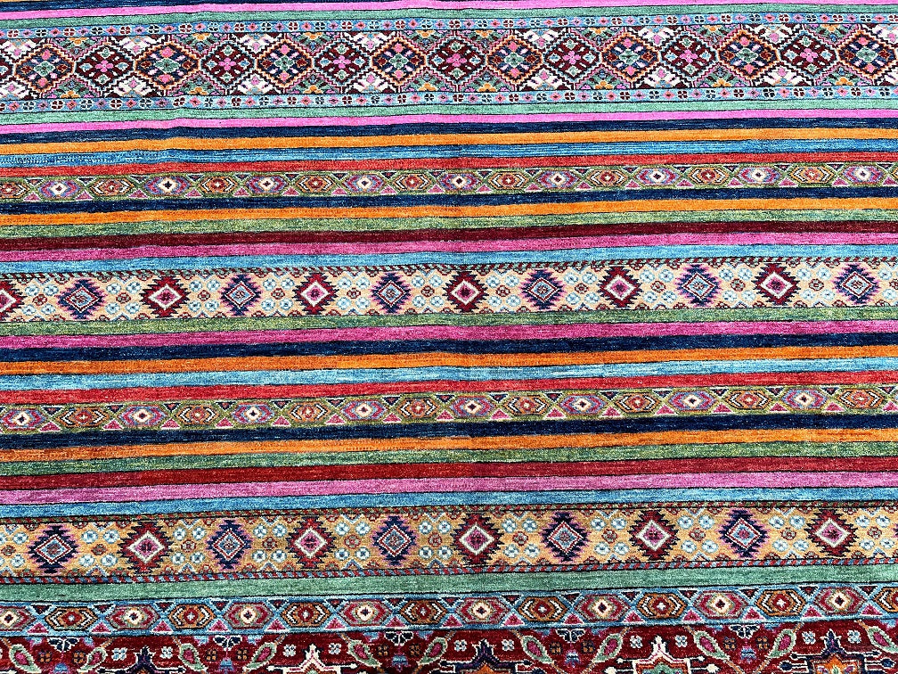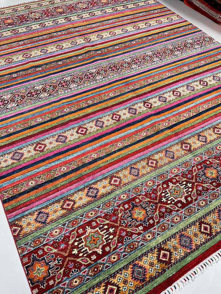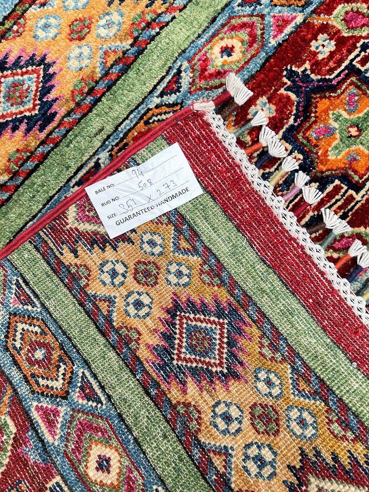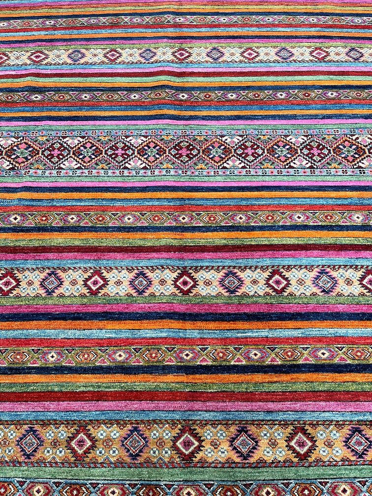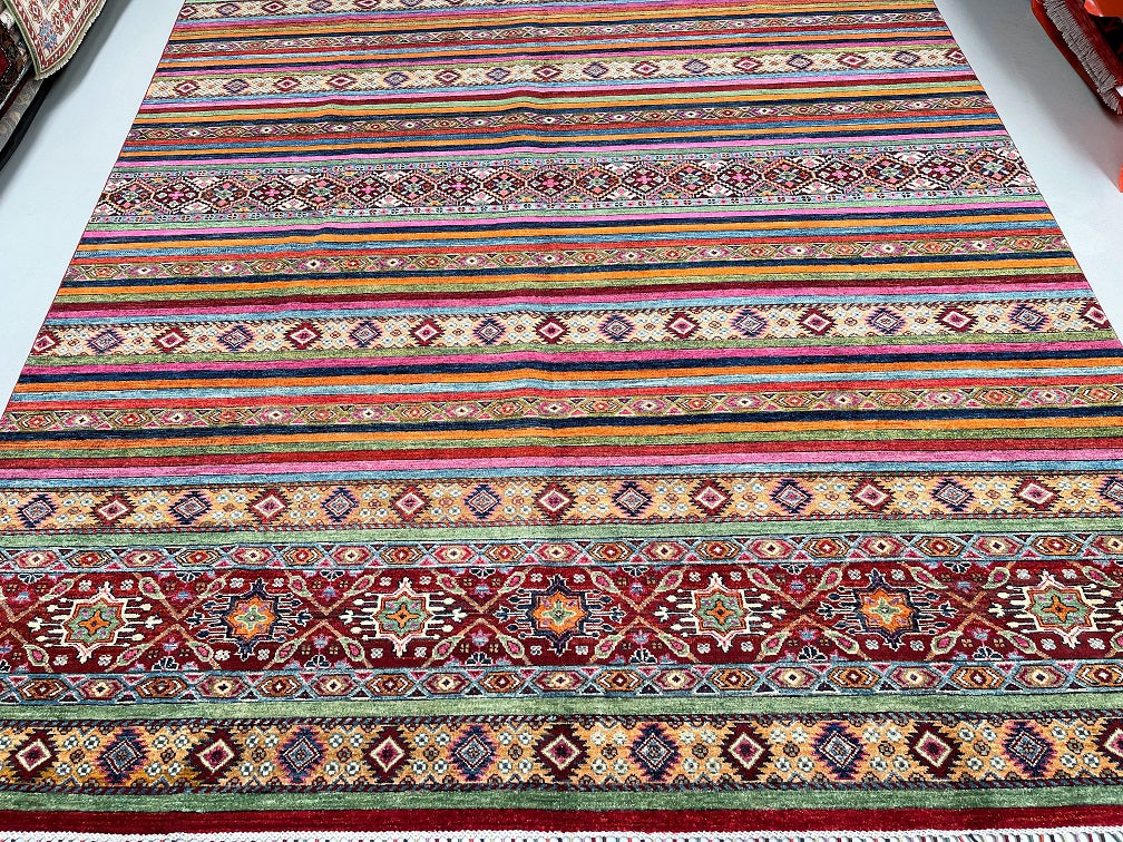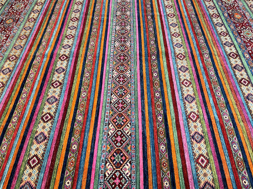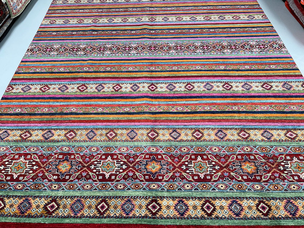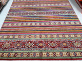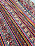 Gorgeous Large Room Size Shawl Design Authentic Hand Knotted Super Kazak Rug. Above All It Is Pure Hand Spun Wool Pile On Cotton Base. Decorative Multi-Color Tone Dyed Using Traditional Methods (Vegetable Dyes). Last Of True Woven Nomadic Art.