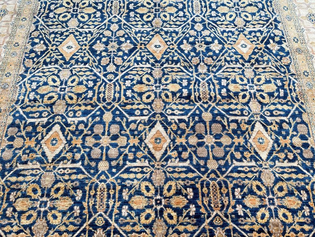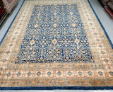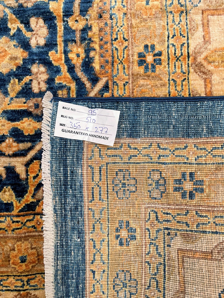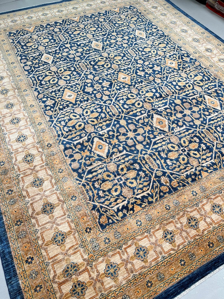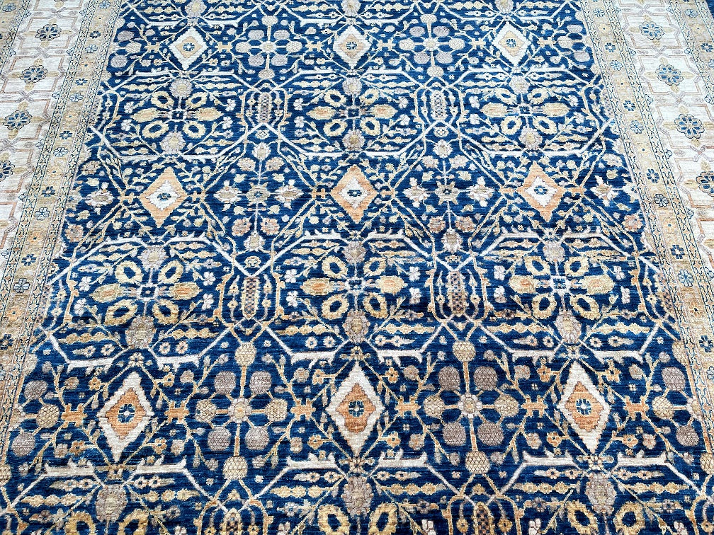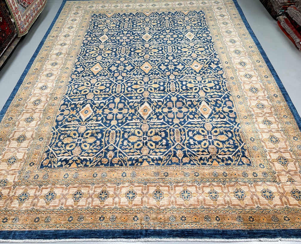 Decorative Large Room Size Authentic Hand Knotted Afghan Chobi Rug. Above All It Has A Pure Wool Pile On Cotton Base. Unique Blue, Beige And Gold Tone Dyed Using Traditional Methods (Vegetable Dyes). Last of True Woven Nomadic Art.
