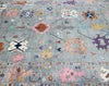 Large Room Size Ushak Inspired Design Hand Knotted Chobi Rug. Above All It Is Pure Hand Spun Wool Pile On Cotton Base. Light Grey, Beige, Blue, Soft Orange, Pink And Purple Tone Dyed Using Traditional Methods (Vegetable Dyes). Last of True Woven Nomadic Art.