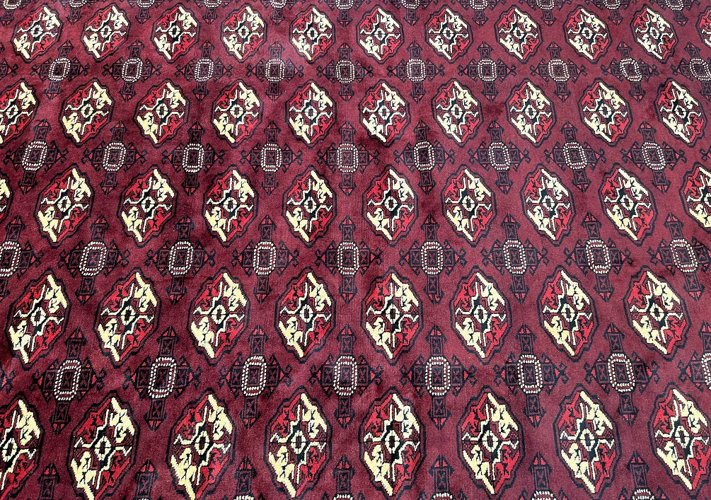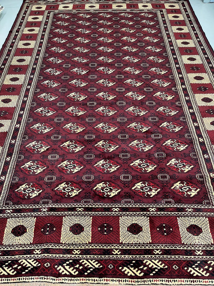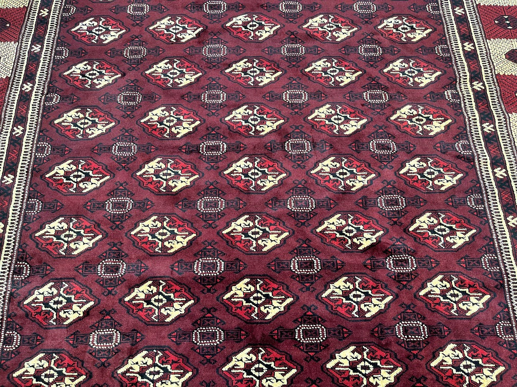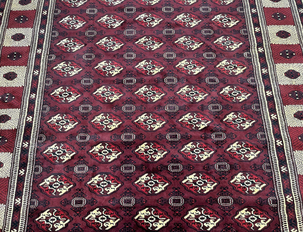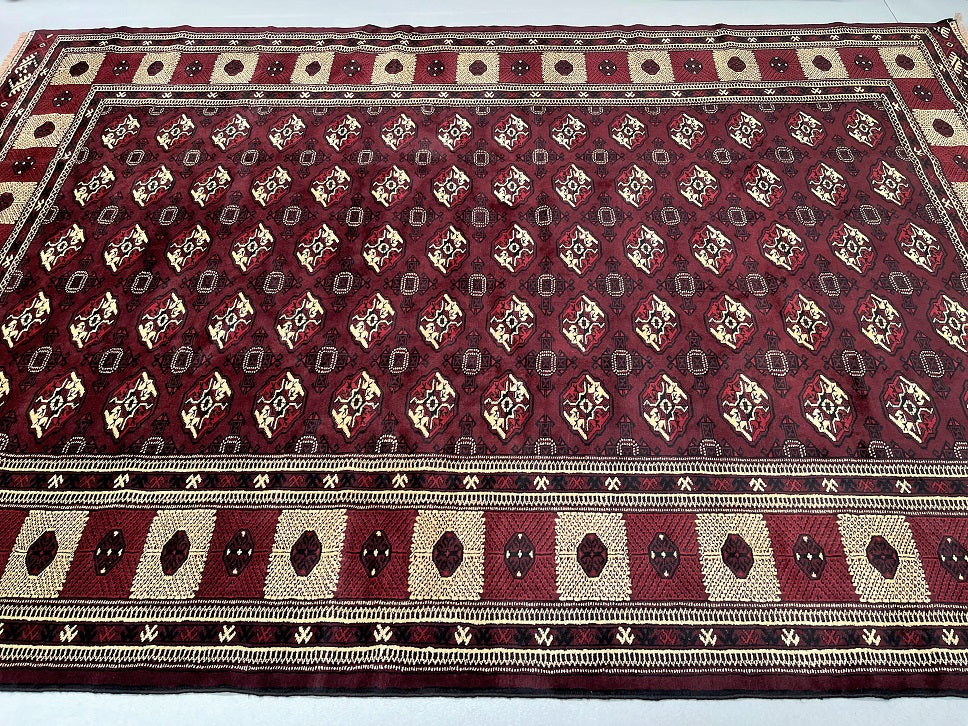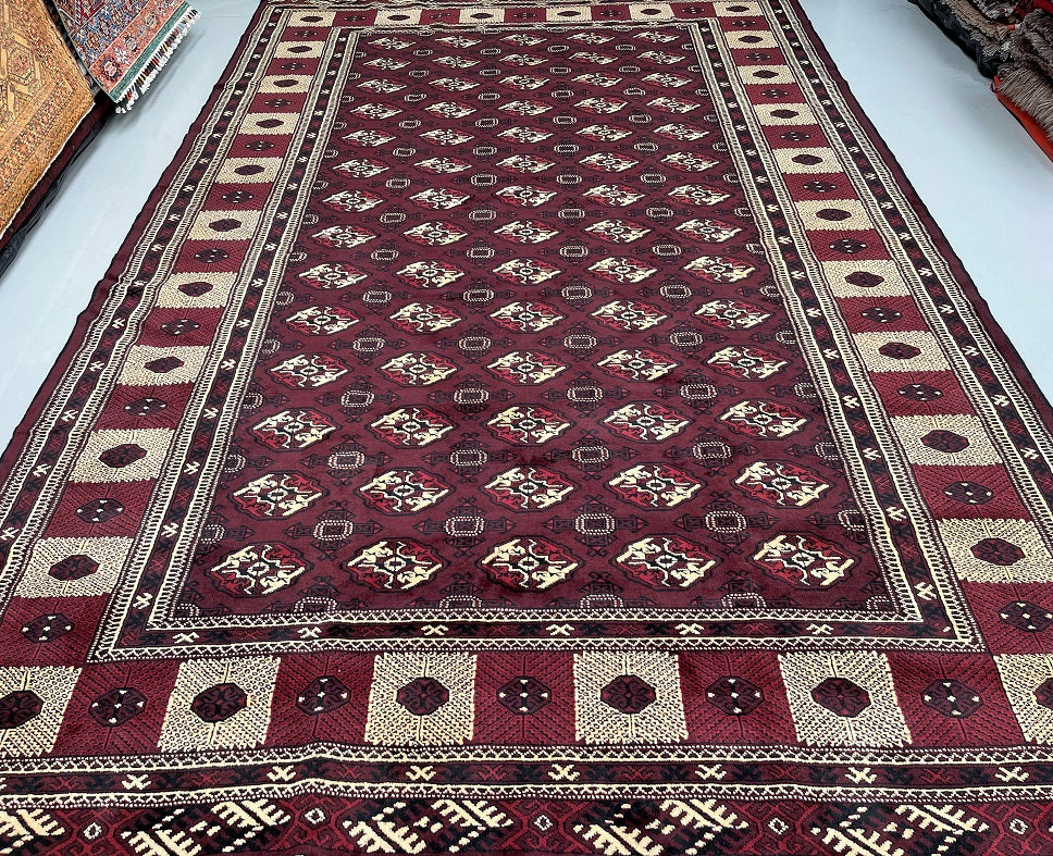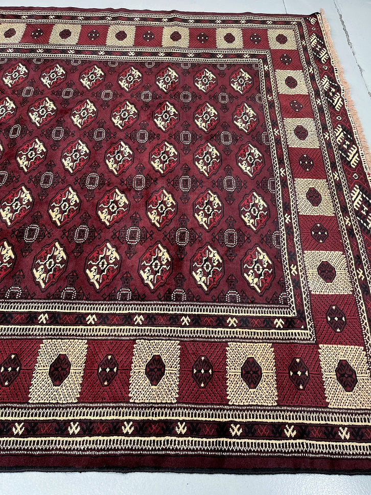 Large Room Size Authentic Handmade Persian Turkoman Rug. Above All It Has A Pure Hand Spun Wool Pile On Wool Base. It Also Has A Chocolate Brown Tone Dyed Using Traditional Methods.