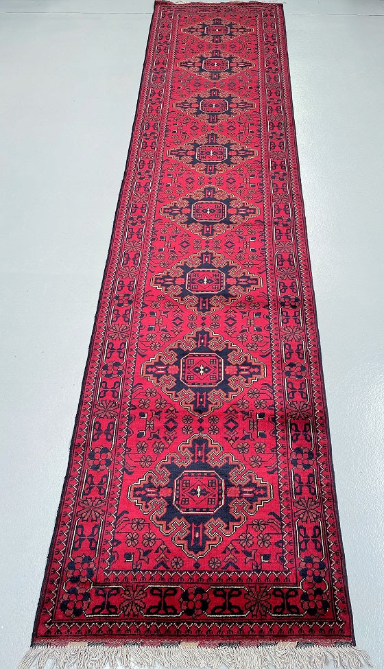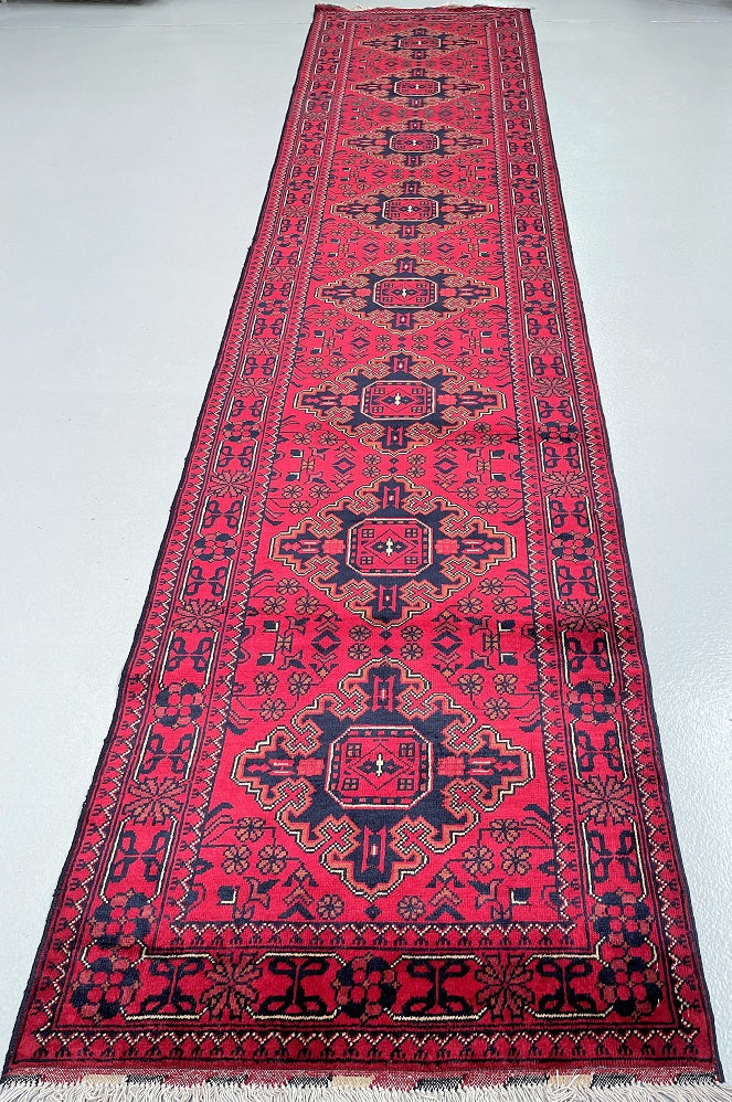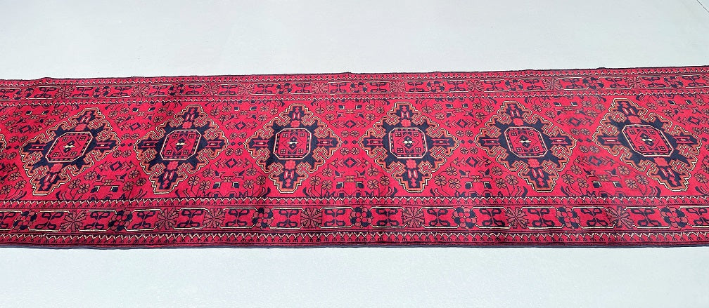 Certified Hand Knotted Afghan Hall Runner 364x84m