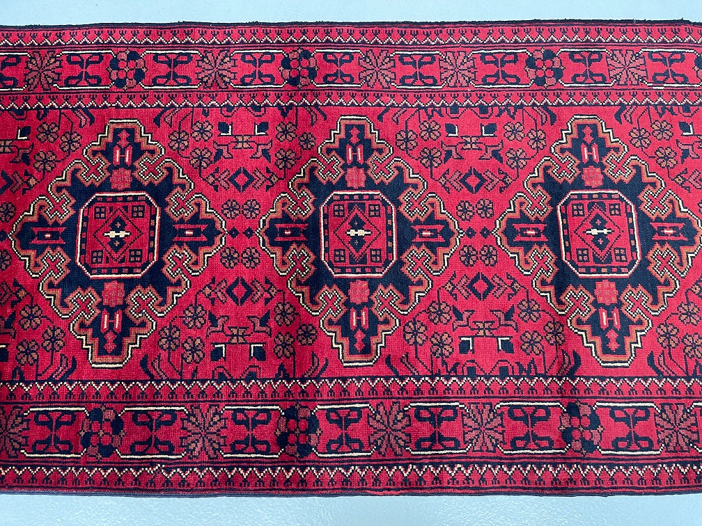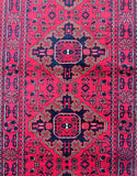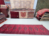 Gorgeous Lamb’s Wool Hand Knotted Tribal Afghan Ersari Hall Runner. Above All It Has A Pure Hand Spun Lamb’s Wool Pile On Cotton Base. It Also Has A Burnt Terracotta/Burgundy Tone Dyed Using Traditional Methods. This Runner Would Look Fantastic On Wooden Floor Board.