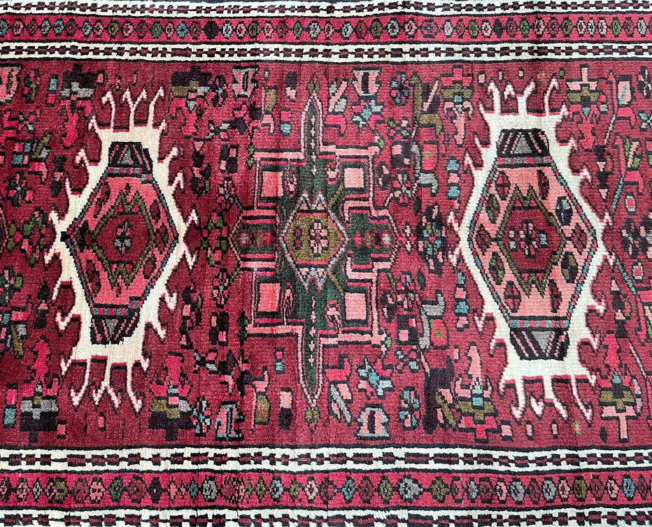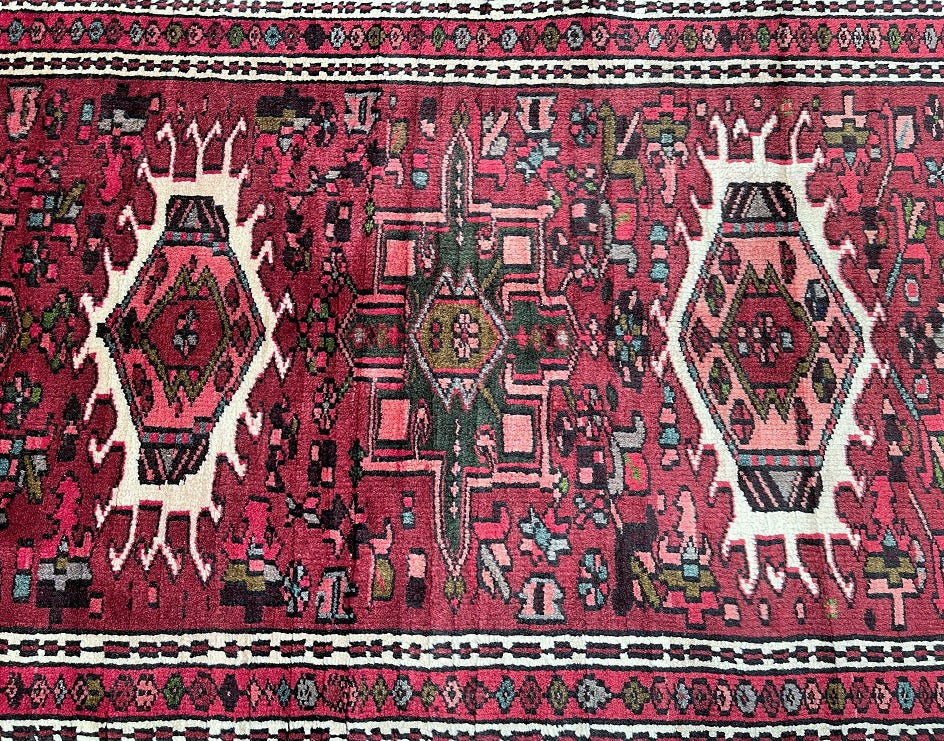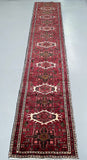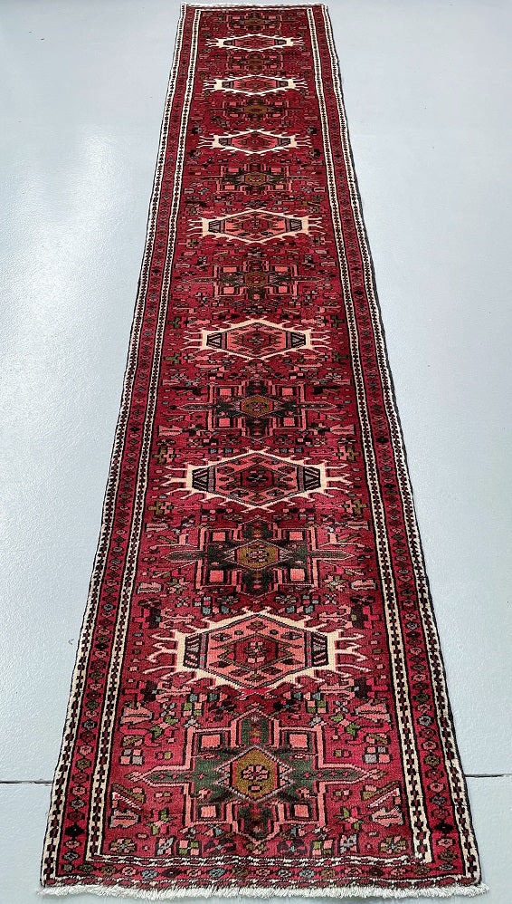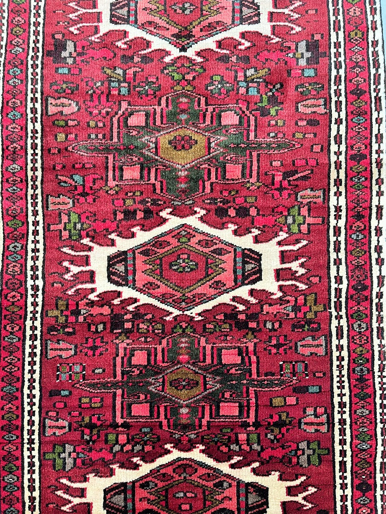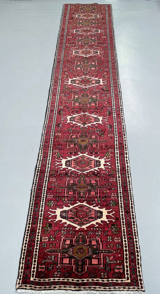 Rare Authentic Handmade Persian Heriz Hall Runner. Above Has A Pure Hand Spun Wool Pile On Cotton Base. Red, Pink, Green, Beige, Brown And Blue Tone Dyed Using Traditional Methods.